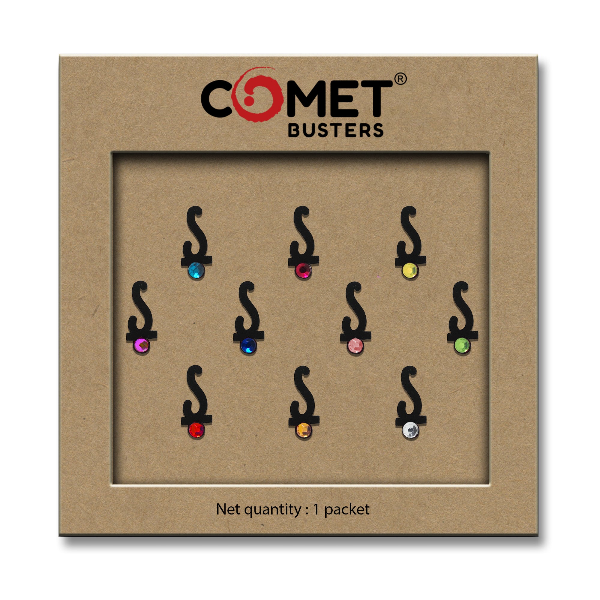 Comet Busters® Black Artistic Designer Bindis – Handcrafted, Reusable, Skin-Safe Indian Forehead Stickers for Women