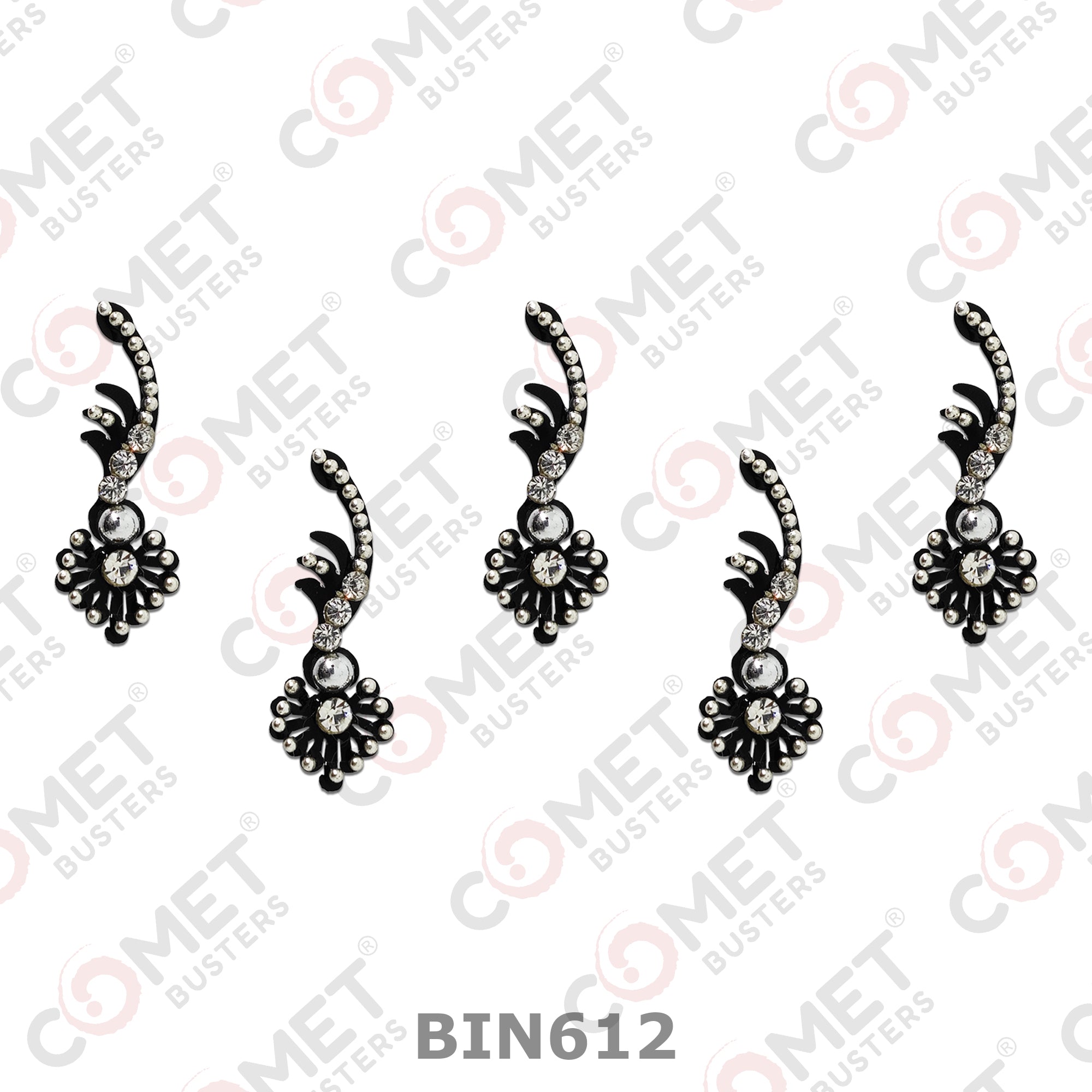 Comet Busters® Black Artistic Designer Bindis – Handcrafted, Reusable, Skin-Safe Indian Forehead Stickers for Women
