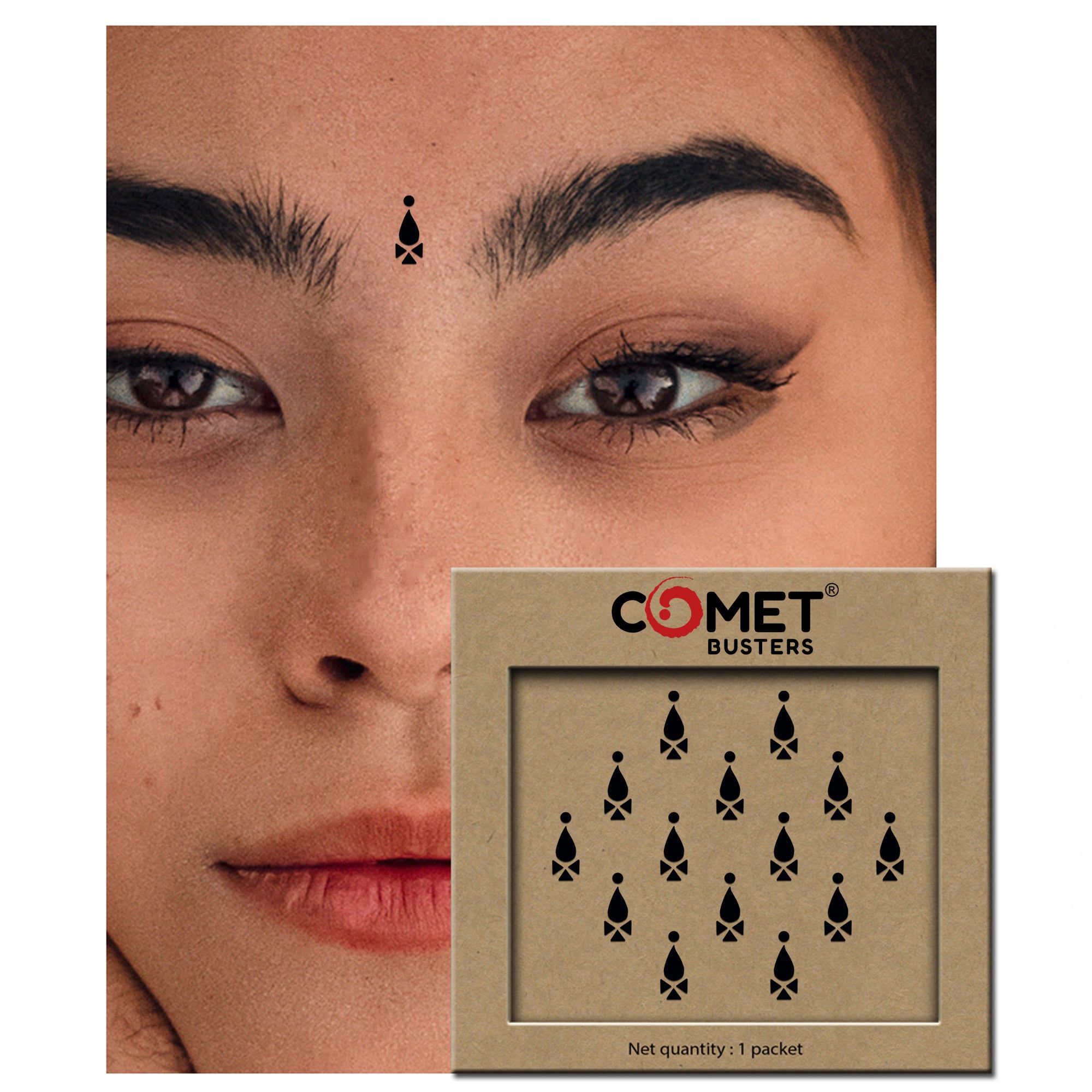 Comet Busters® Black Fusion Abstract Bindis – PVC – Handcrafted, Reusable & Skin-Friendly Bindis for Casual Wear (9mm) – Forehead Bindi Stickers for Women & Girls – BIN2398