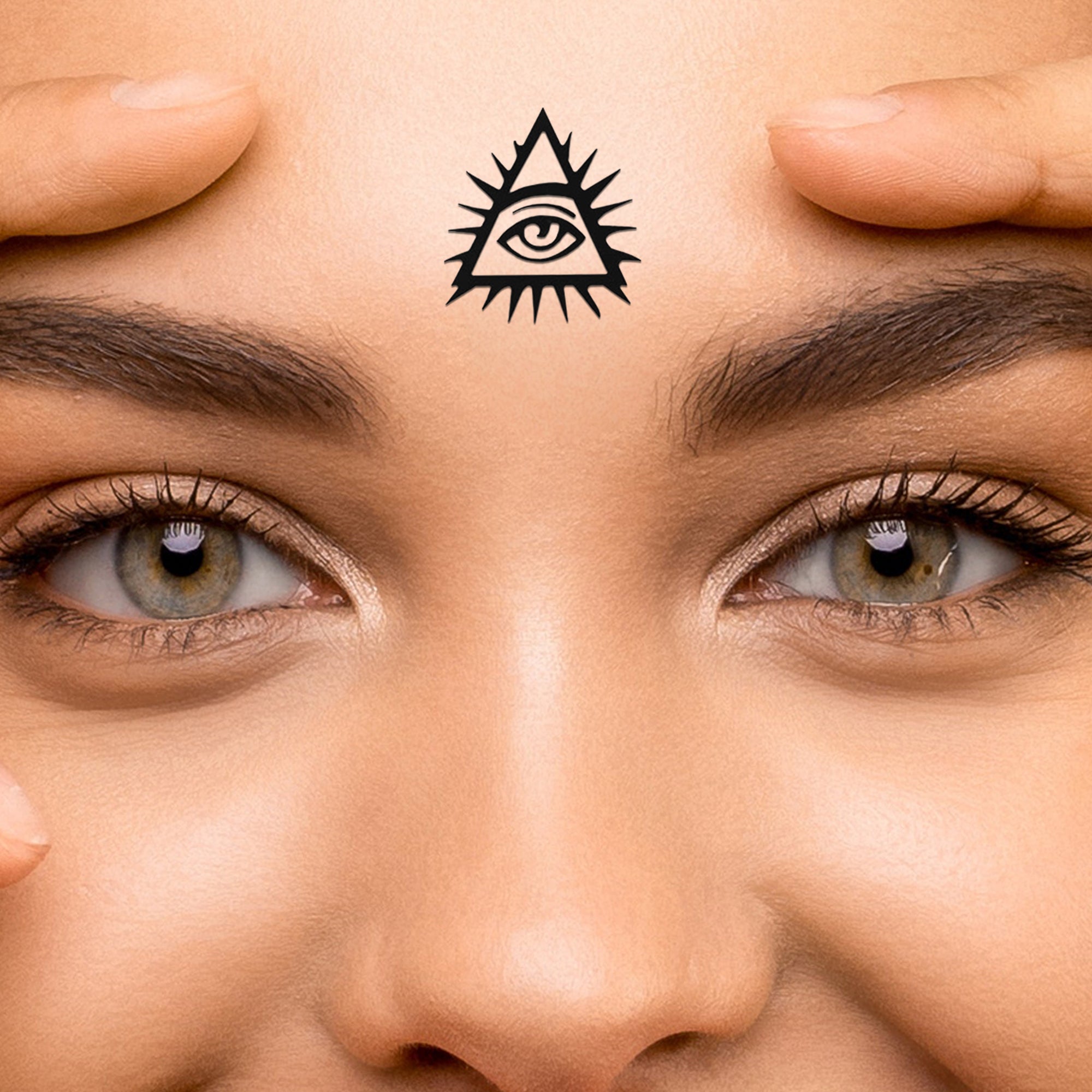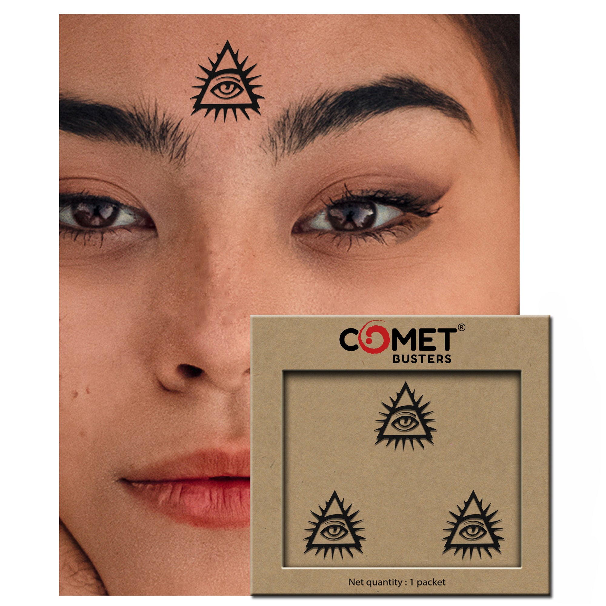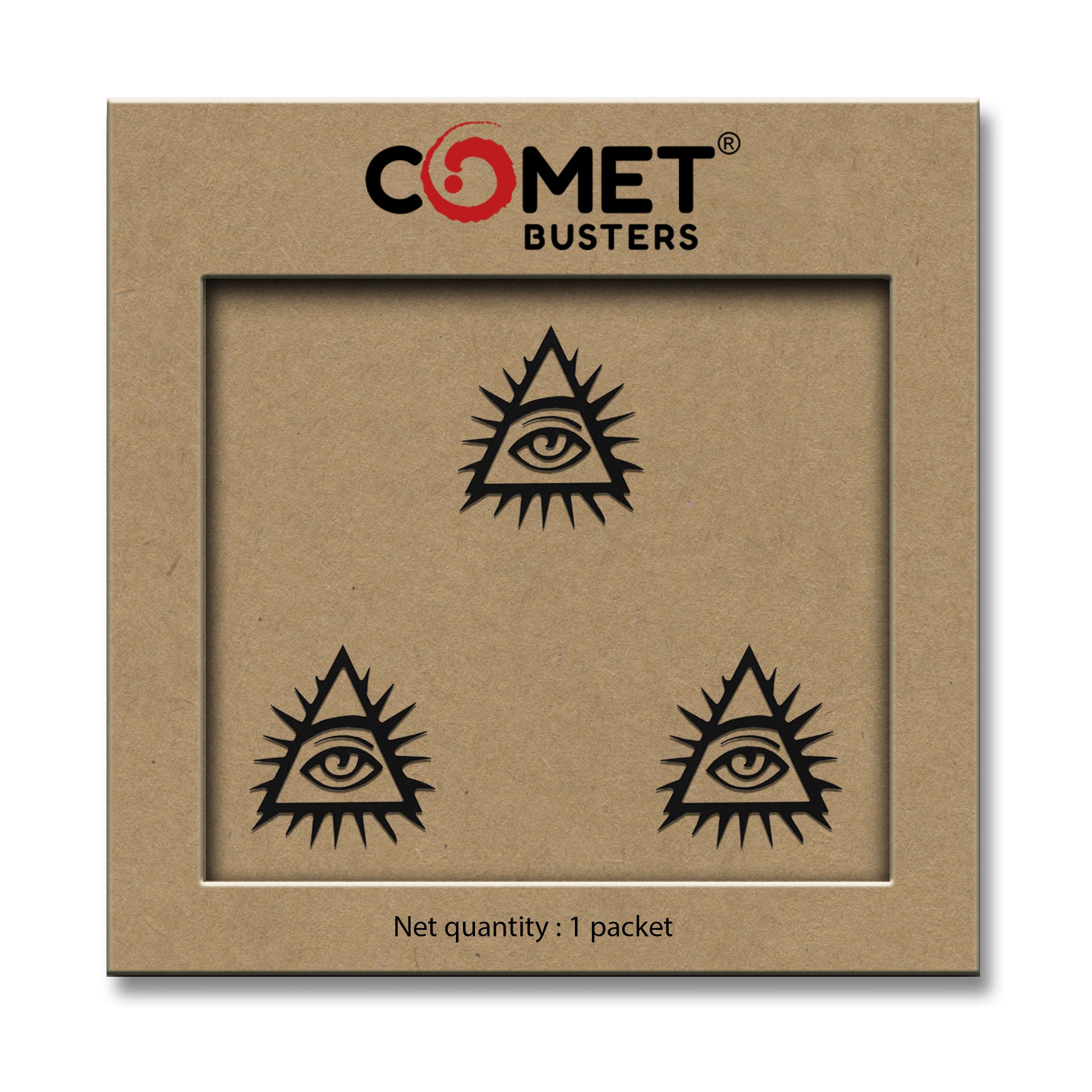 Comet Busters® Black Spiritual Illuminati Bindis Tattoos – PVC – Handcrafted, Reusable & Skin-Friendly Bindis for Casual Wear (20mm) – Forehead Bindi Stickers for Women & Girls – BIN510
