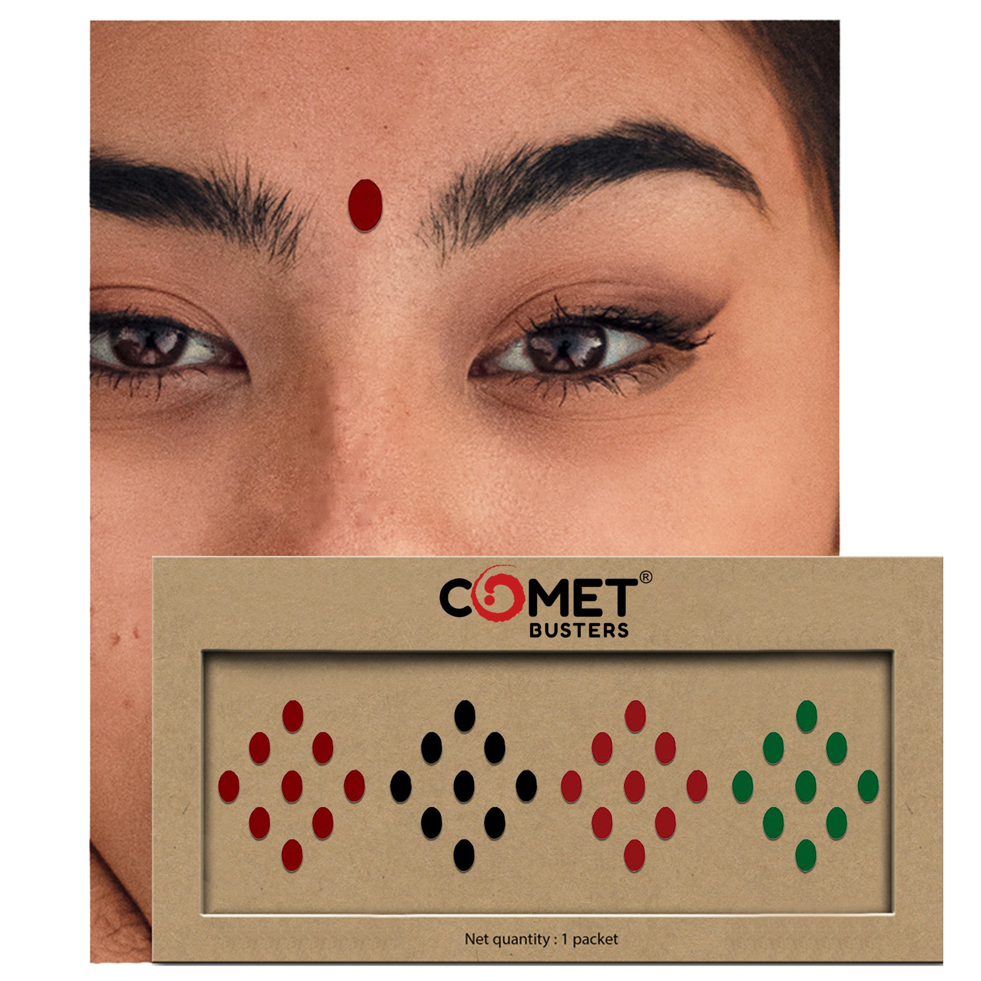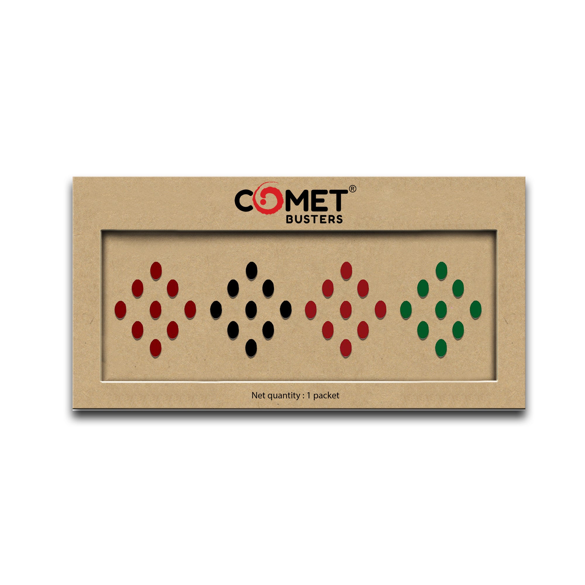Comet Busters® Red, Black, Green, Maroon, Multicolor Oval – Velvet – Handcrafted, Reusable & Skin-Friendly Bindis for Casual Wear (8mm) – Forehead Bindi Stickers for Women & Girls – BIN978