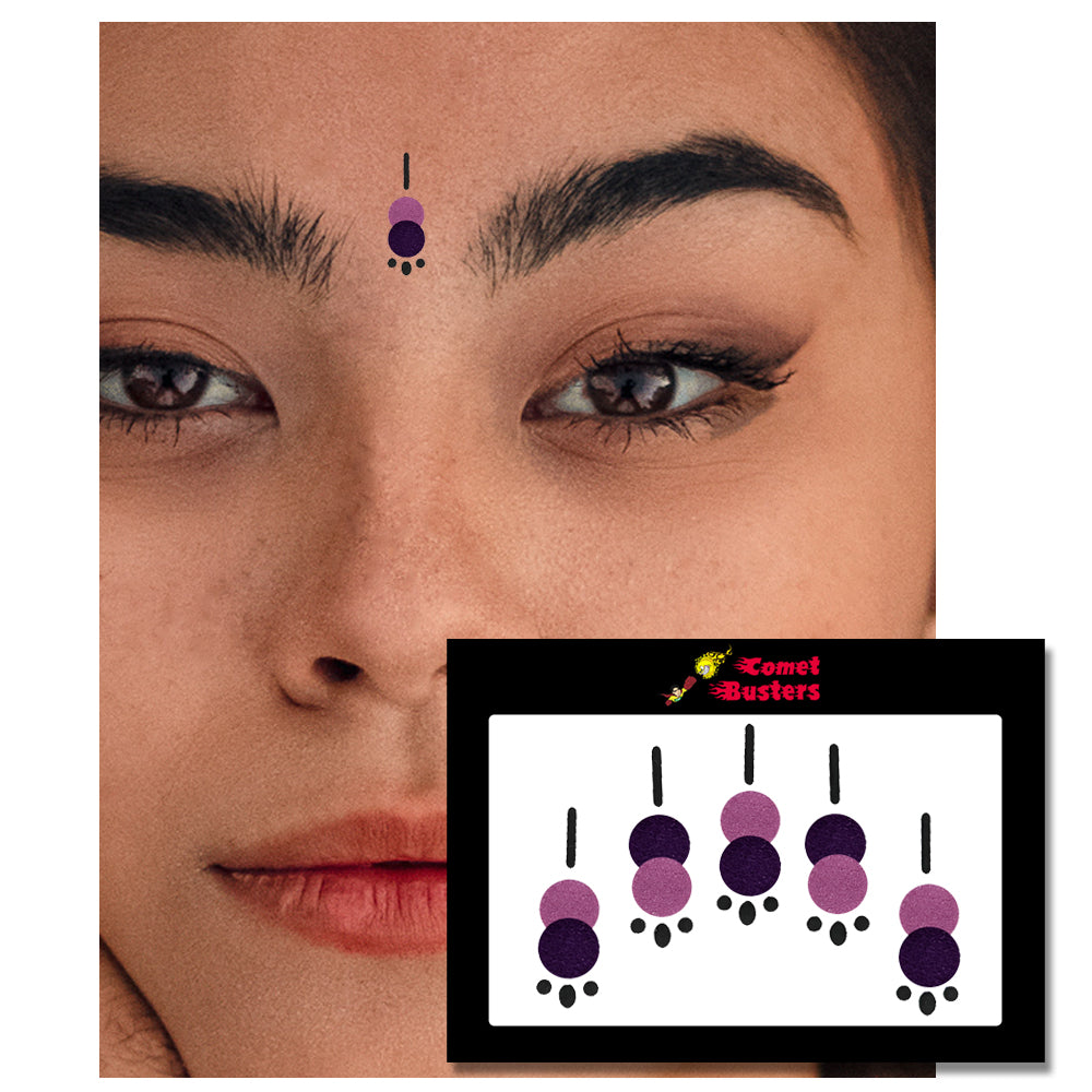 Comet Busters® Purple, Black, Multicolor Fusion Abstract Bindis – Velvet – Handcrafted, Reusable & Skin-Friendly Bindis for Casual Wear (20mm) – Forehead Bindi Stickers for Women & Girls – BIN1744