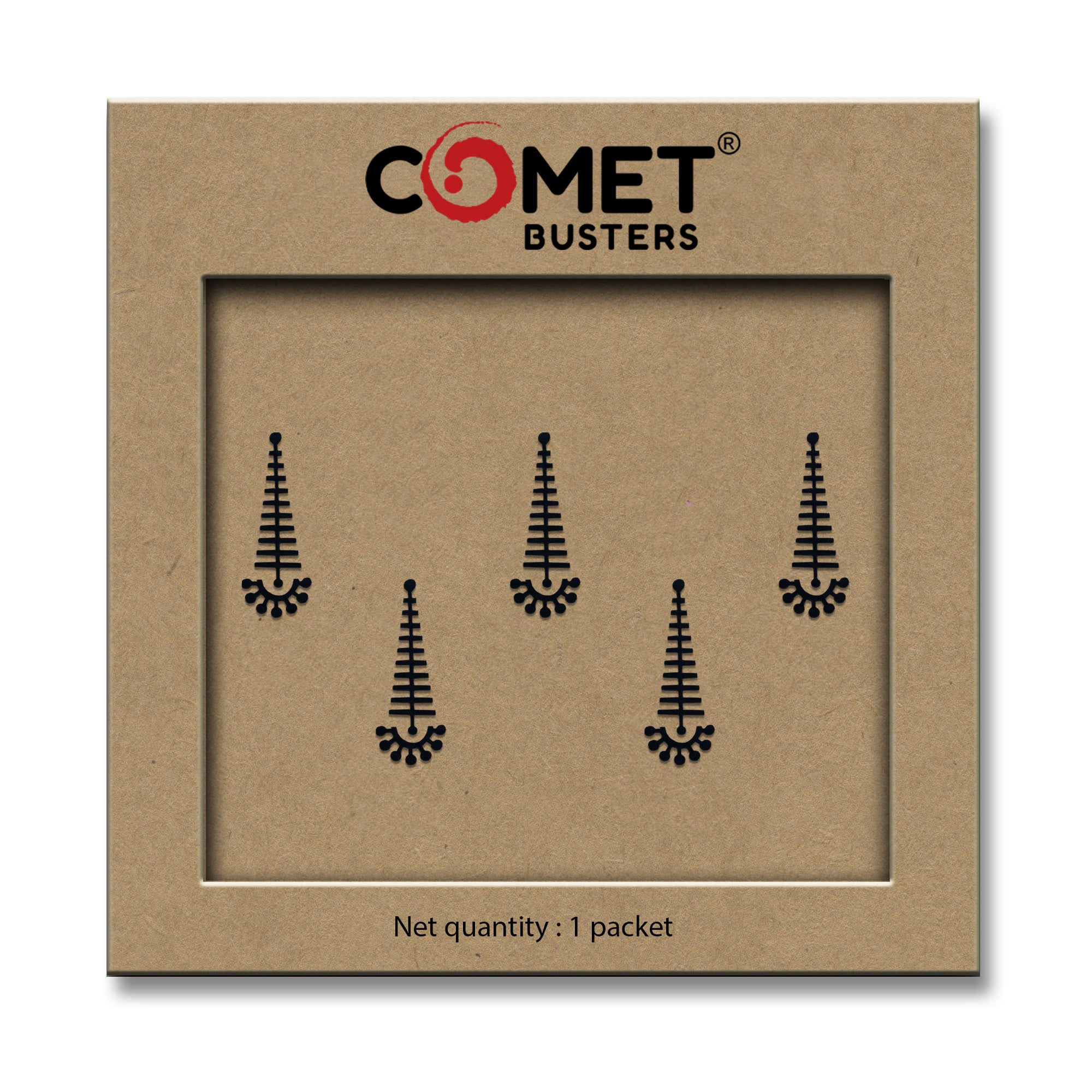 Comet Busters® Black Fusion Abstract Bindis – PVC – Handcrafted, Reusable & Skin-Friendly Bindis for Casual Wear (20mm) – Forehead Bindi Stickers for Women & Girls – BIN202