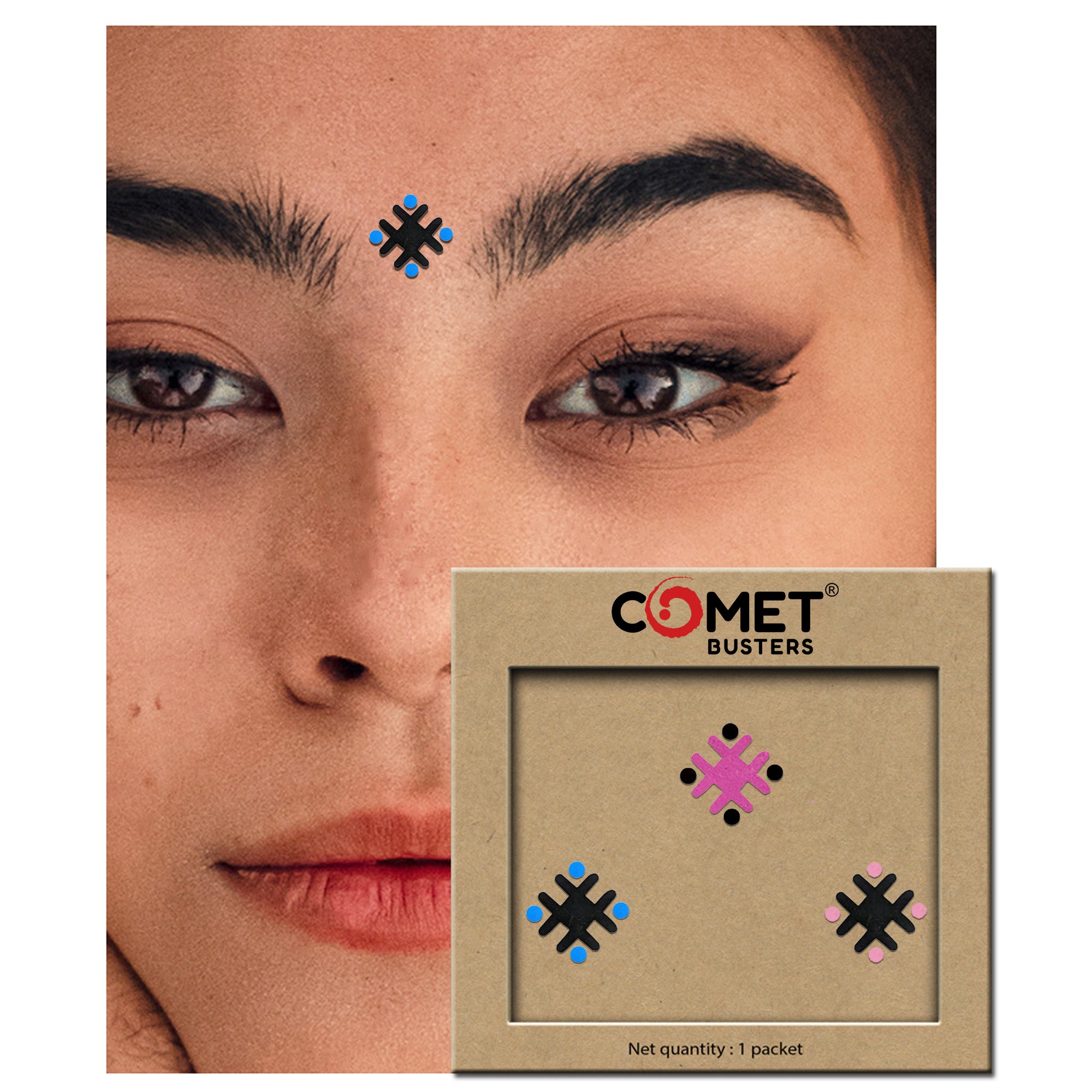 Comet Busters® Black, Purple, Multicolor Fusion Abstract Bindis – PVC – Handcrafted, Reusable & Skin-Friendly Bindis for Casual Wear (12mm) – Forehead Bindi Stickers for Women & Girls – BIN1049