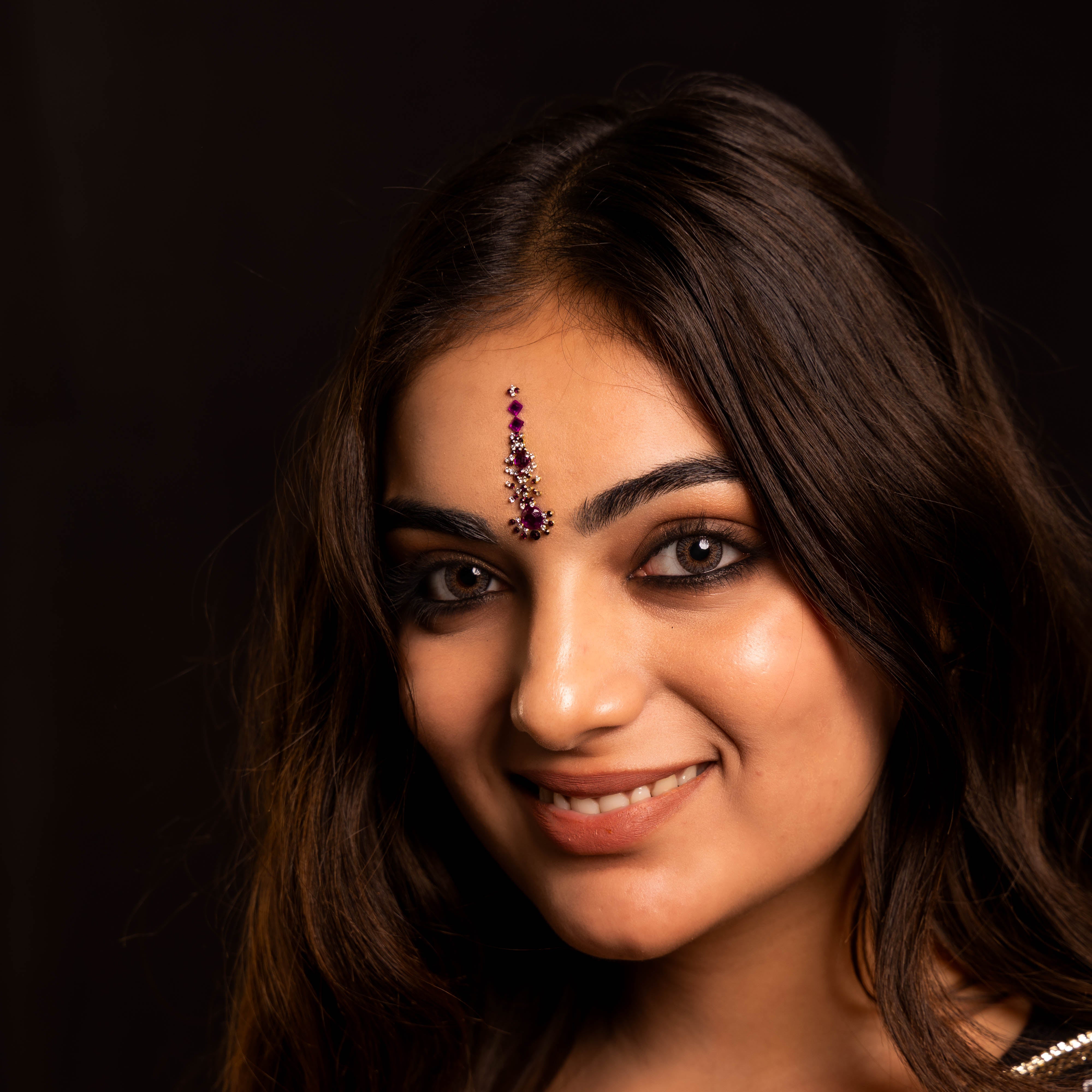 • To apply, gently remove the bindi from its backing and place it between the eyebrows.