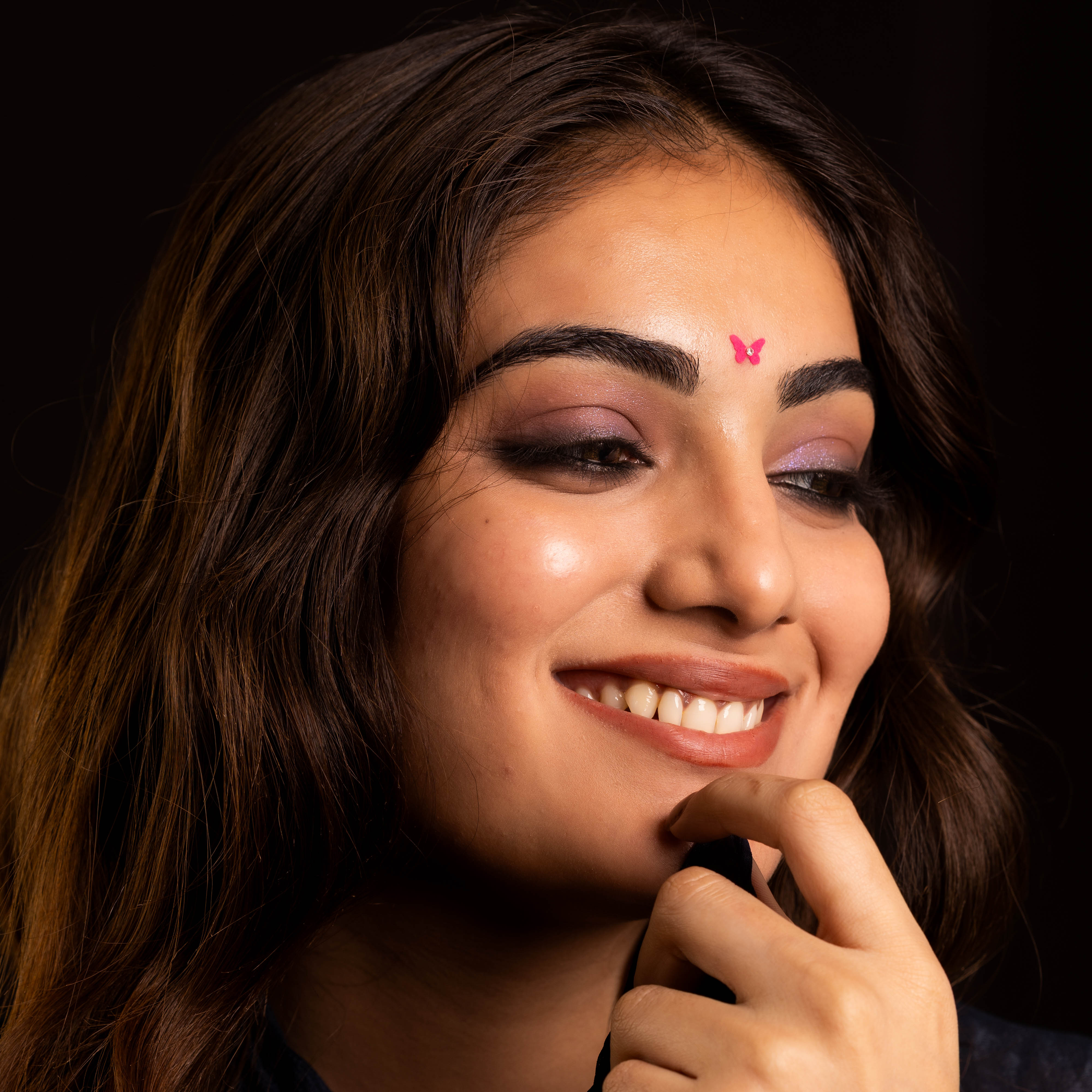 • To apply, gently remove the bindi from its backing and place it between the eyebrows.