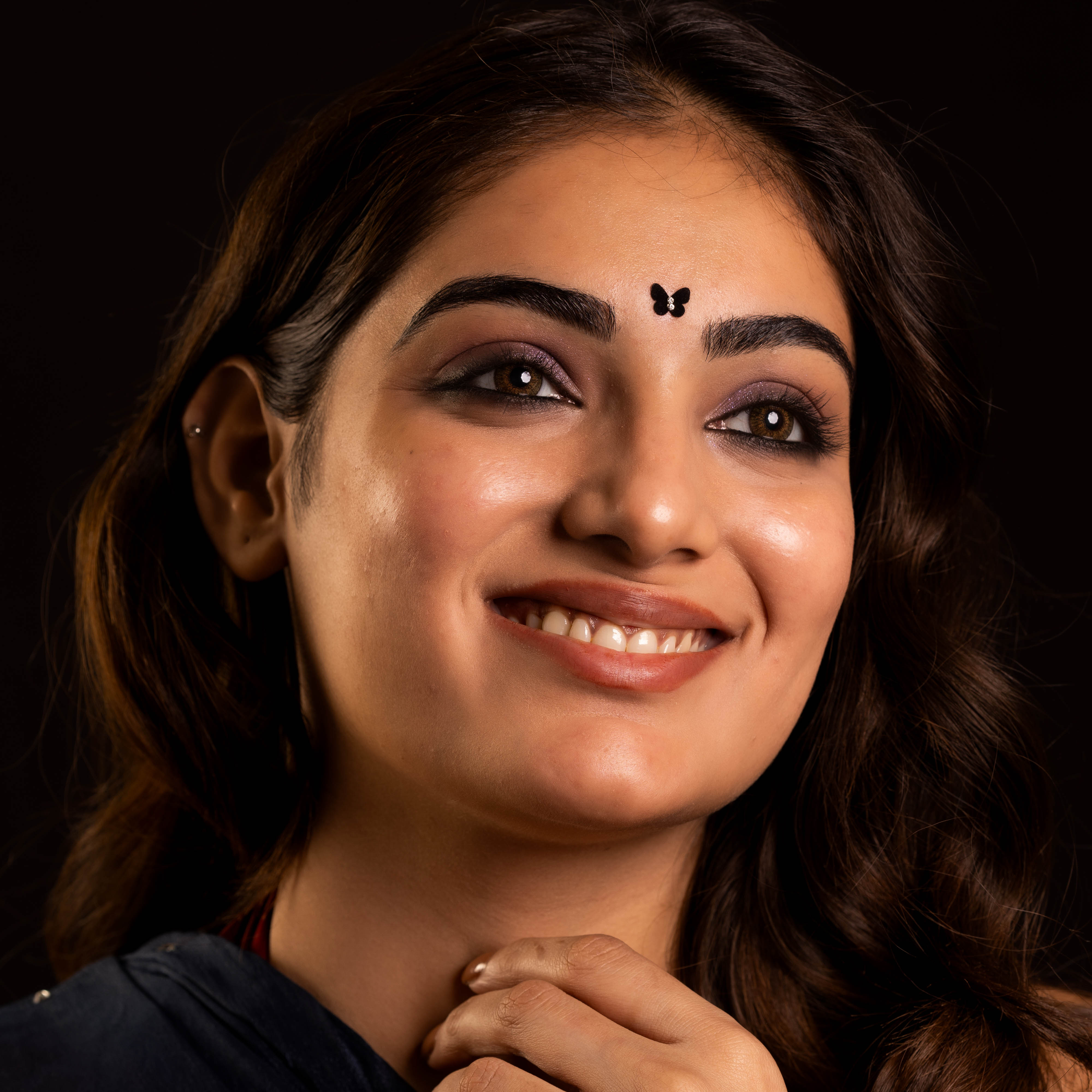 • To apply, gently remove the bindi from its backing and place it between the eyebrows.