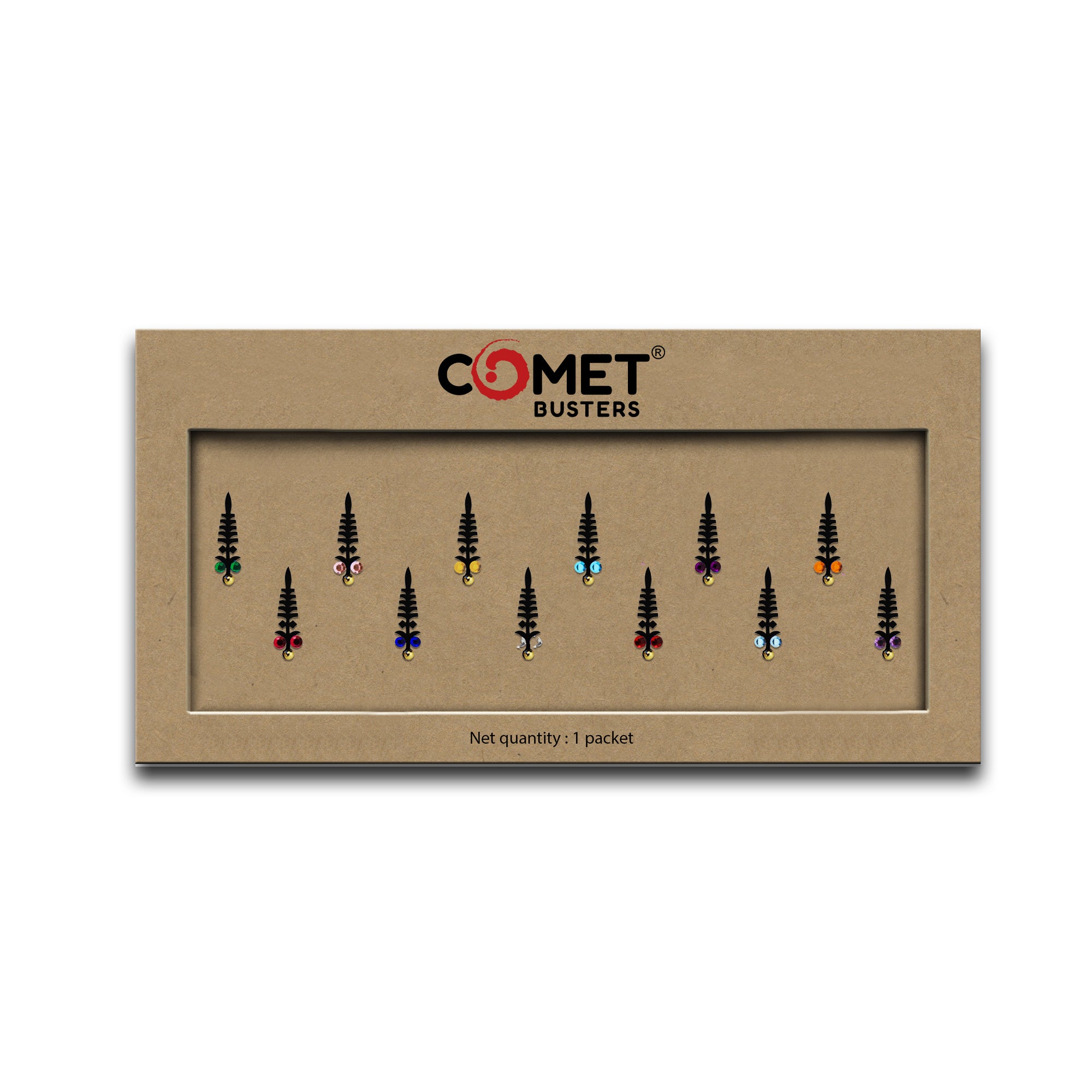 Comet Busters® Multicolor, Black Artistic Abstract Bindis – Diamond, PVC – Handcrafted, Reusable & Skin-Friendly Bindis for Partywear Wear (20mm) – Forehead Bindi Stickers for Women & Girls – BIN307