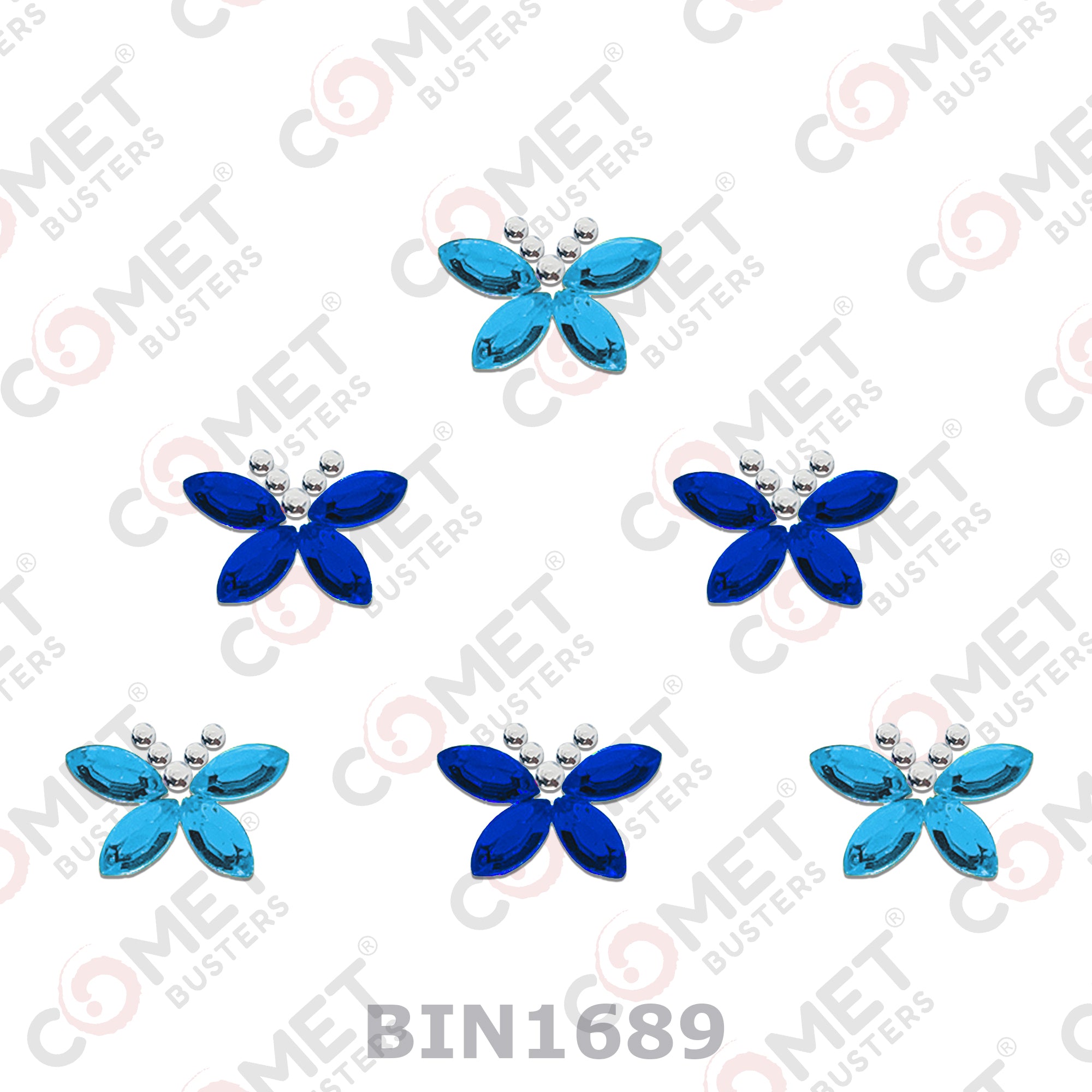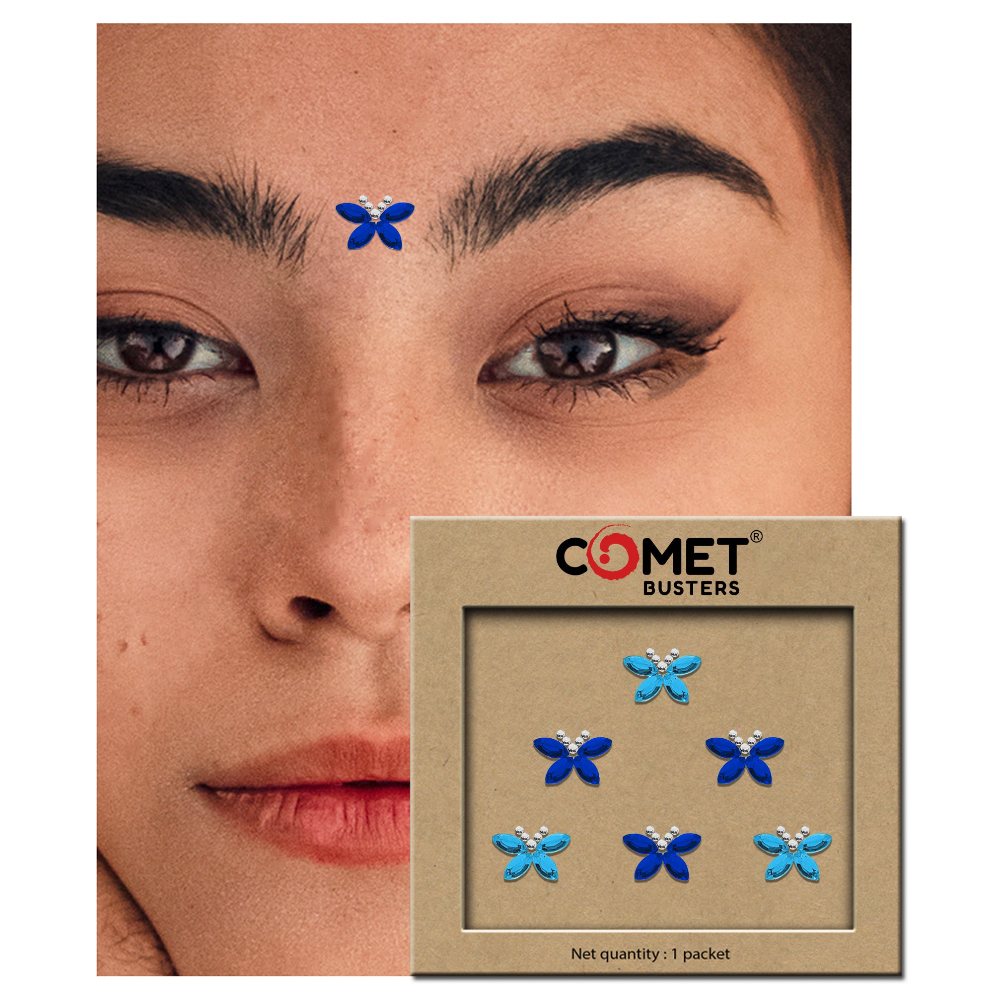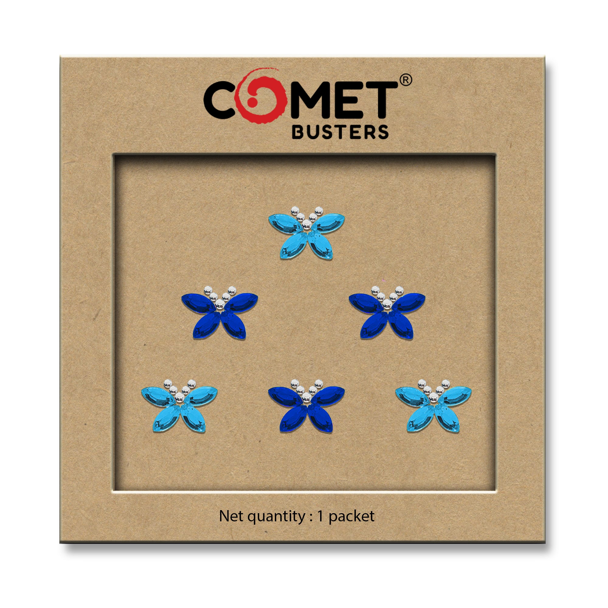 Comet Busters® Blue Butterfly – Crystal, Diamond – Handcrafted, Reusable & Skin-Friendly Bindis for Party Wear (10mm) – Forehead Bindi Stickers for Women & Girls – BIN1689