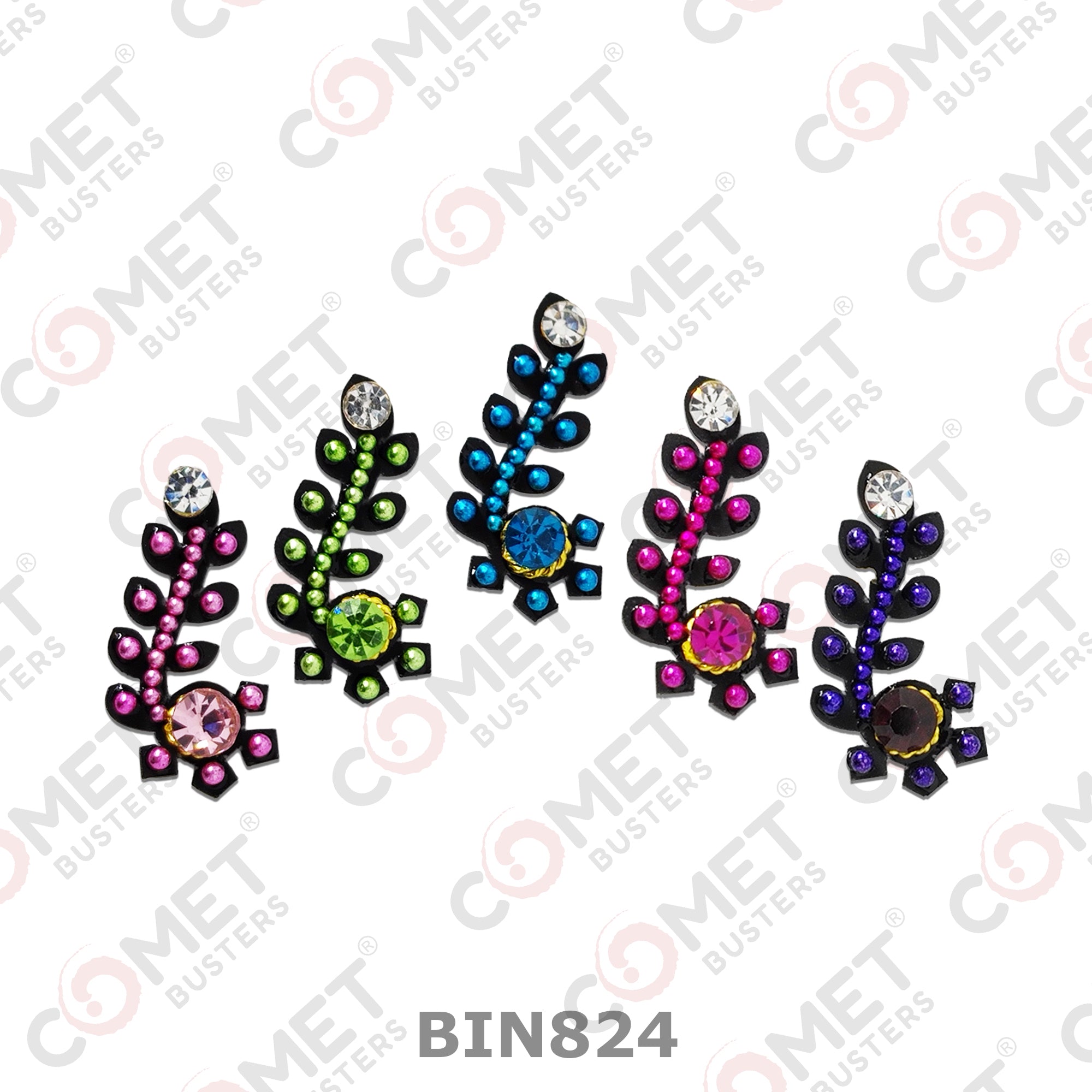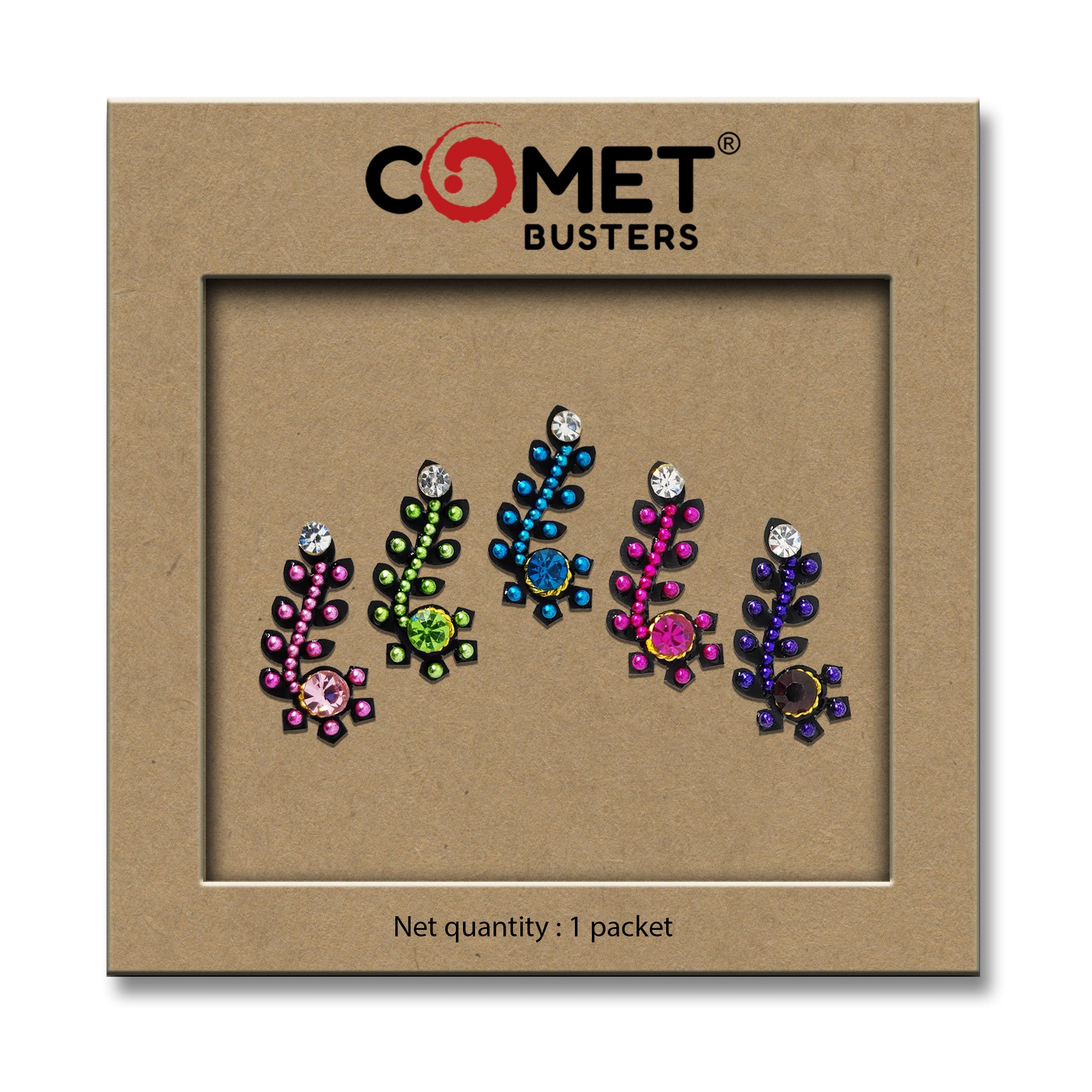 Comet Busters® Multicolor Artistic Abstract Bindis – Diamond, Shiny Beads, PVC – Handcrafted, Reusable & Skin-Friendly Bindis for Bridal Wear (15mm) – Forehead Bindi Stickers for Women & Girls – BIN824
