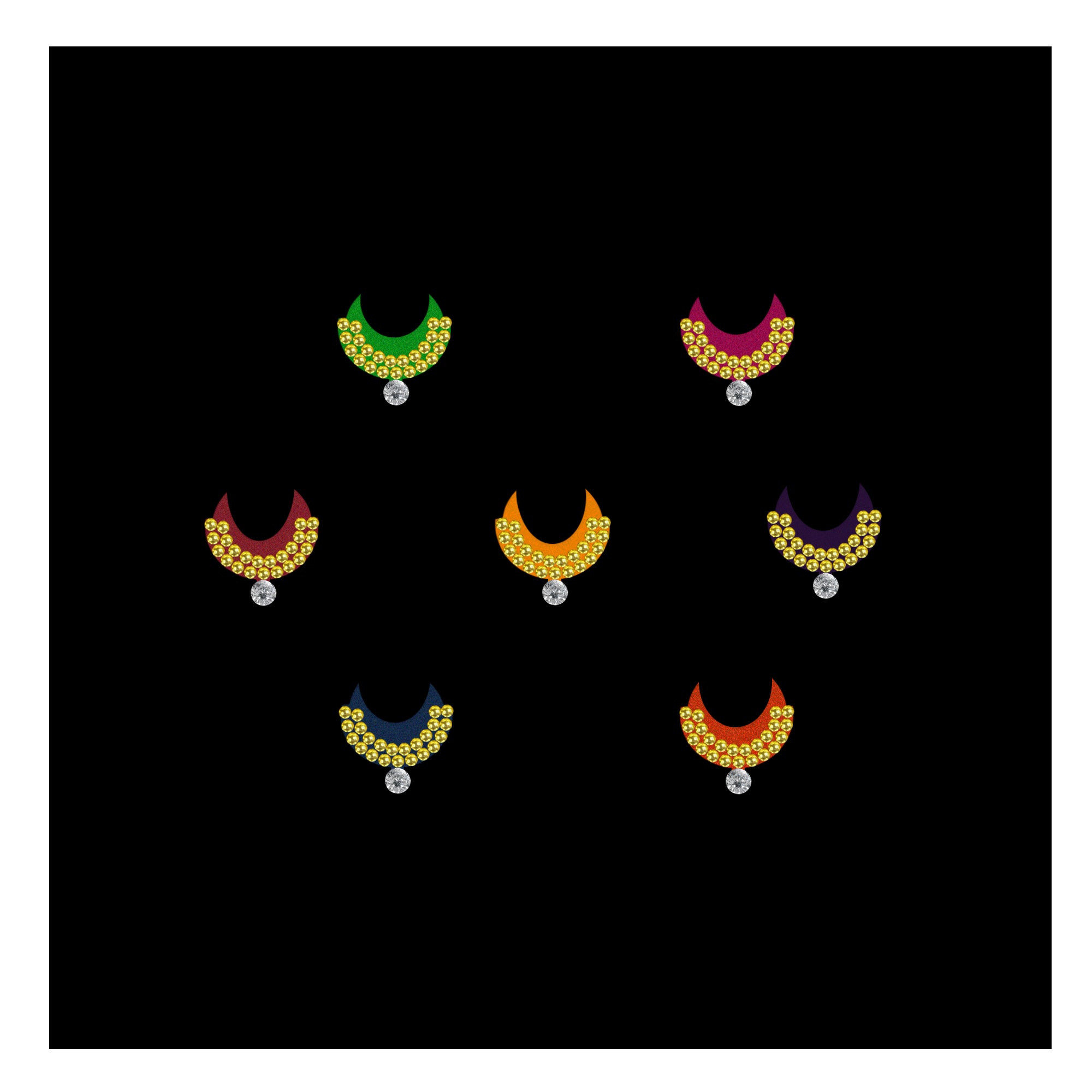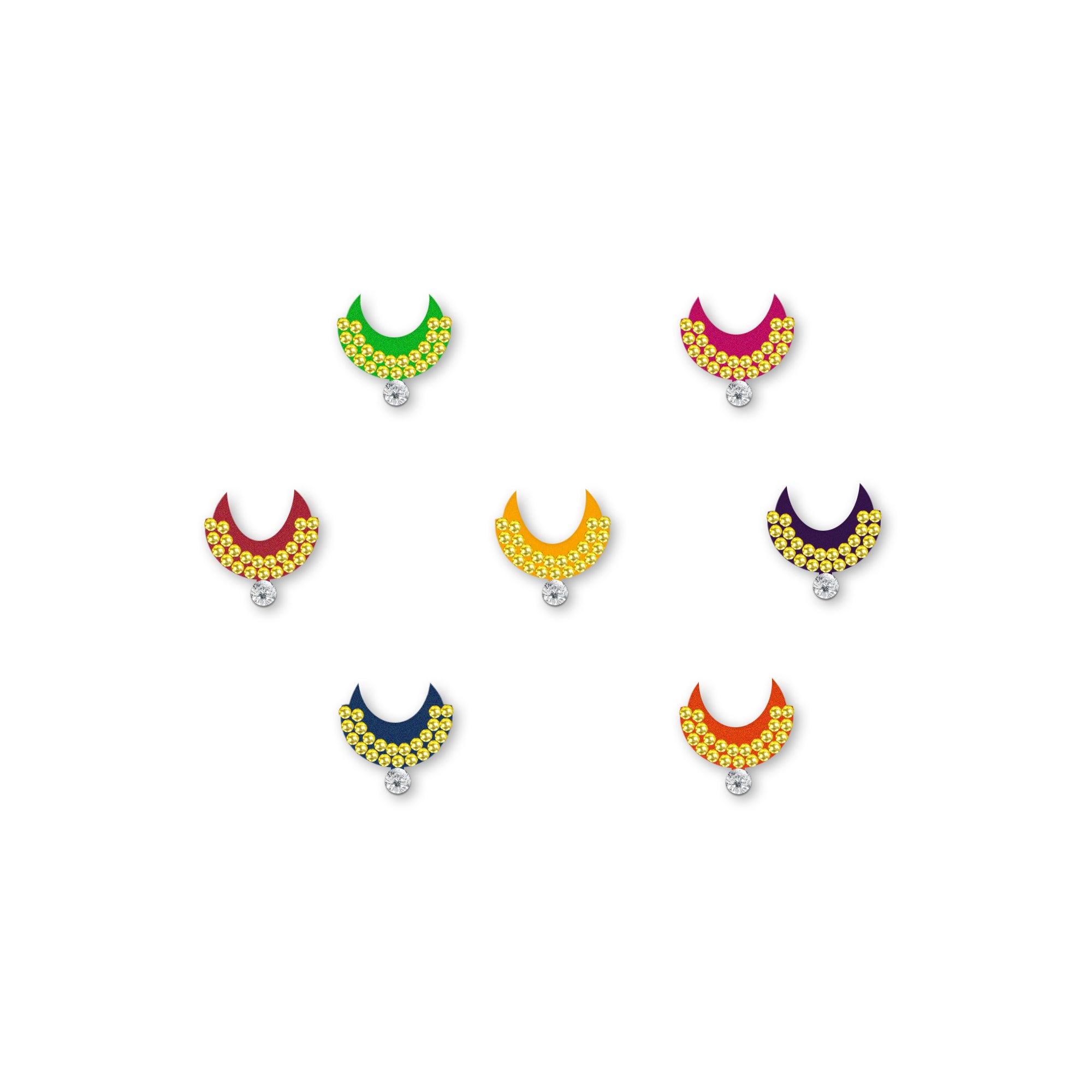 • Multicolor Bindis: Vibrant options for a lively look.