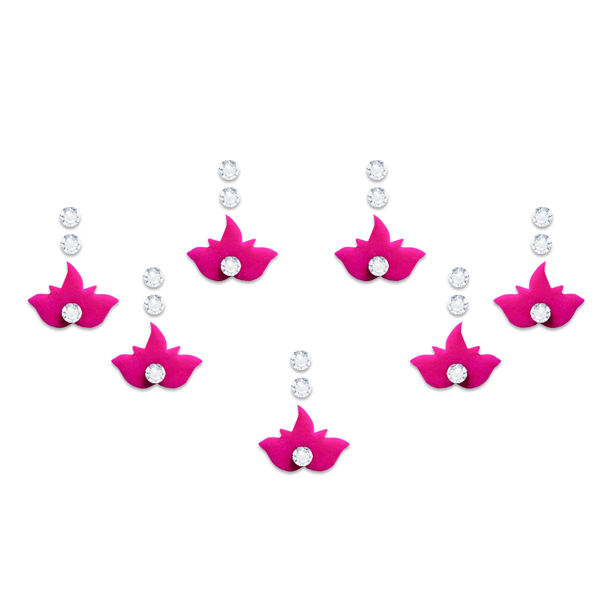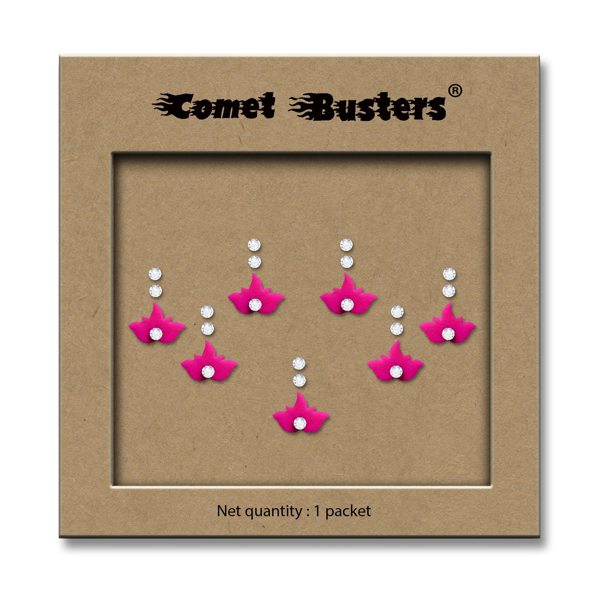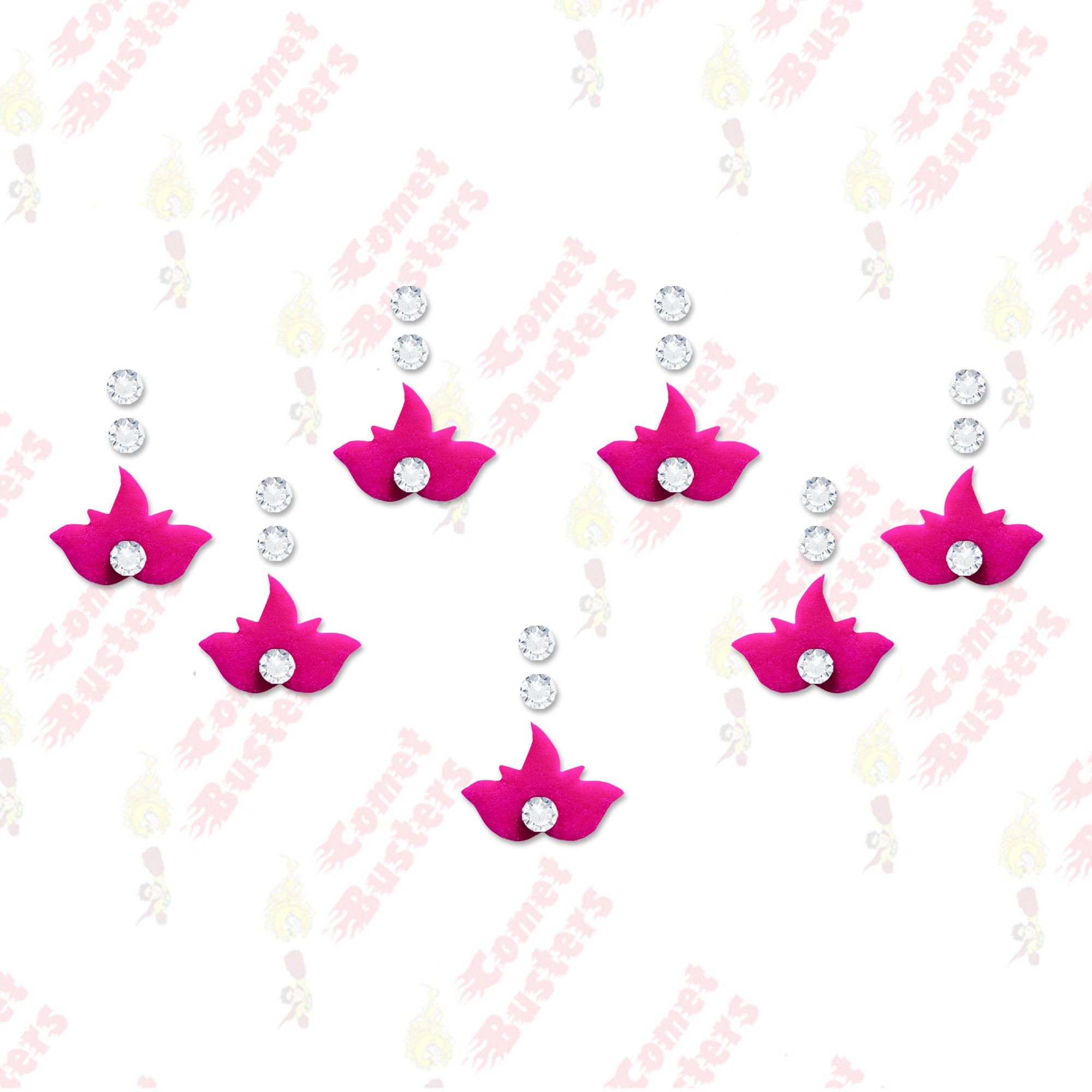 Comet Busters® Pink Floral, Lotus – Velvet, Diamond – Handcrafted, Reusable & Skin-Friendly Bindis for Party Wear (6mm) – Forehead Bindi Stickers for Women & Girls – BIN2267