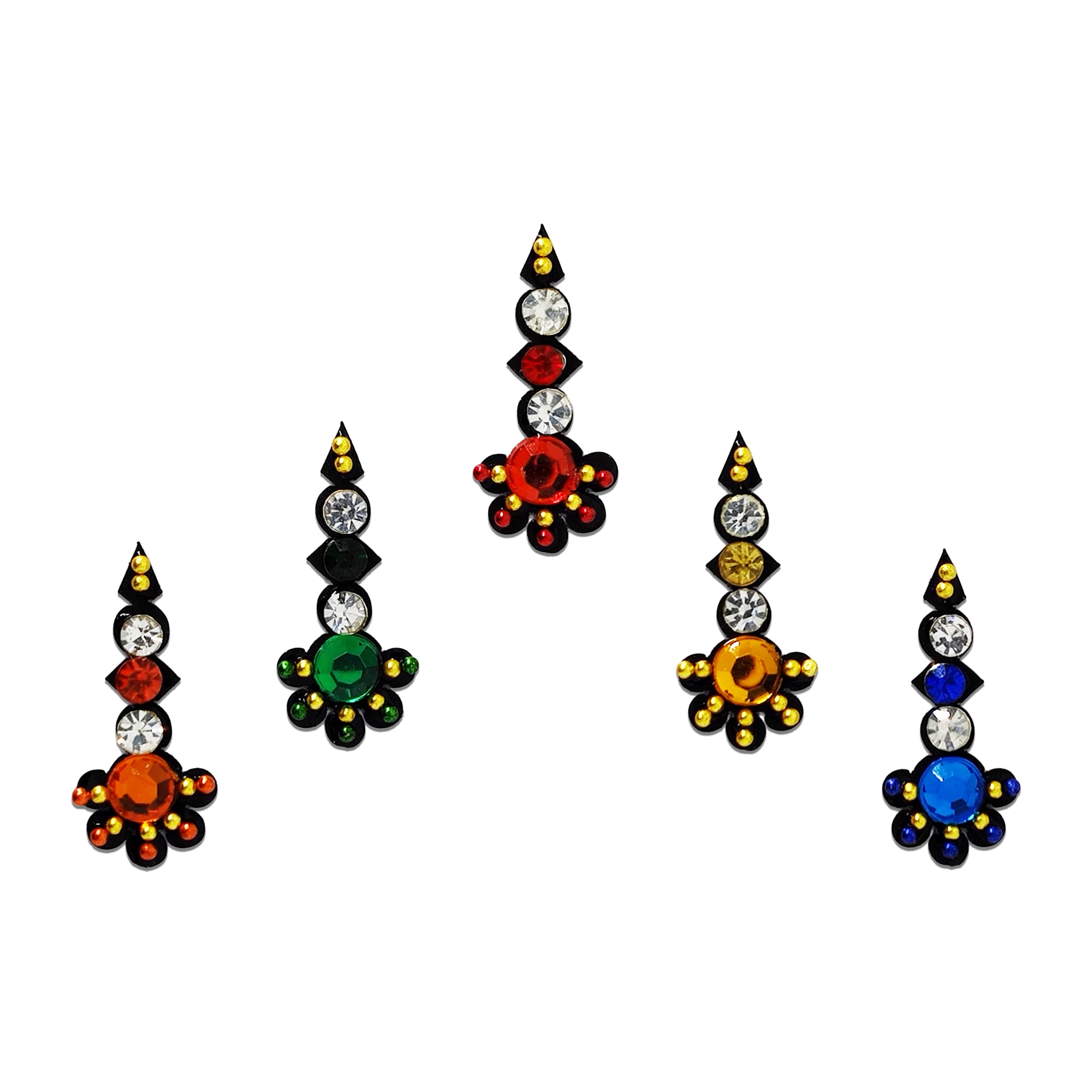 • Multicolor Bindis: Vibrant options for a lively look.