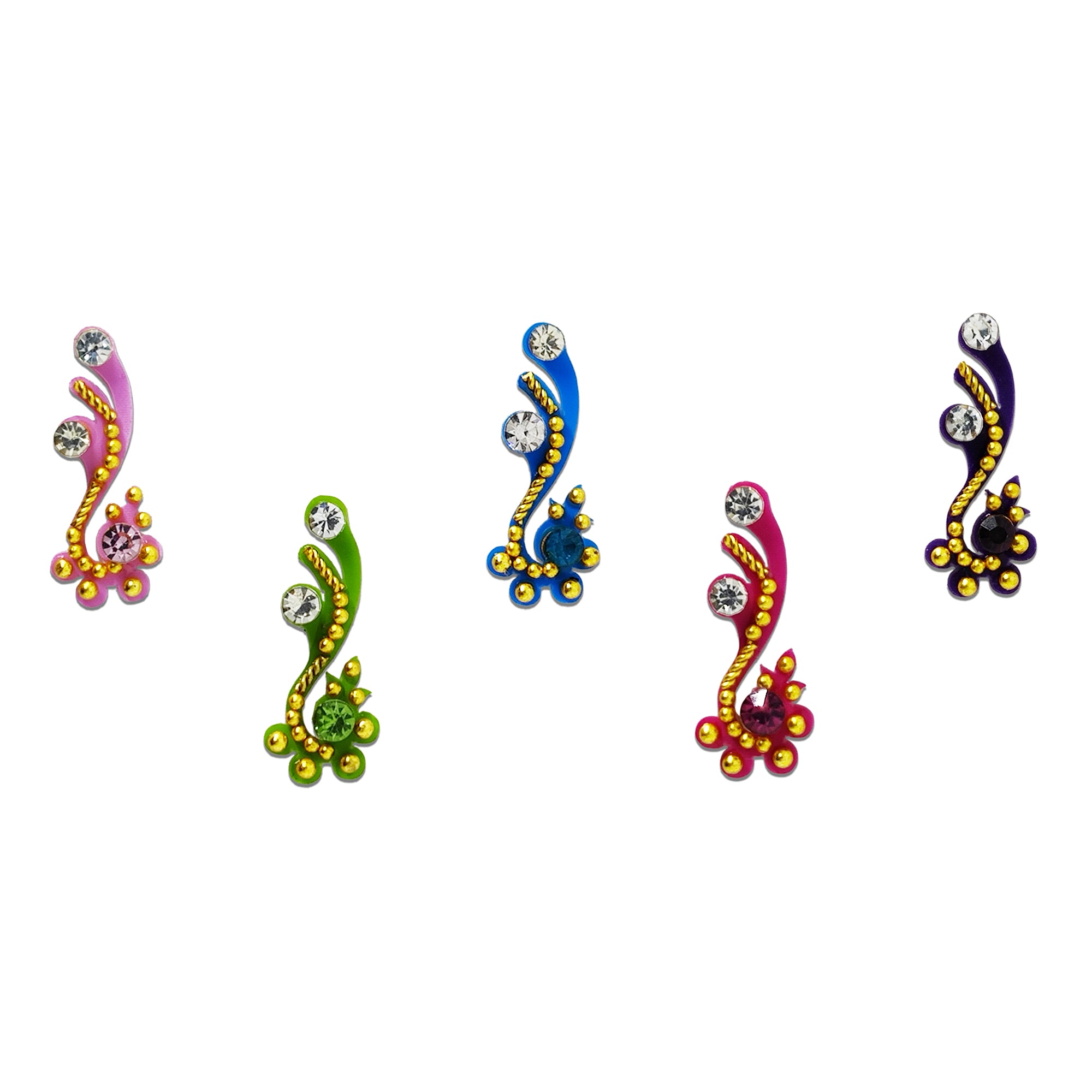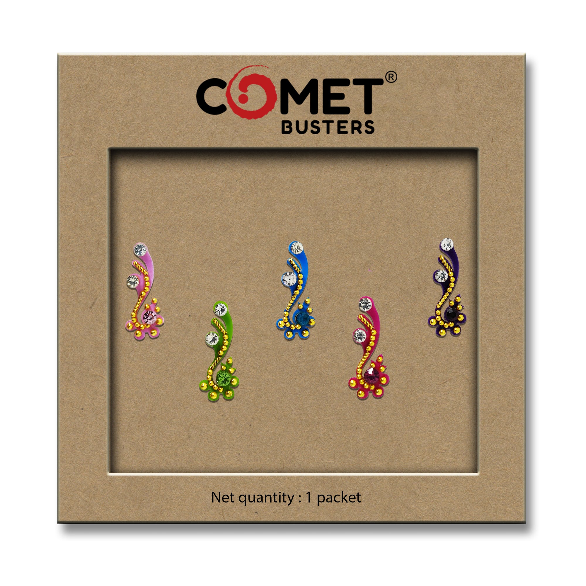 Comet Busters® Multicolor Artistic Abstract Bindis – Diamond, Shiny Beads, PVC – Handcrafted, Reusable & Skin-Friendly Bindis for Bridal Wear (15mm) – Forehead Bindi Stickers for Women & Girls – BIN826