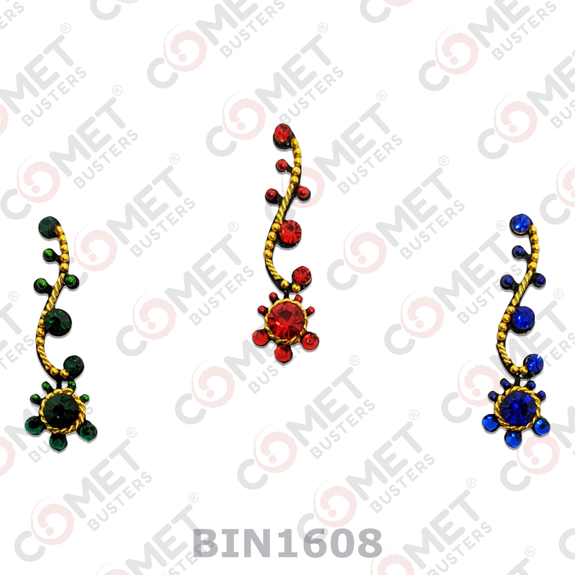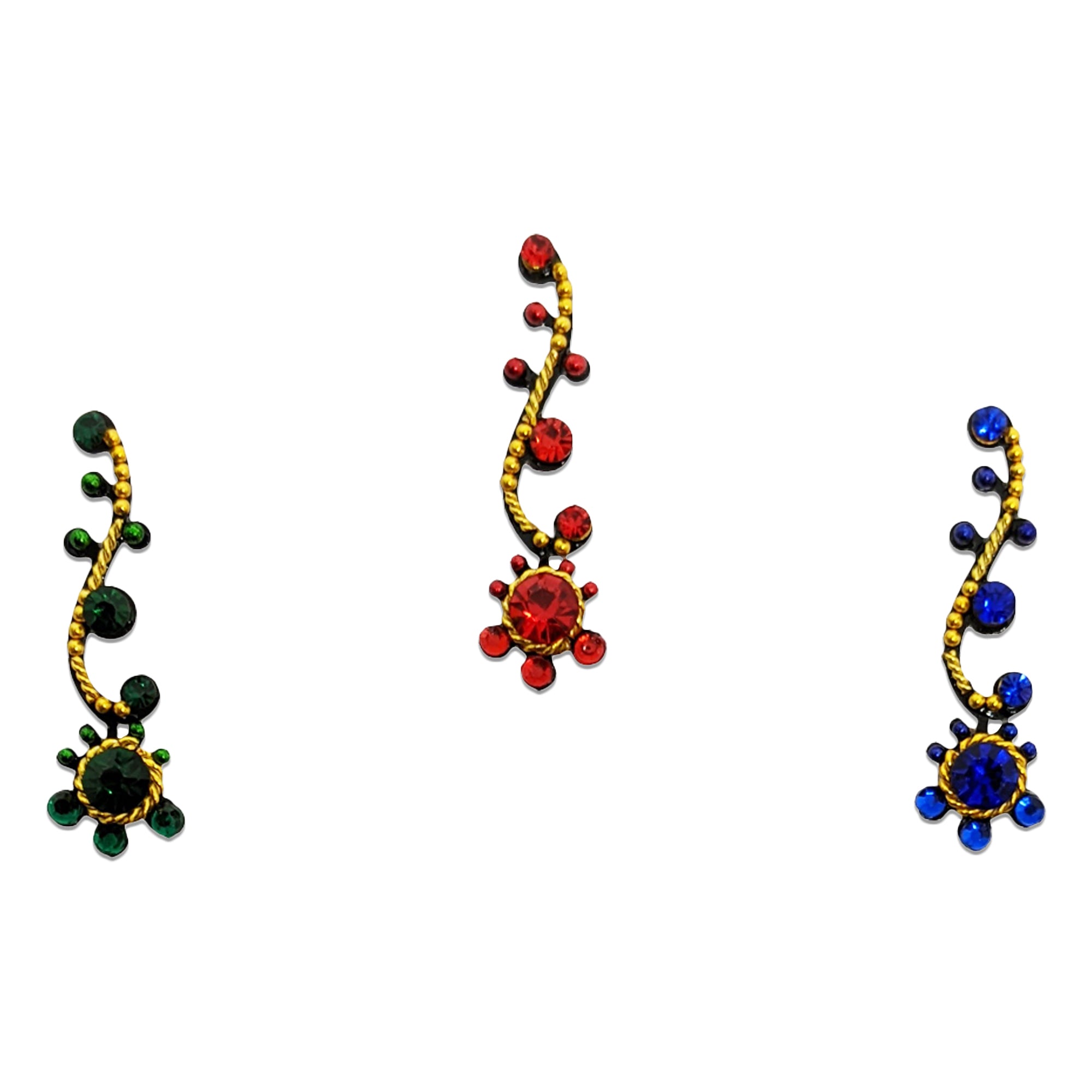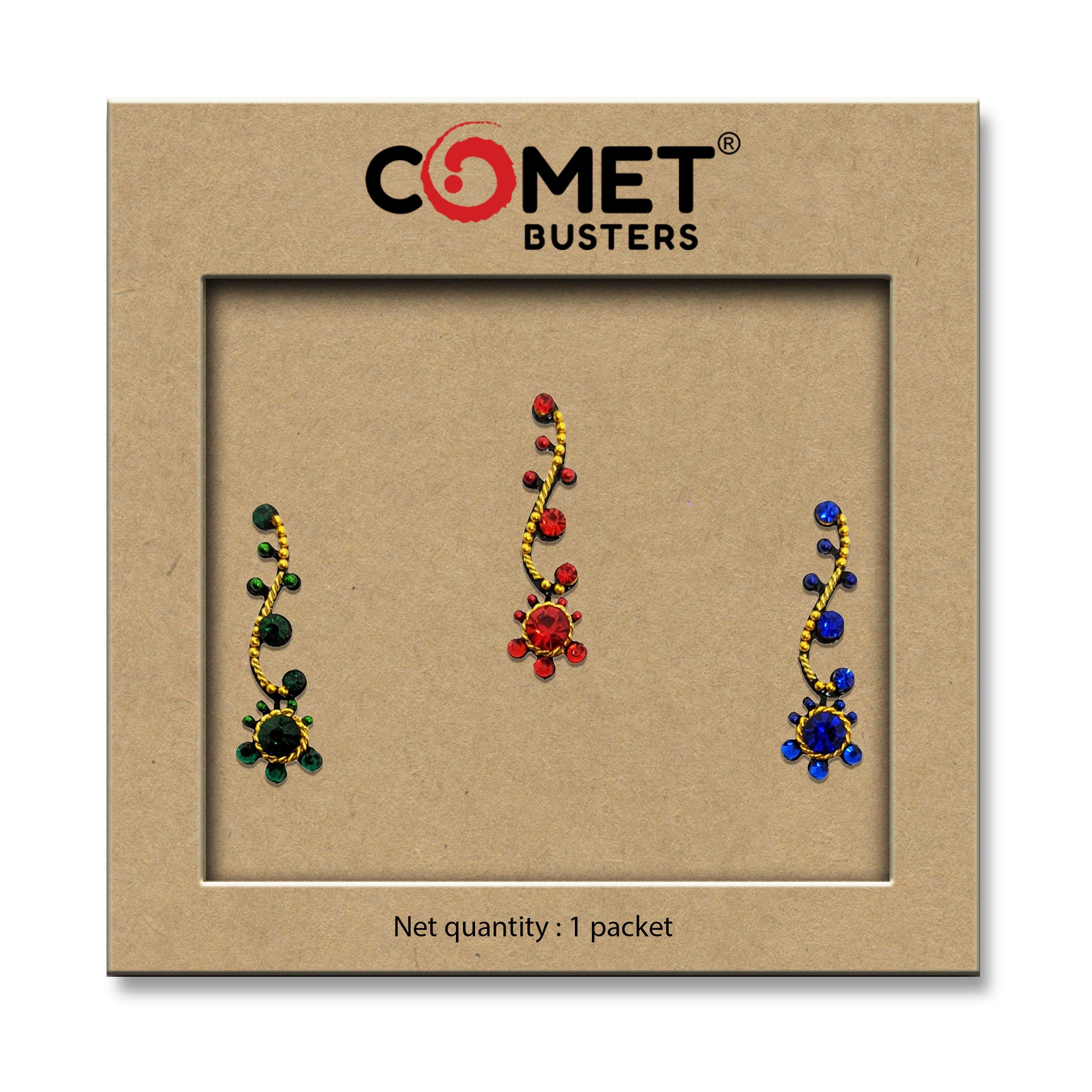 Comet Busters® Red, Green, Blue, Multicolor Artistic Abstract Bindis – PVC, Diamond, Crystal, Shiny Beads – Handcrafted, Reusable & Skin-Friendly Bindis for Party Wear (20mm) – Forehead Bindi Stickers for Women & Girls – BIN1608