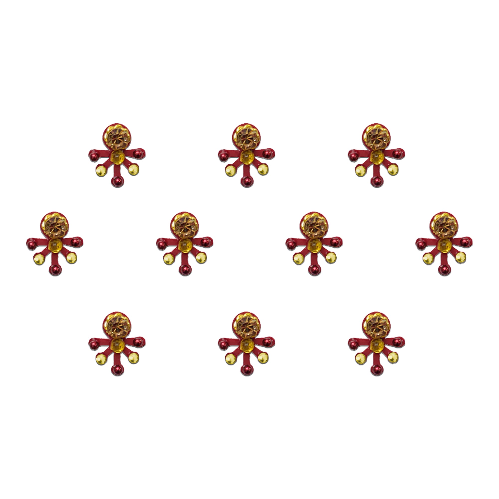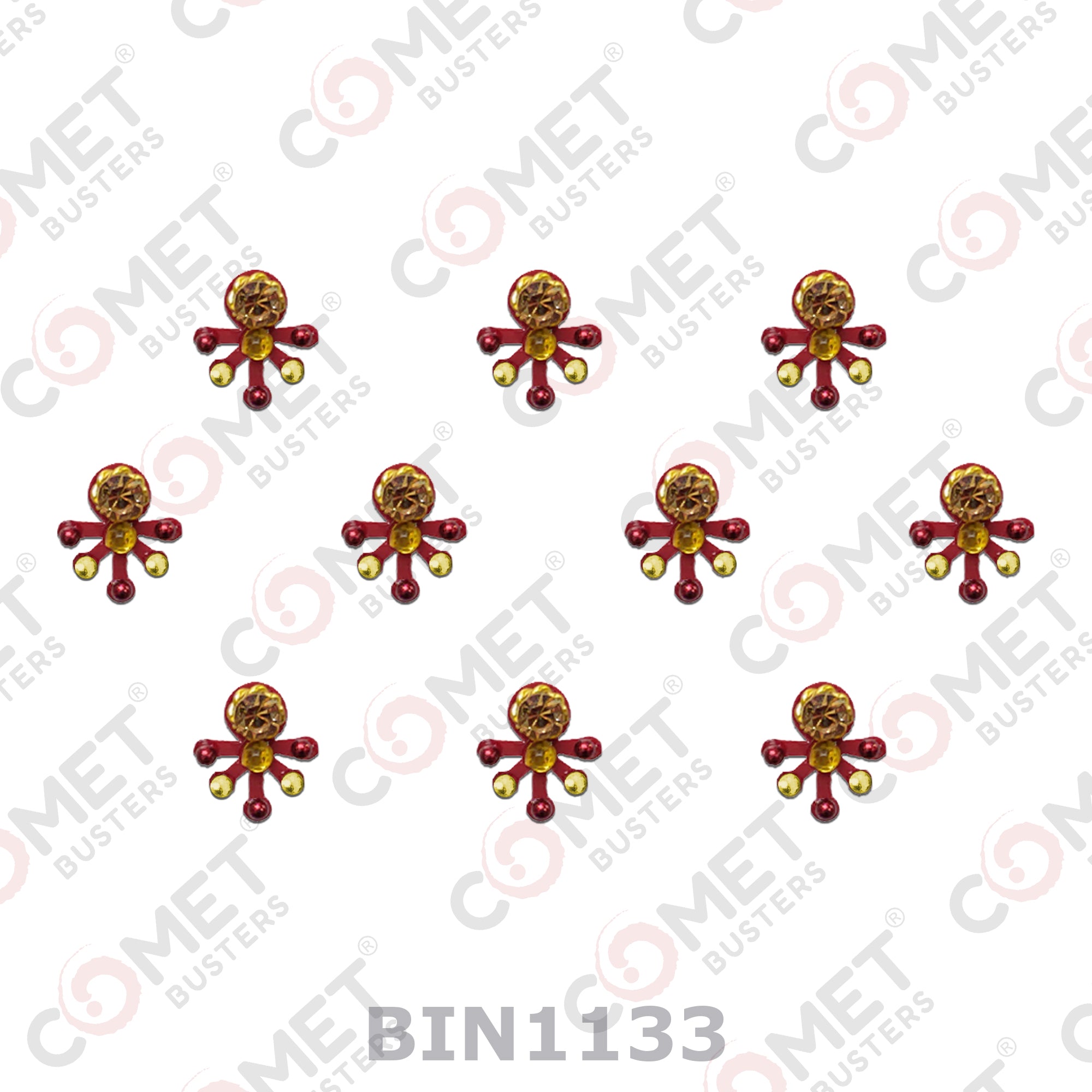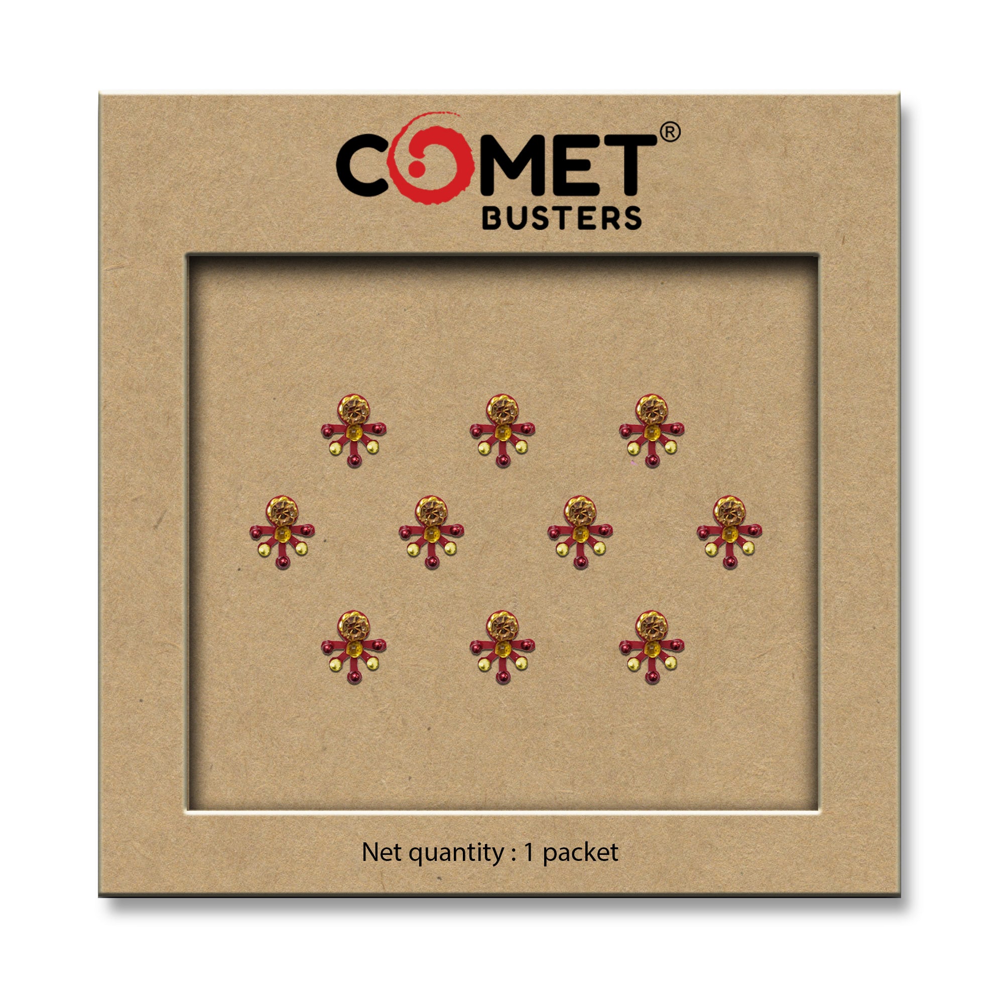 Comet Busters® Maroon, Gold, Multicolor Artistic Abstract Bindis – Diamond, Shiny Beads, PVC – Handcrafted, Reusable & Skin-Friendly Bindis for Party Wear (7mm) – Forehead Bindi Stickers for Women & Girls – BIN1133