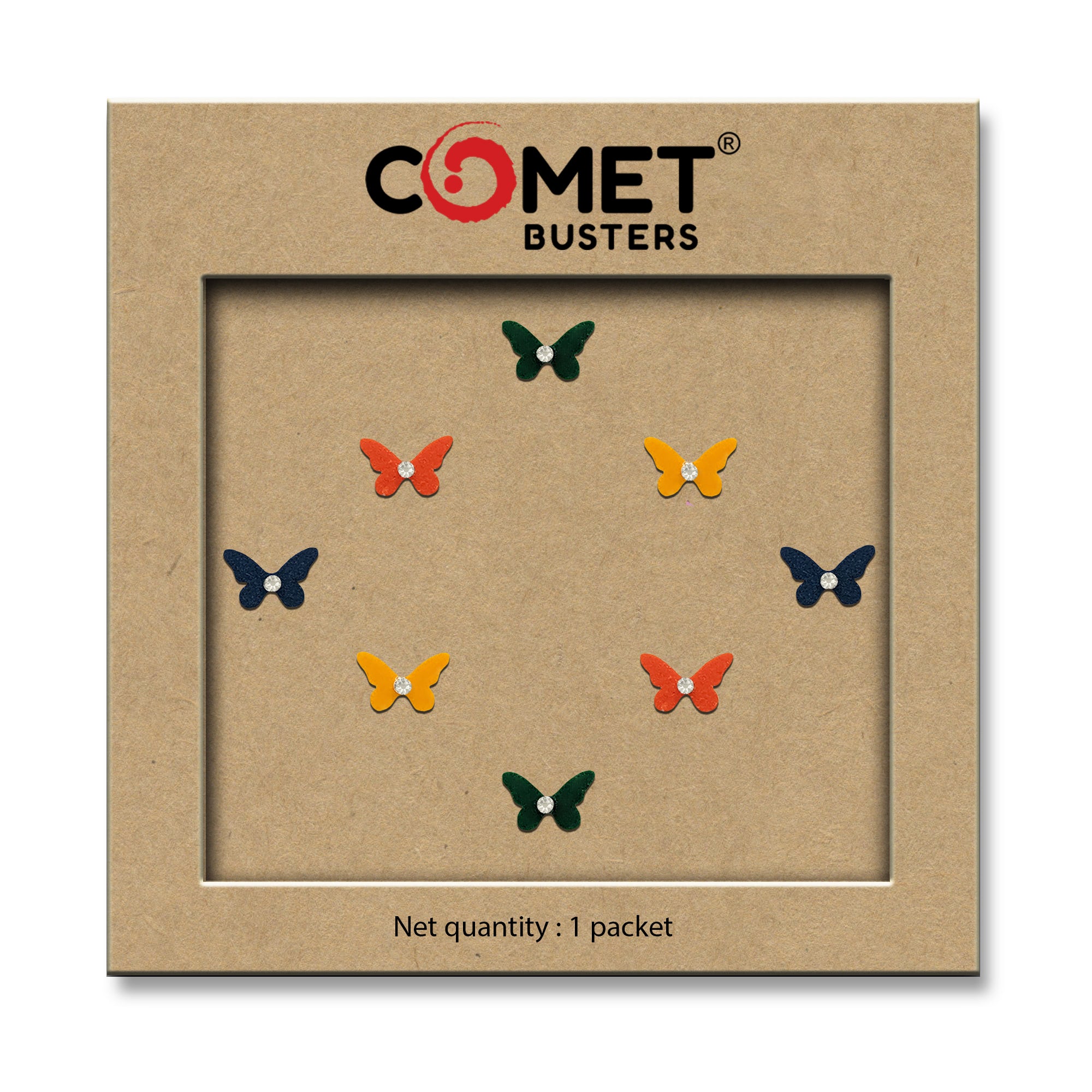 Comet Busters® Orange, Yellow, Black, Multicolor Butterfly – Velvet, Diamond – Handcrafted, Reusable & Skin-Friendly Bindis for Party Wear (8mm) – Forehead Bindi Stickers for Women & Girls – BIN1625