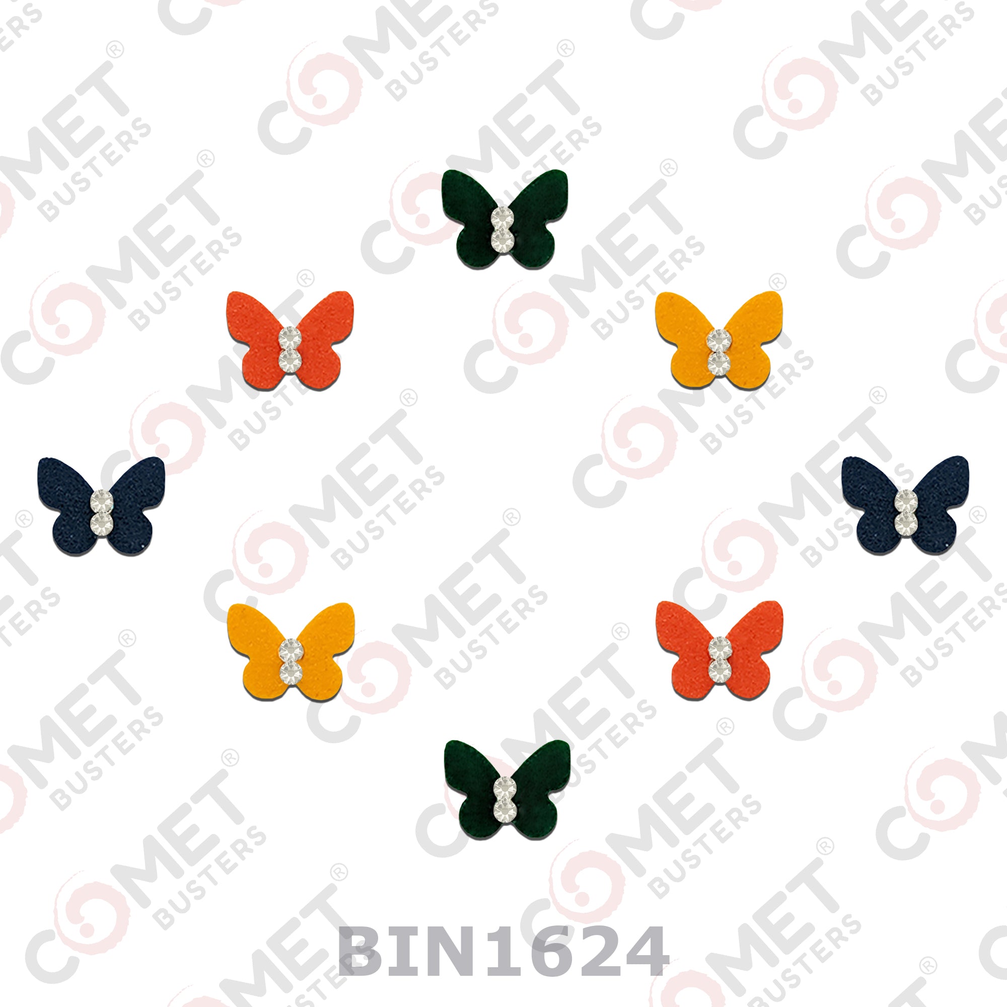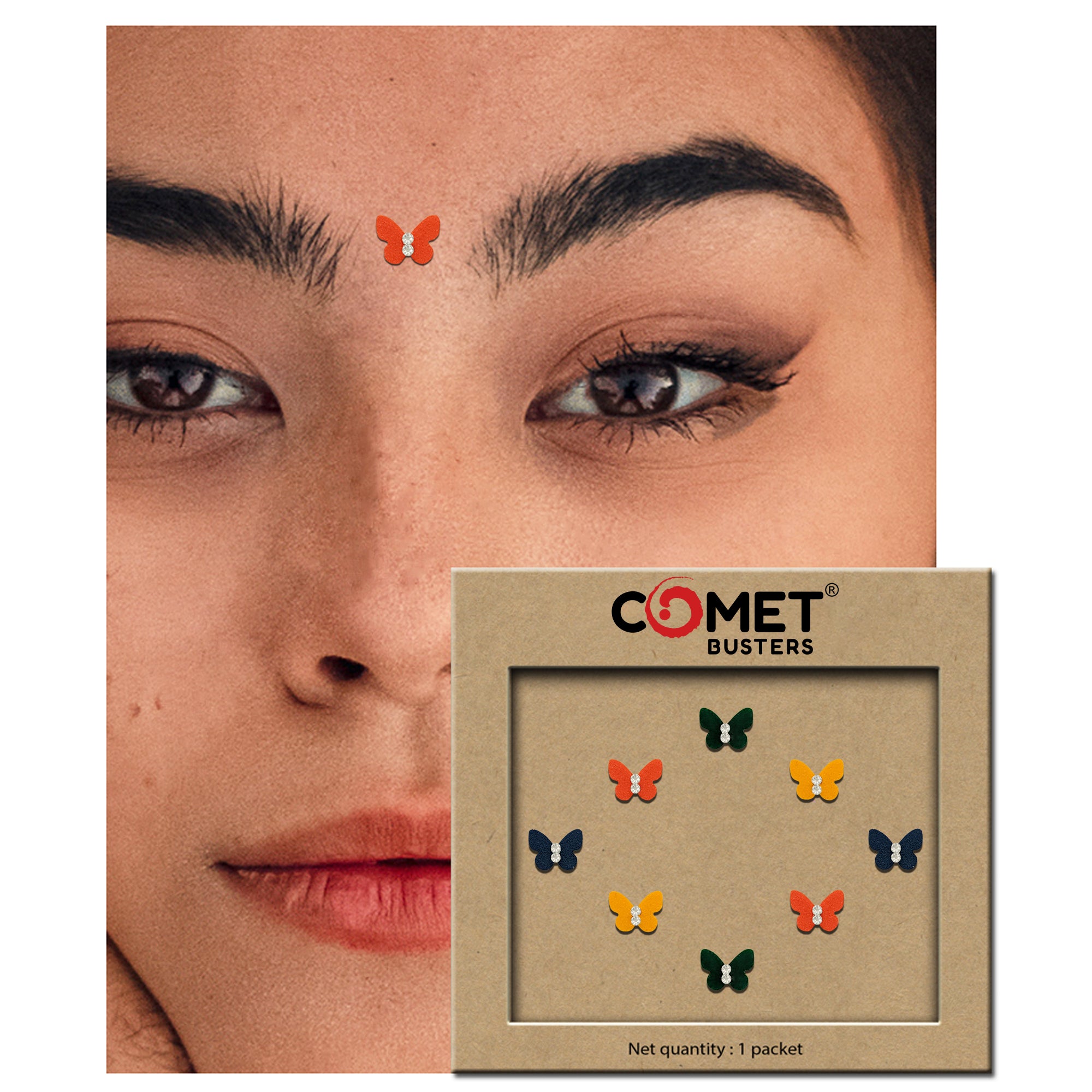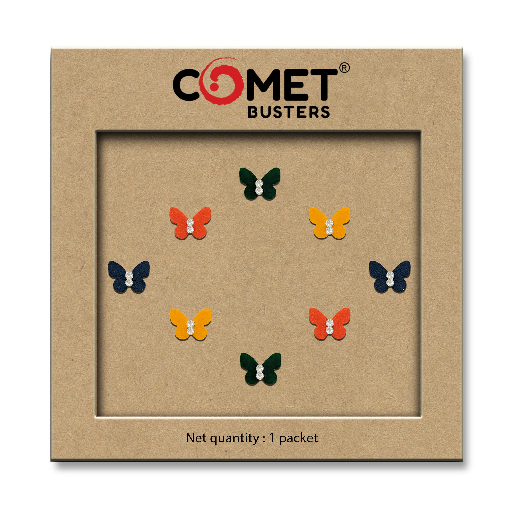 Comet Busters® Orange, Yellow, Black, Multicolor Butterfly – Velvet, Diamond – Handcrafted, Reusable & Skin-Friendly Bindis for Party Wear (8mm) – Forehead Bindi Stickers for Women & Girls – BIN1624