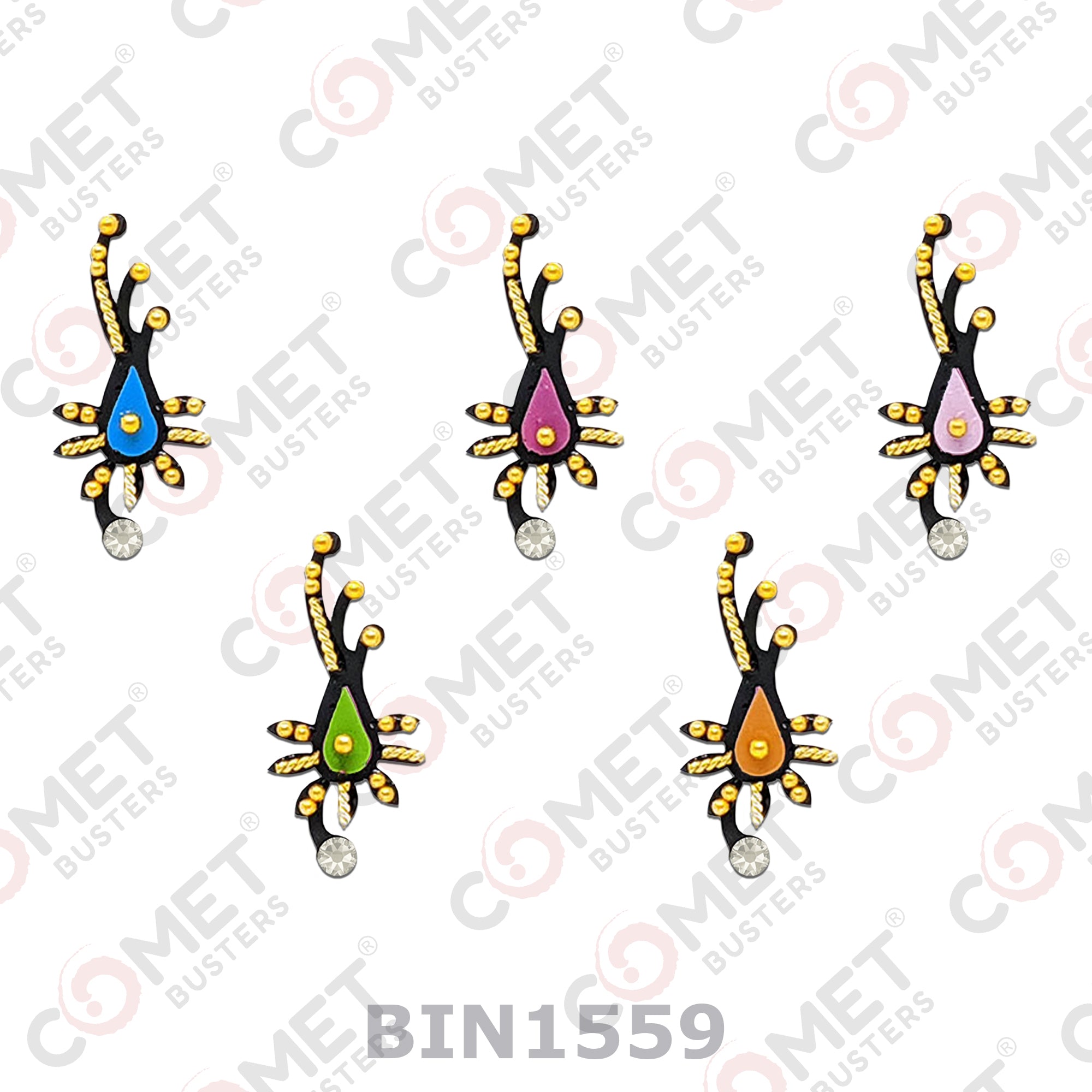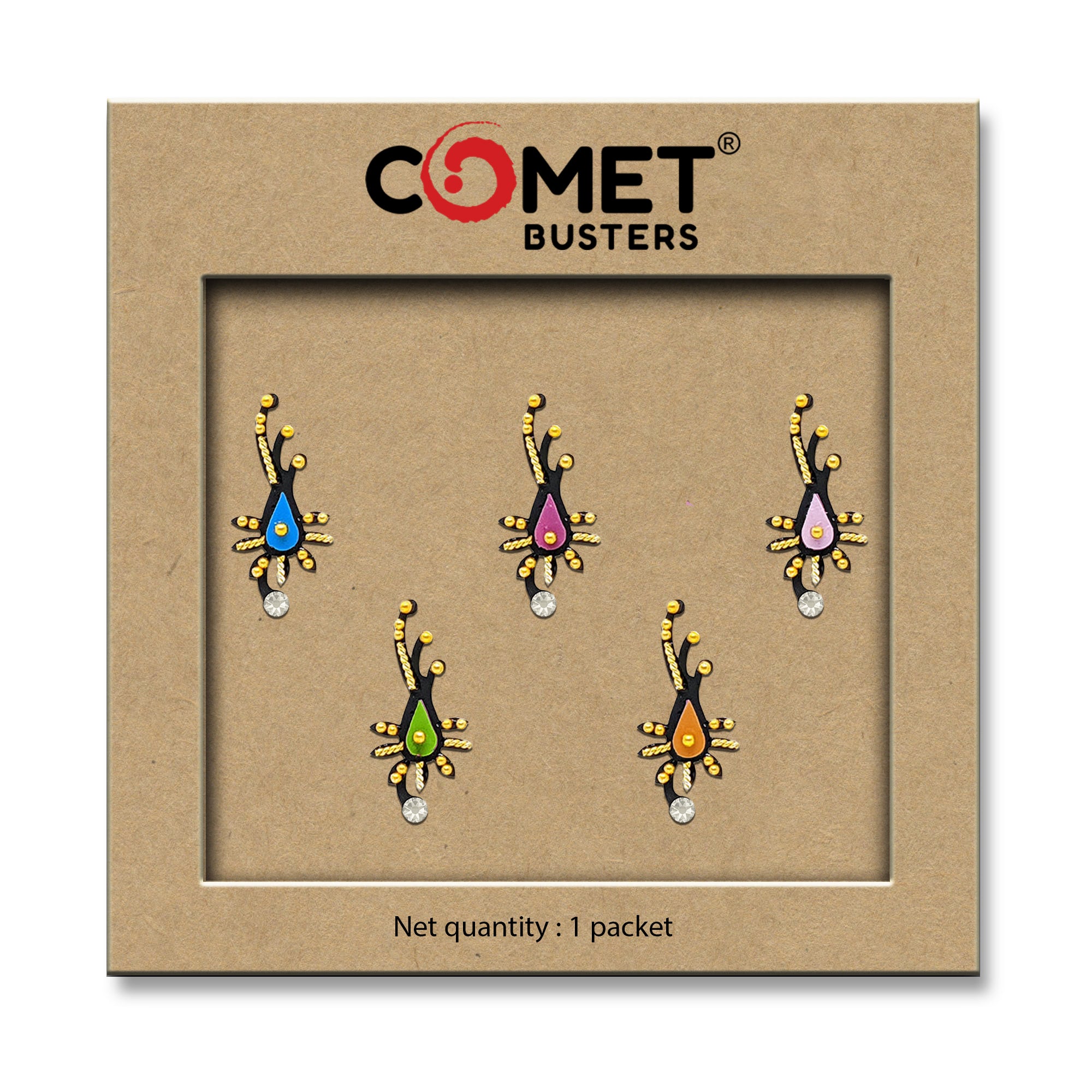 Comet Busters® Multicolor Artistic Abstract Bindis – PVC, Shiny Beads, Diamond – Handcrafted, Reusable & Skin-Friendly Bindis for Party Wear (17mm) – Forehead Bindi Stickers for Women & Girls – BIN1559