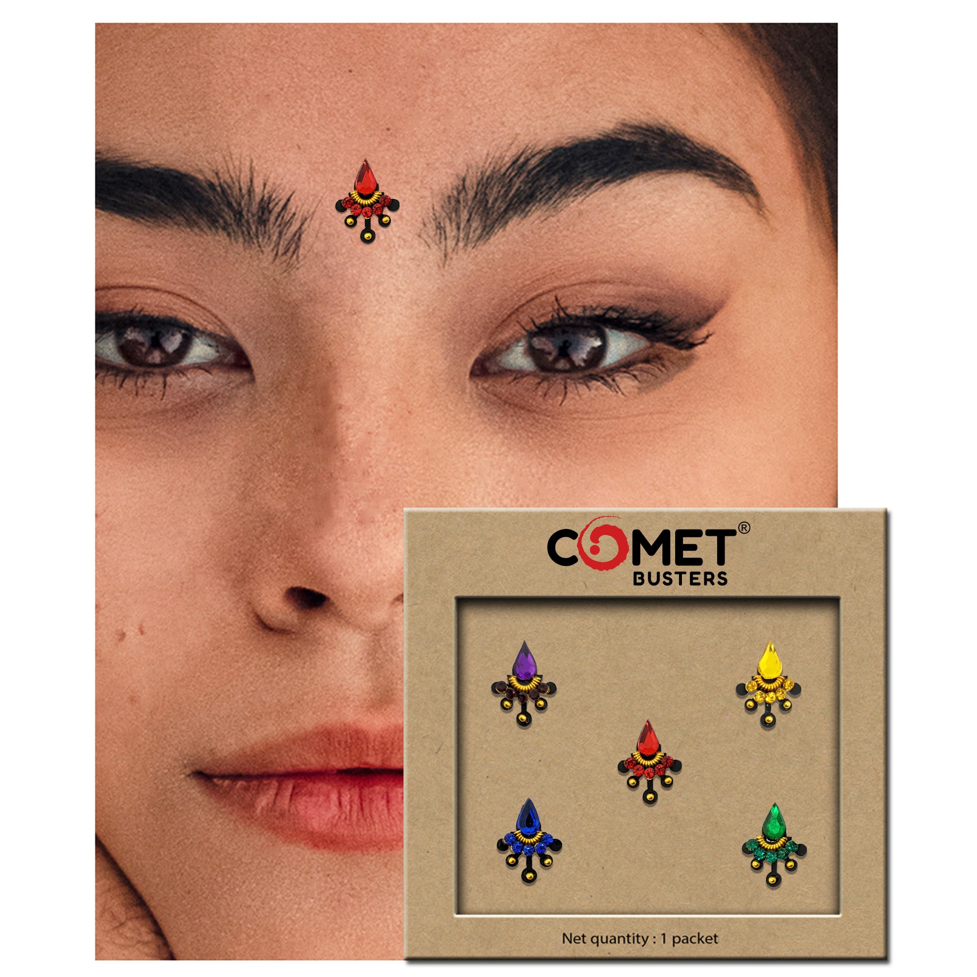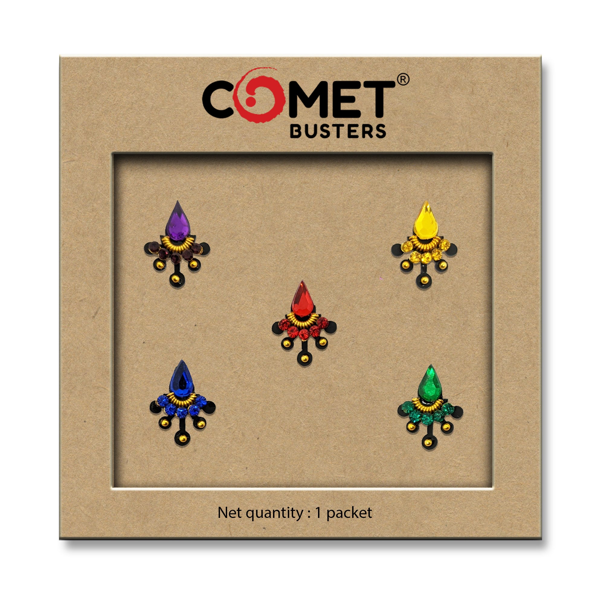 Comet Busters® Multicolor Tear Drop – PVC, Diamond, Crystal, Shiny Beads – Handcrafted, Reusable & Skin-Friendly Bindis for Party Wear (12mm) – Forehead Bindi Stickers for Women & Girls – BIN1606