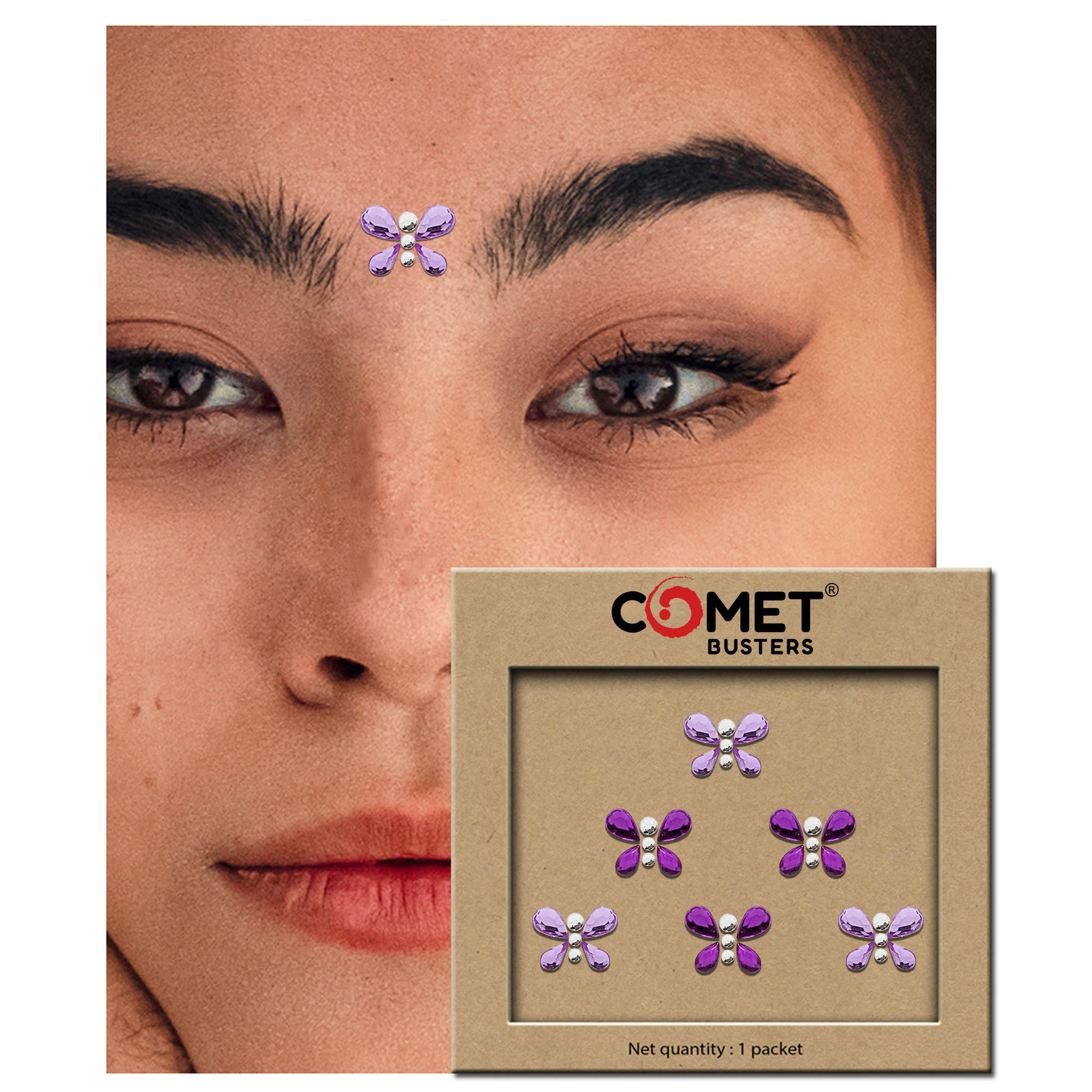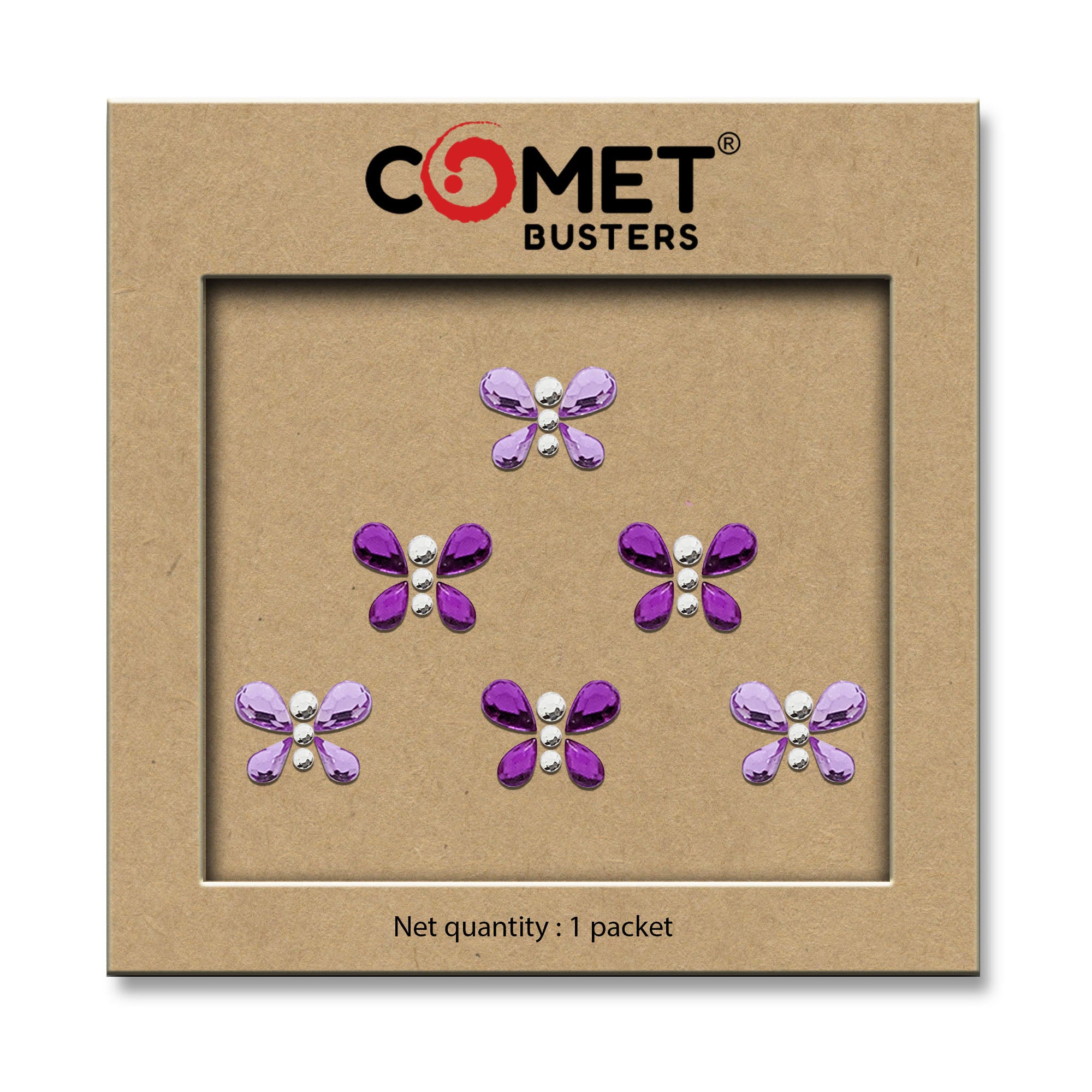 Comet Busters® Purple Butterfly – Crystal, Diamond – Handcrafted, Reusable & Skin-Friendly Bindis for Party Wear (10mm) – Forehead Bindi Stickers for Women & Girls – BIN1703