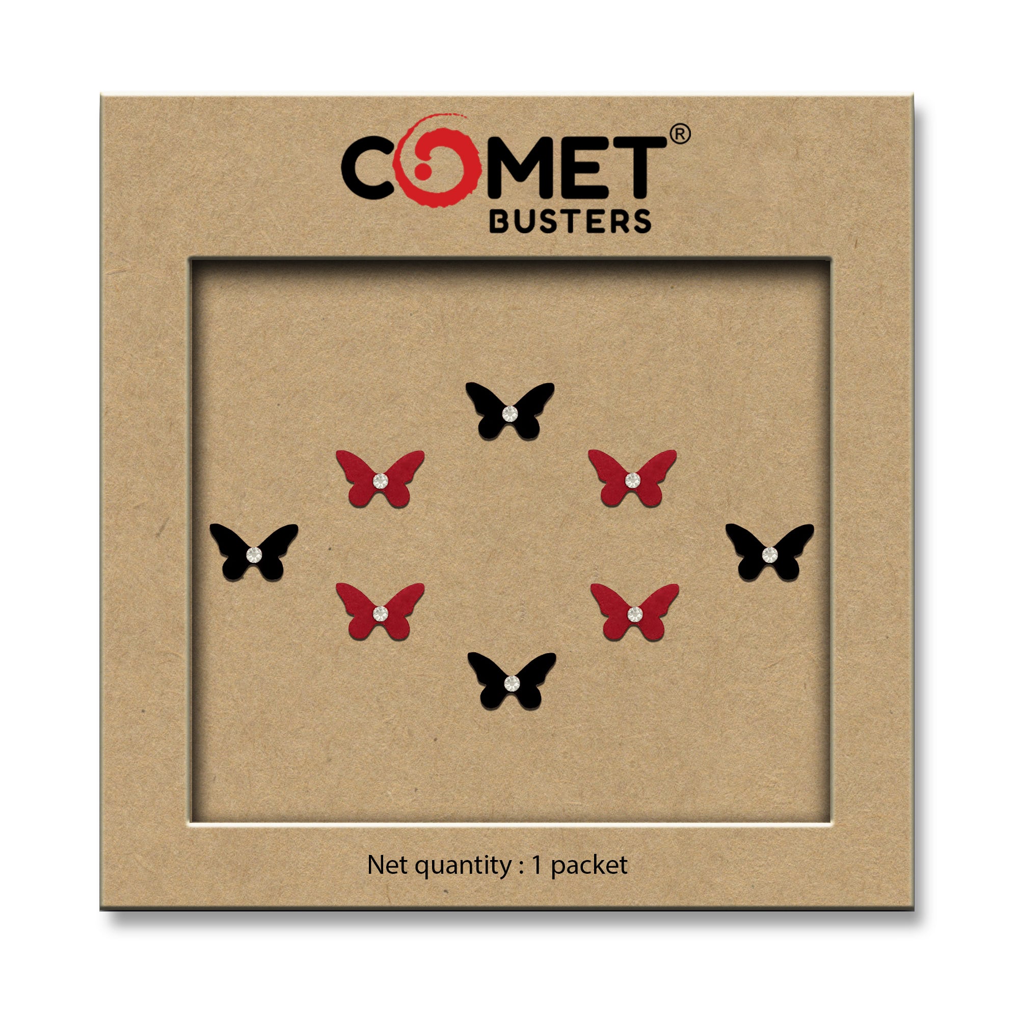Comet Busters® Red, Black, Multicolor Butterfly – Velvet, Diamond – Handcrafted, Reusable & Skin-Friendly Bindis for Party Wear (8mm) – Forehead Bindi Stickers for Women & Girls – BIN1623