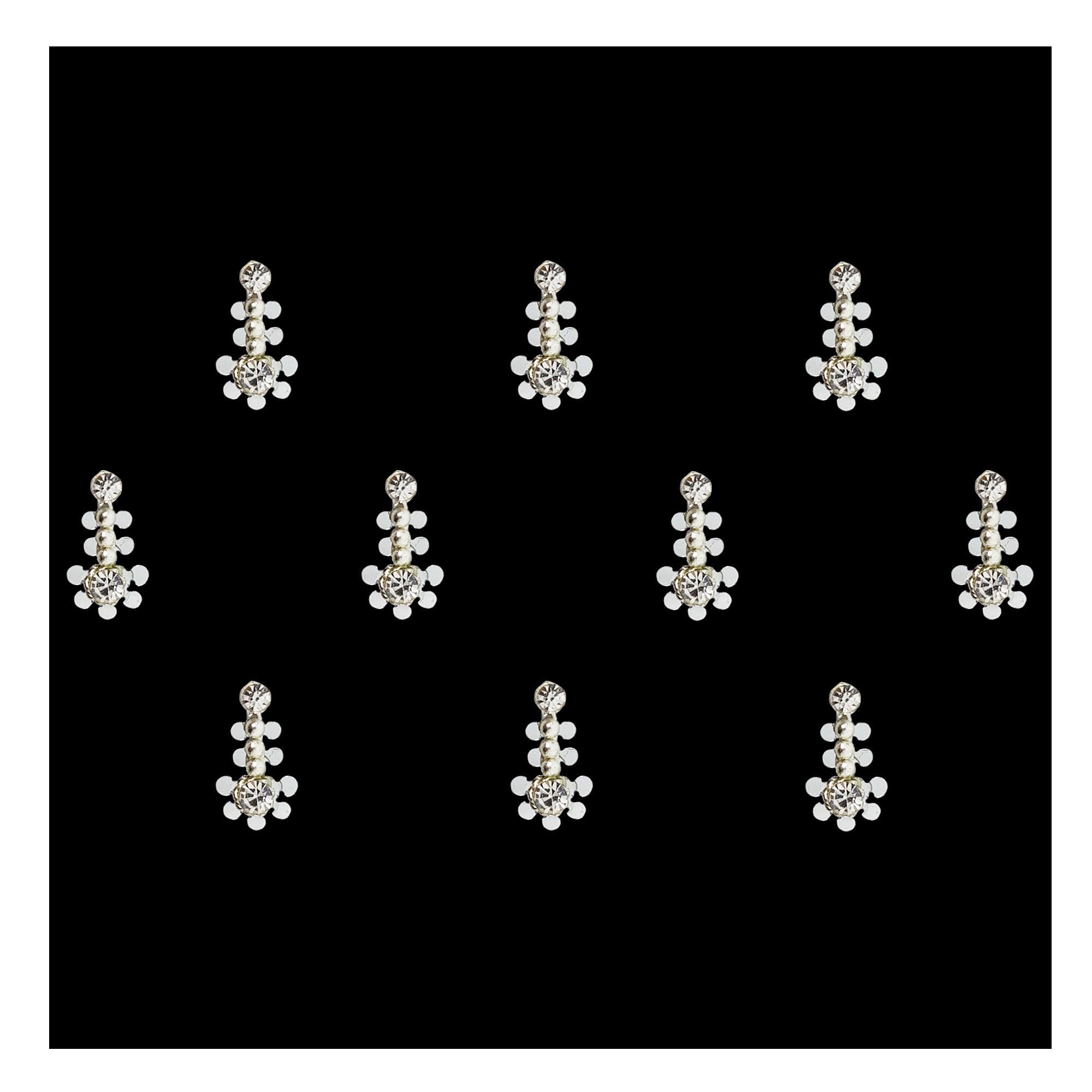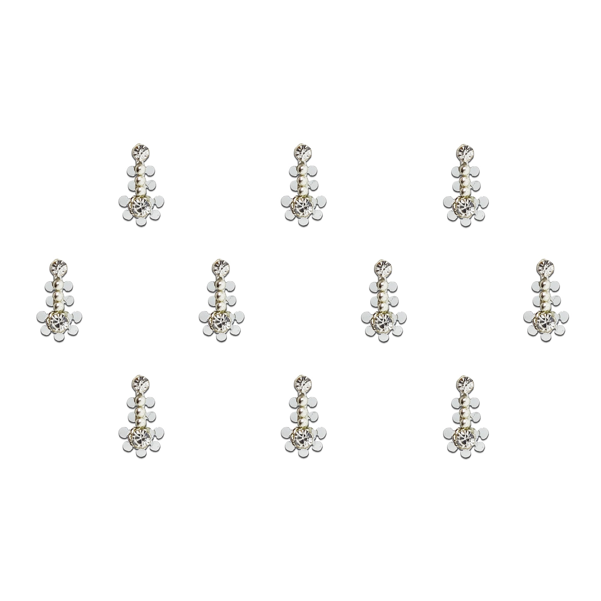 Comet Busters® Silver Artistic Abstract Bindis – Diamond, Shiny Beads – Handcrafted, Reusable & Skin-Friendly Bindis for Partywear Wear (8mm) – Forehead Bindi Stickers for Women & Girls – BIN874