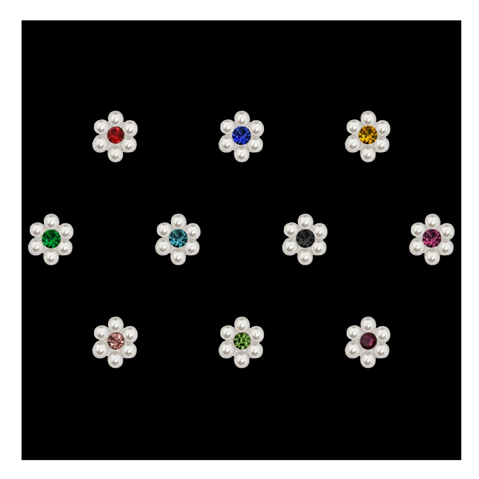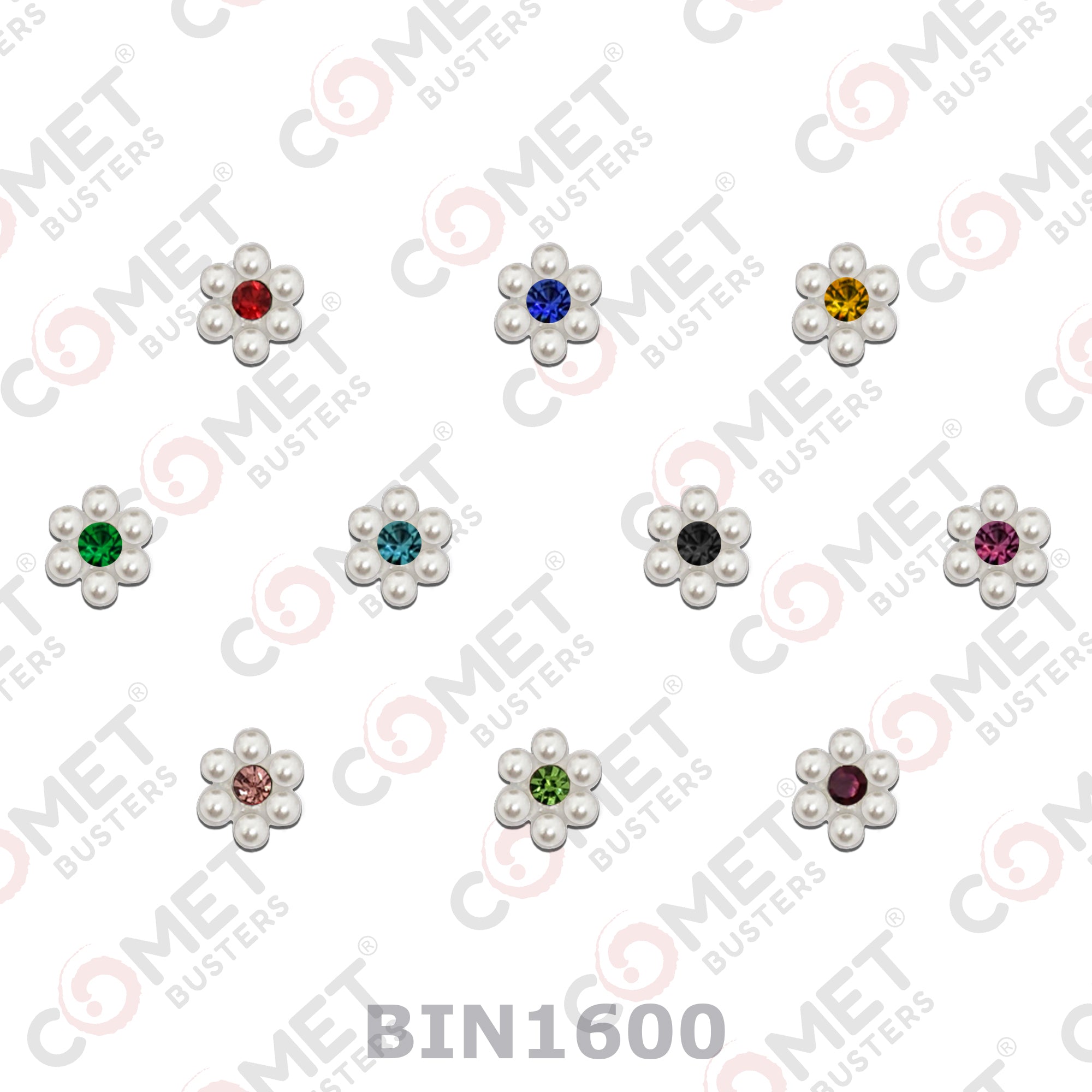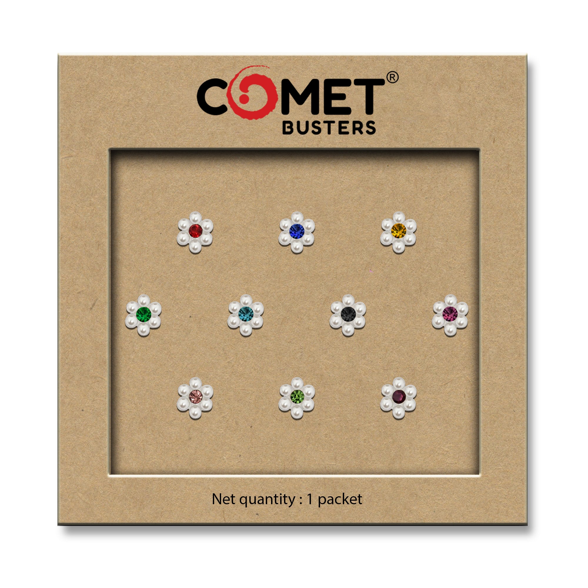 Comet Busters® Multicolor Floral – Pearl, Diamond – Handcrafted, Reusable & Skin-Friendly Bindis for Party Wear (6mm) – Forehead Bindi Stickers for Women & Girls – BIN1600