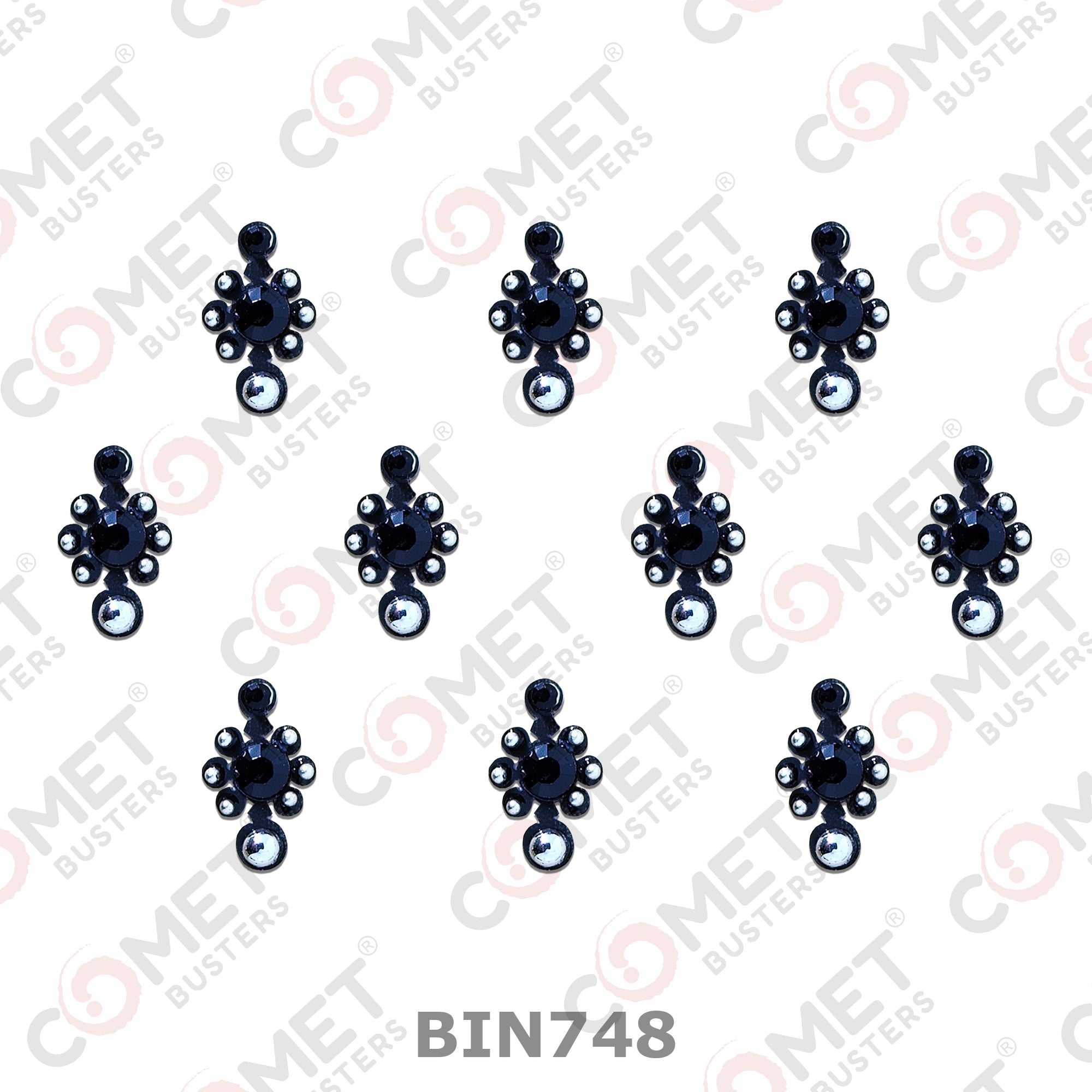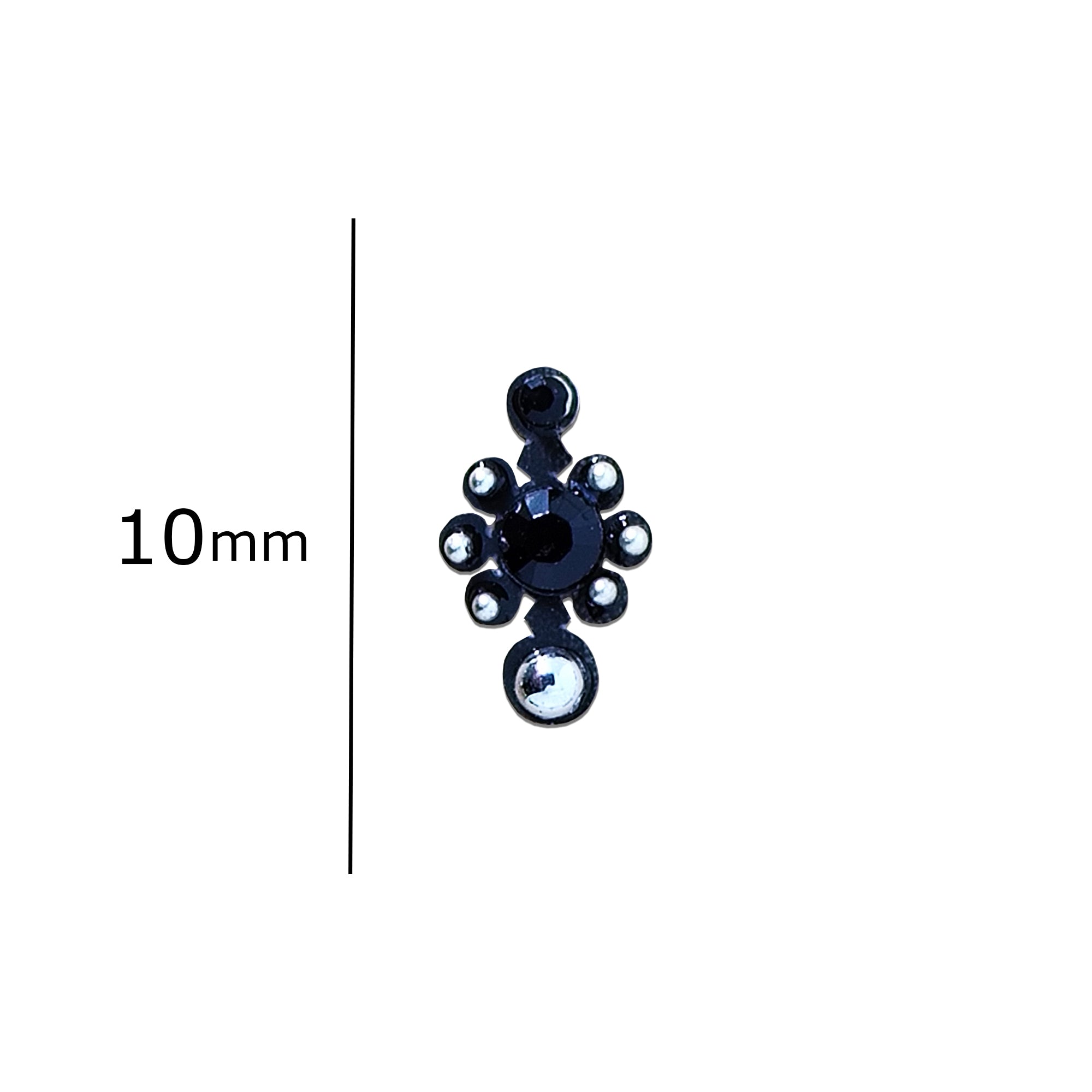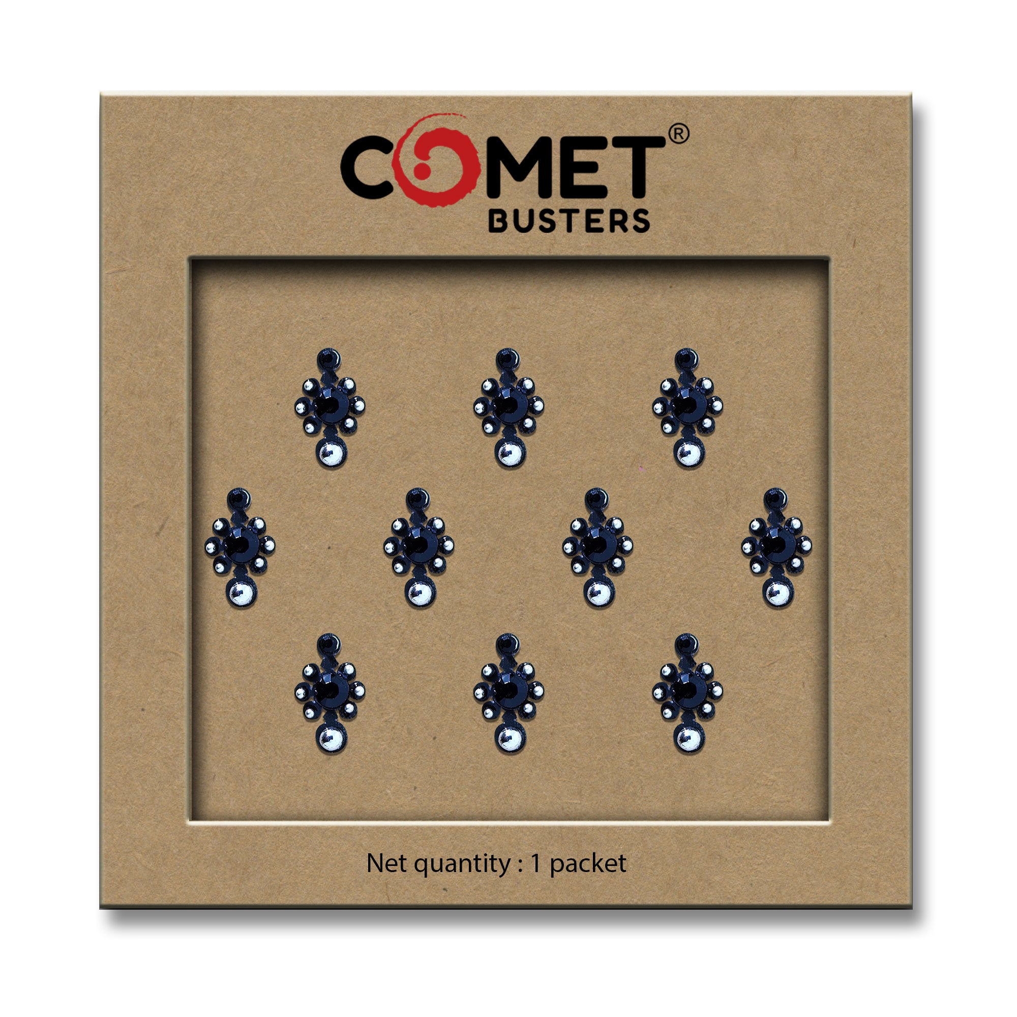 Comet Busters® Black Artistic Abstract Bindis – Diamond, Shiny Beads – Handcrafted, Reusable & Skin-Friendly Bindis for Partywear Wear (10mm) – Forehead Bindi Stickers for Women & Girls – BIN748