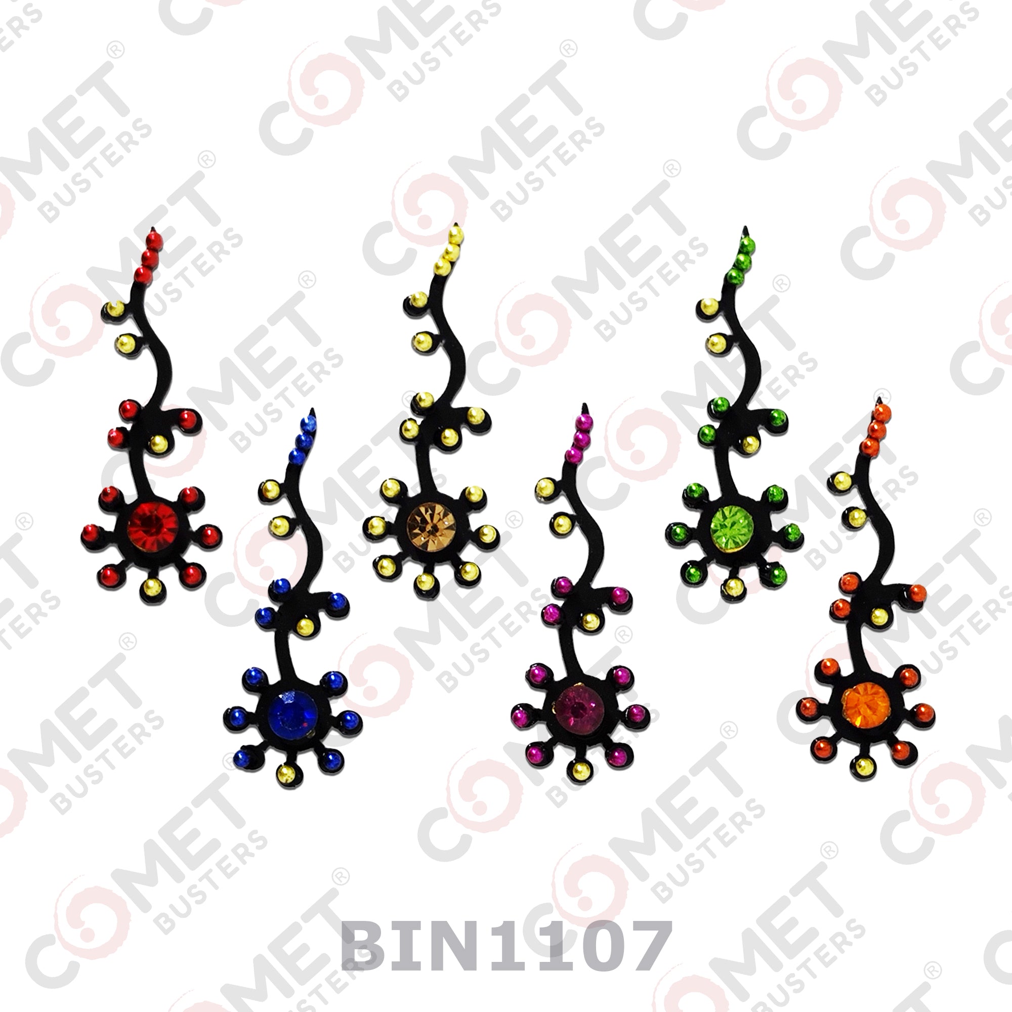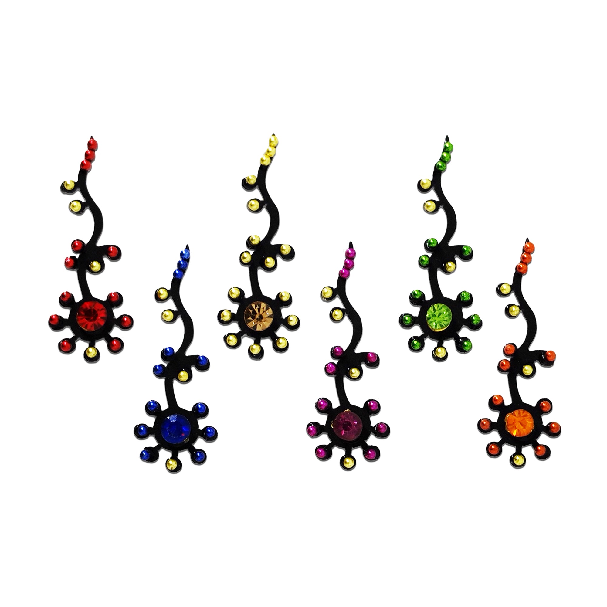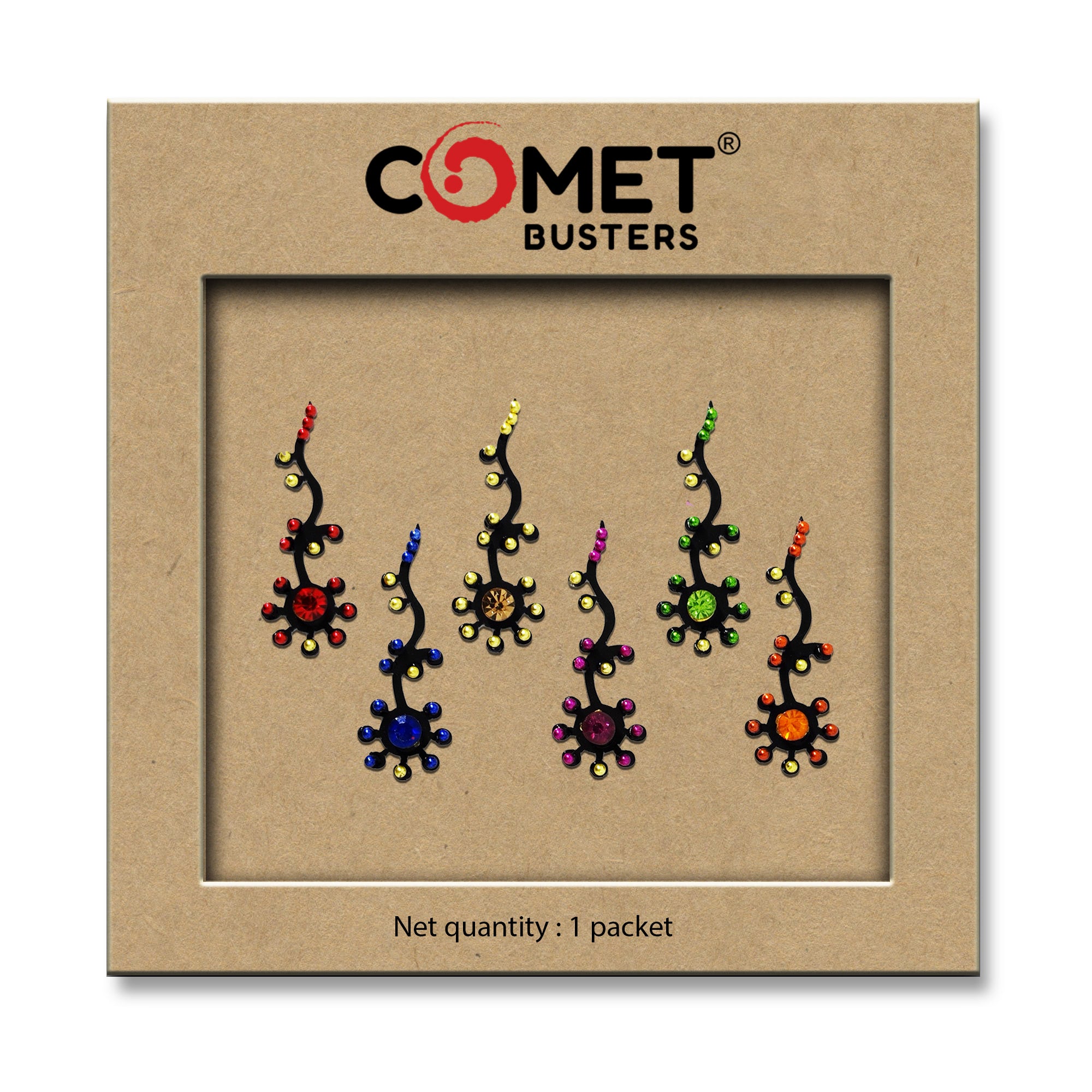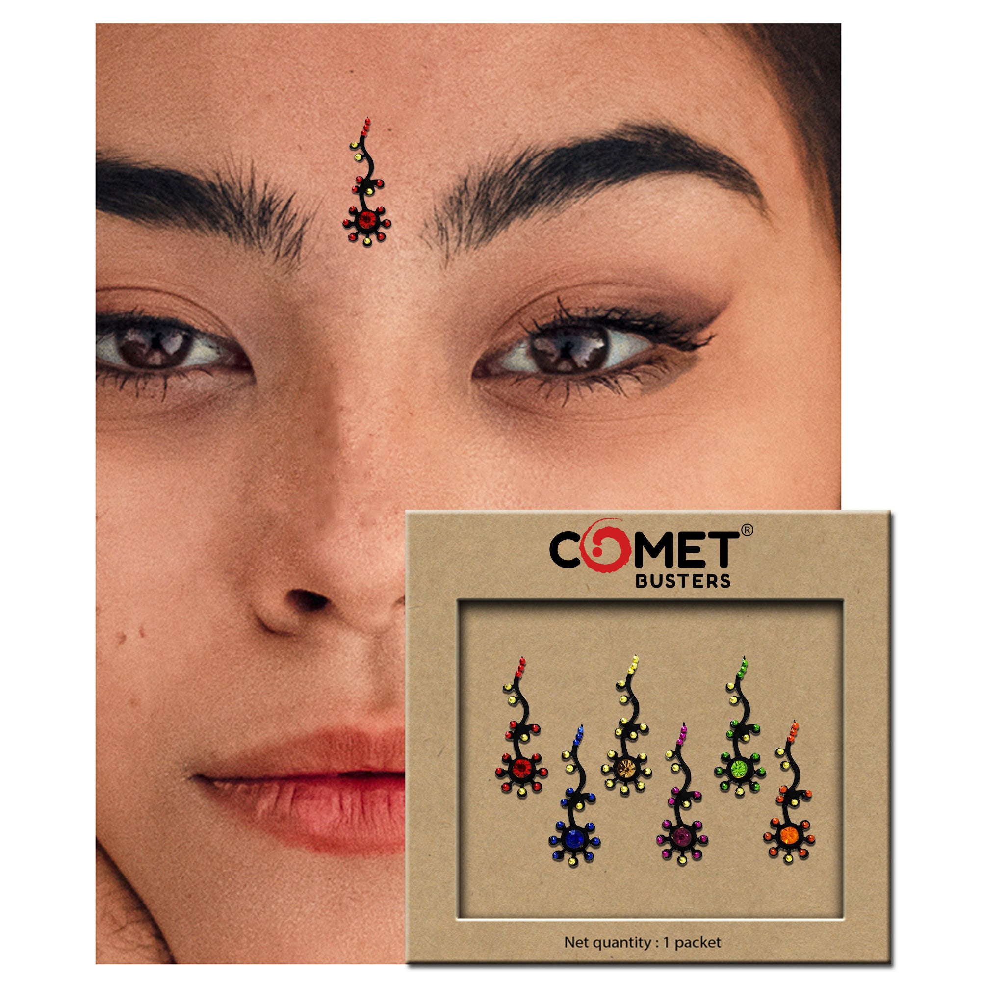 Comet Busters® Multicolor, Black Artistic Abstract Bindis – Diamond, Shiny Beads, PVC – Handcrafted, Reusable & Skin-Friendly Bindis for Party Wear (22mm) – Forehead Bindi Stickers for Women & Girls – BIN1107