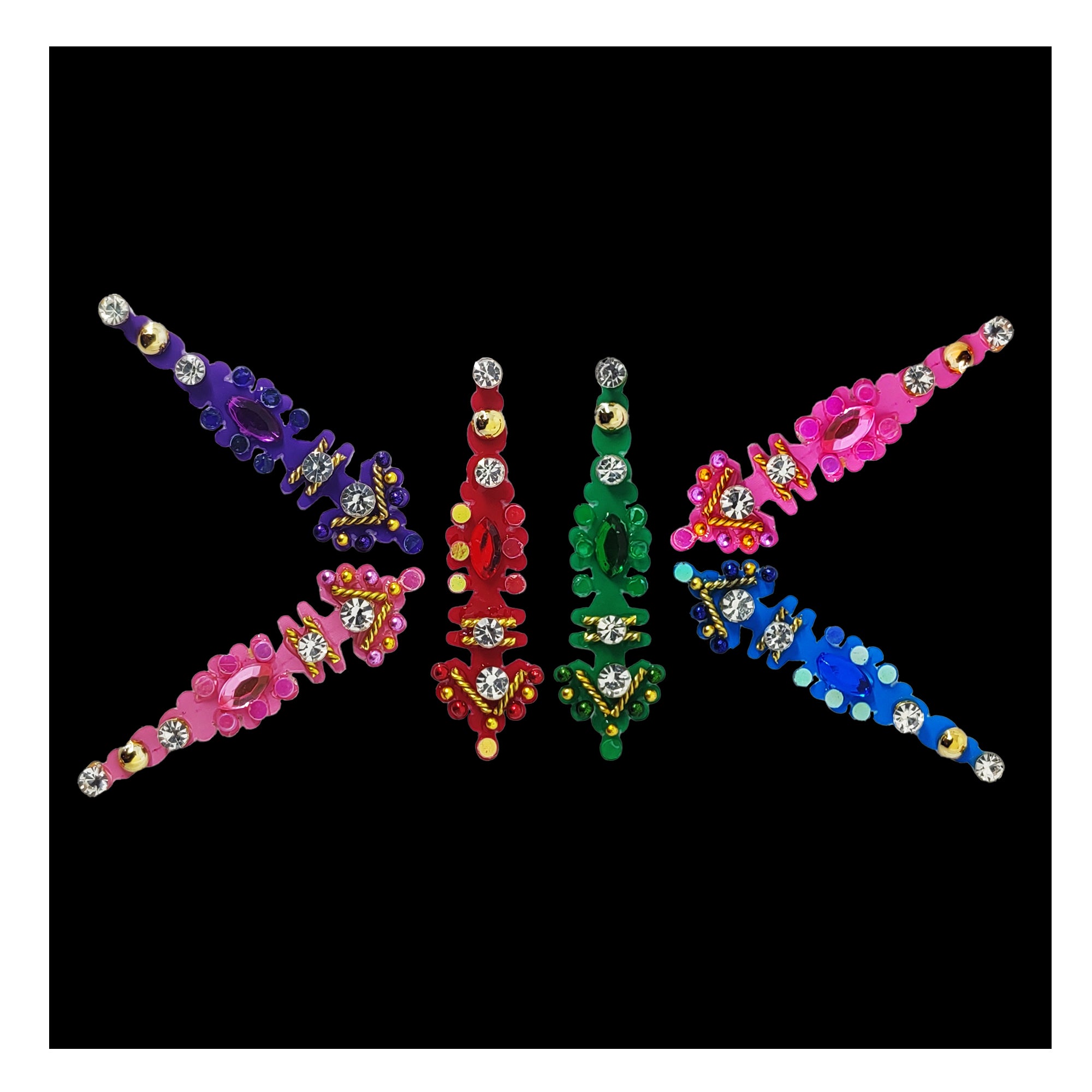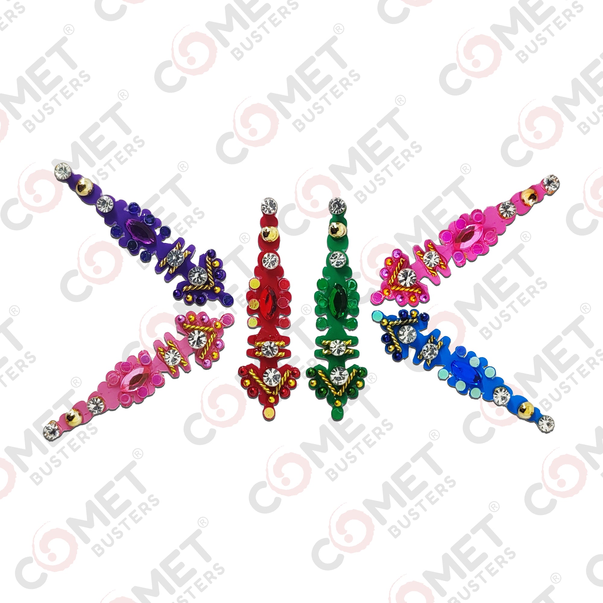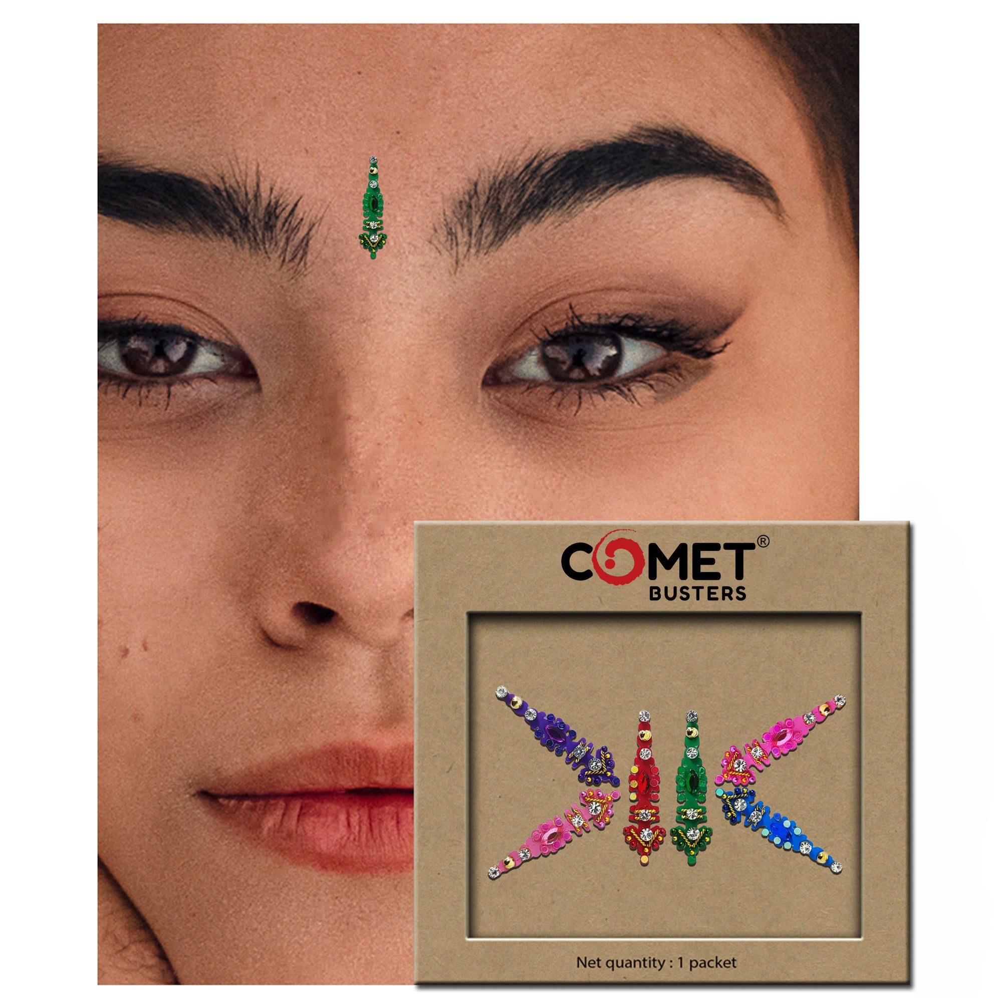 Comet Busters® Multicolor Artistic Abstract Bindis – Crystal, Diamond, Shiny Beads – Handcrafted, Reusable & Skin-Friendly Bindis for Bridal Wear (25mm) – Forehead Bindi Stickers for Women & Girls – BIN020