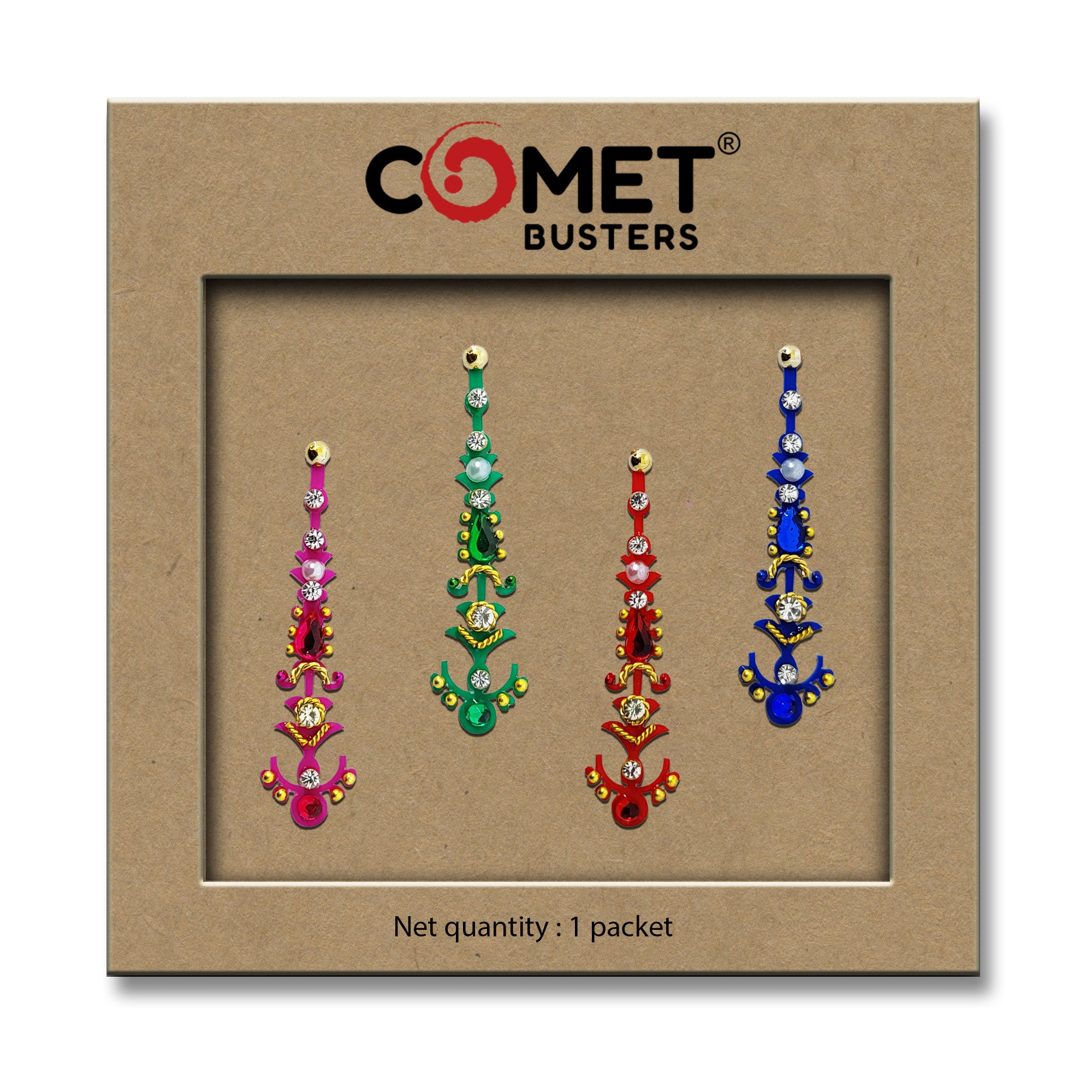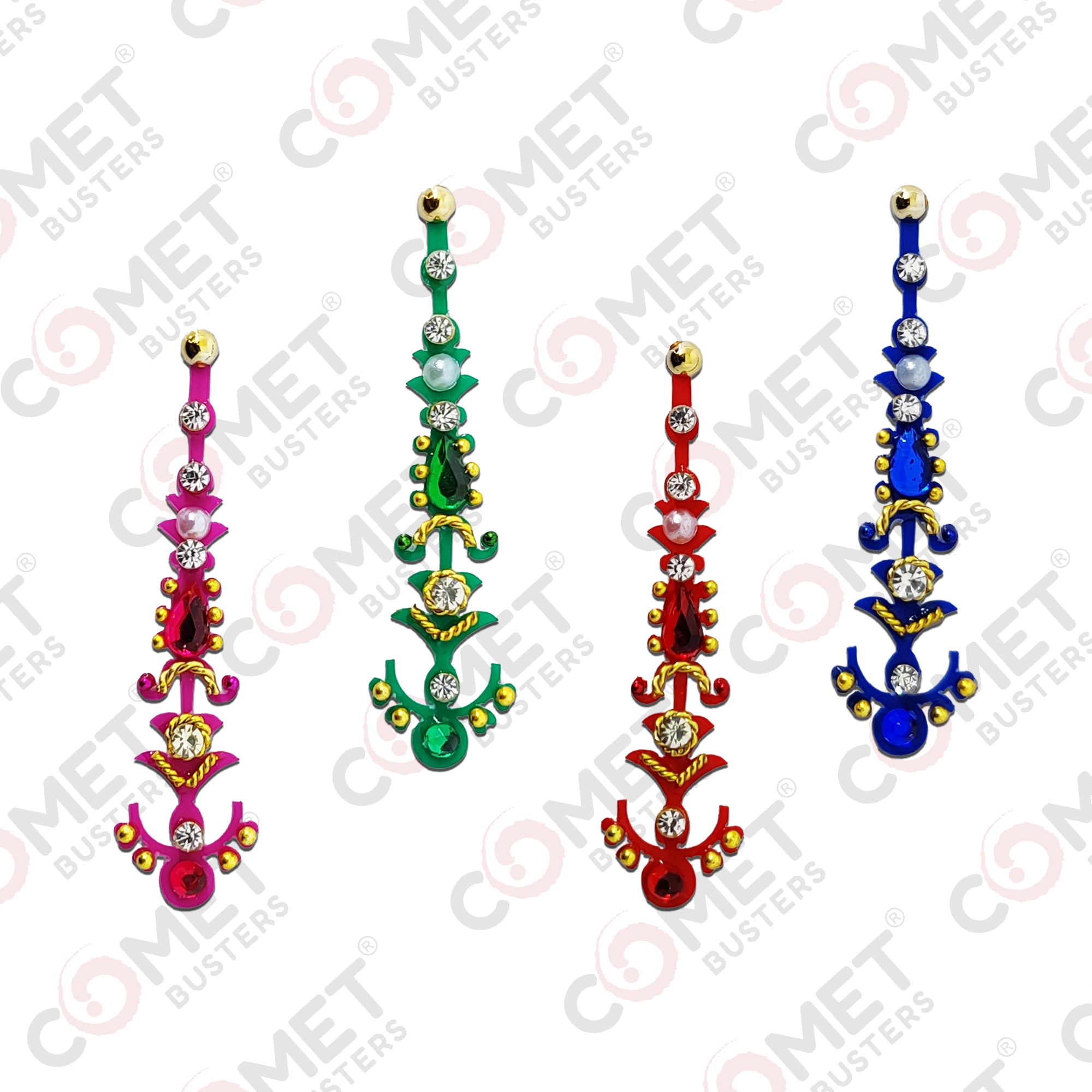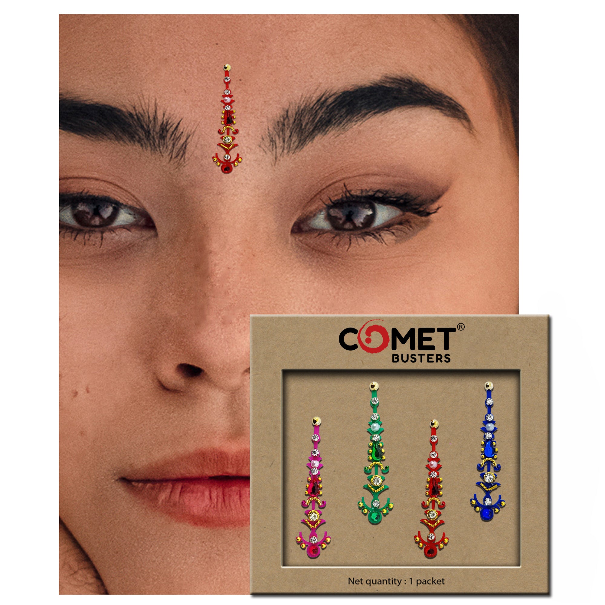 Comet Busters® Multicolor Artistic Abstract Bindis – Crystal, Diamond, Pearl, Shiny Beads – Handcrafted, Reusable & Skin-Friendly Bindis for Bridal Wear (35mm) – Forehead Bindi Stickers for Women & Girls – BIN034