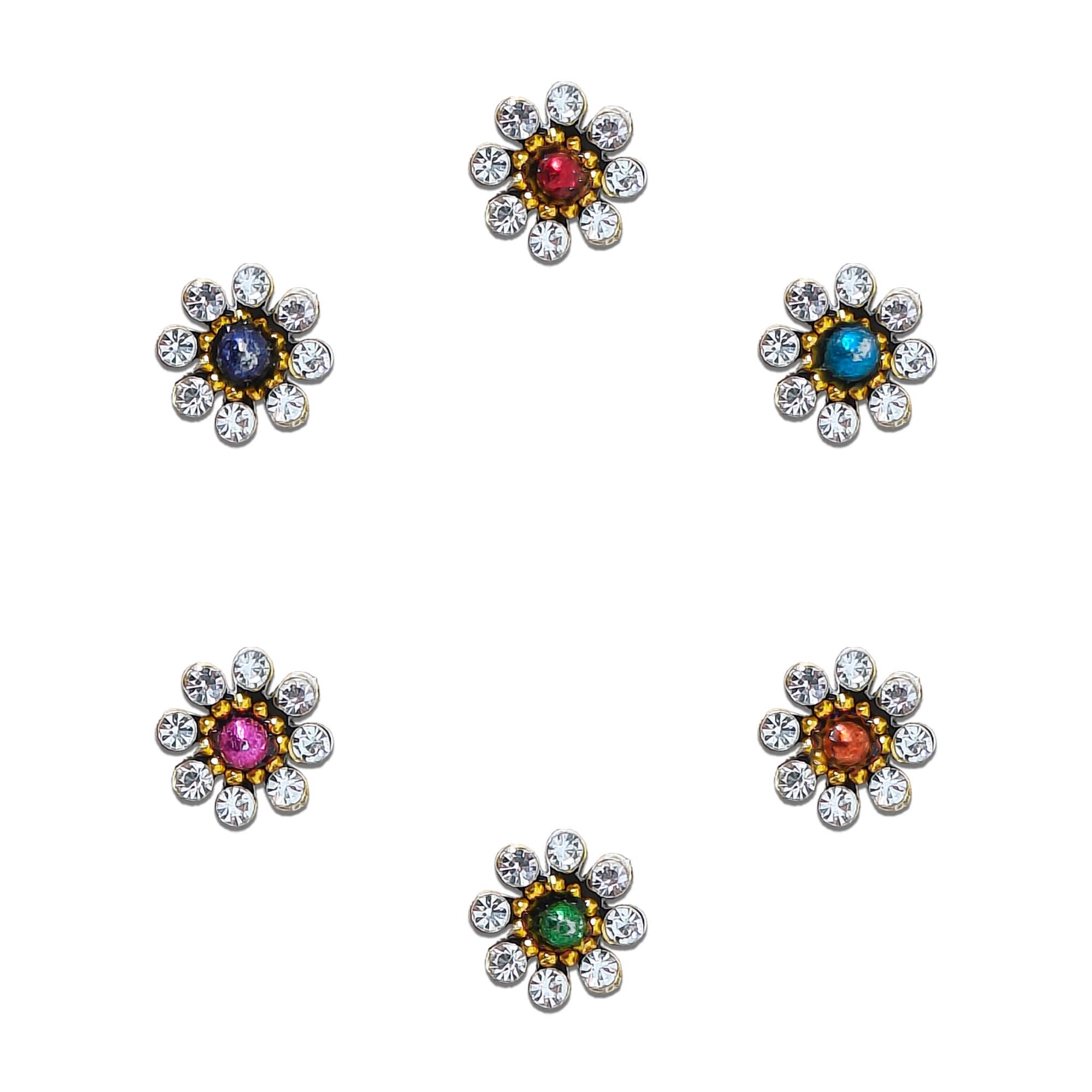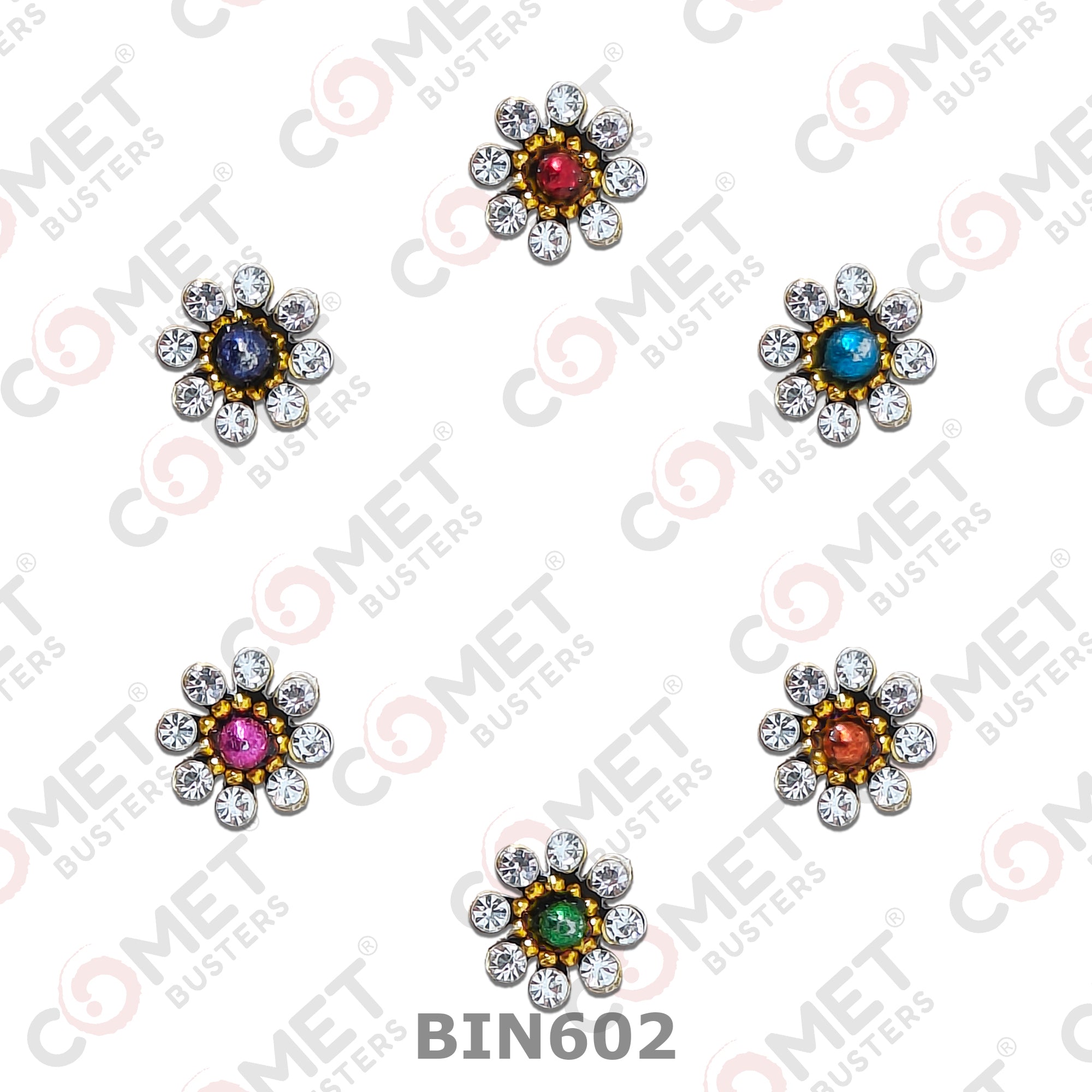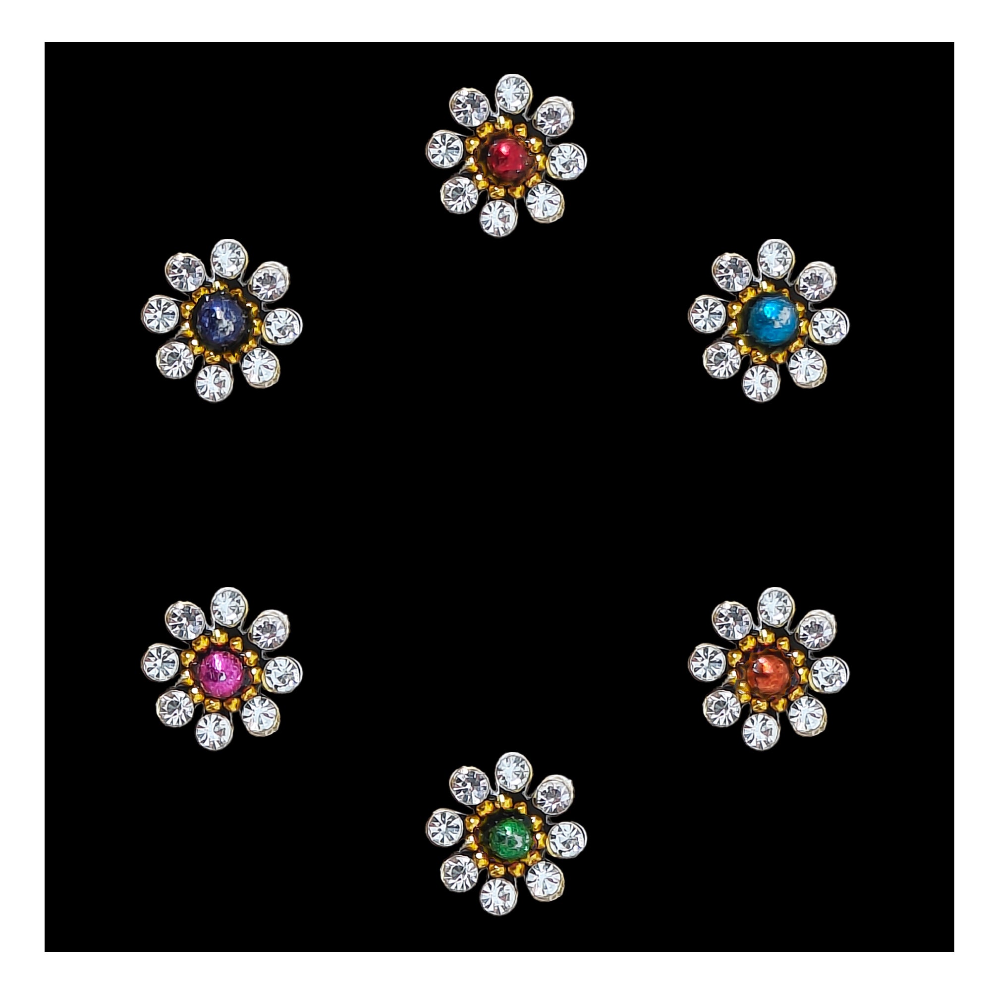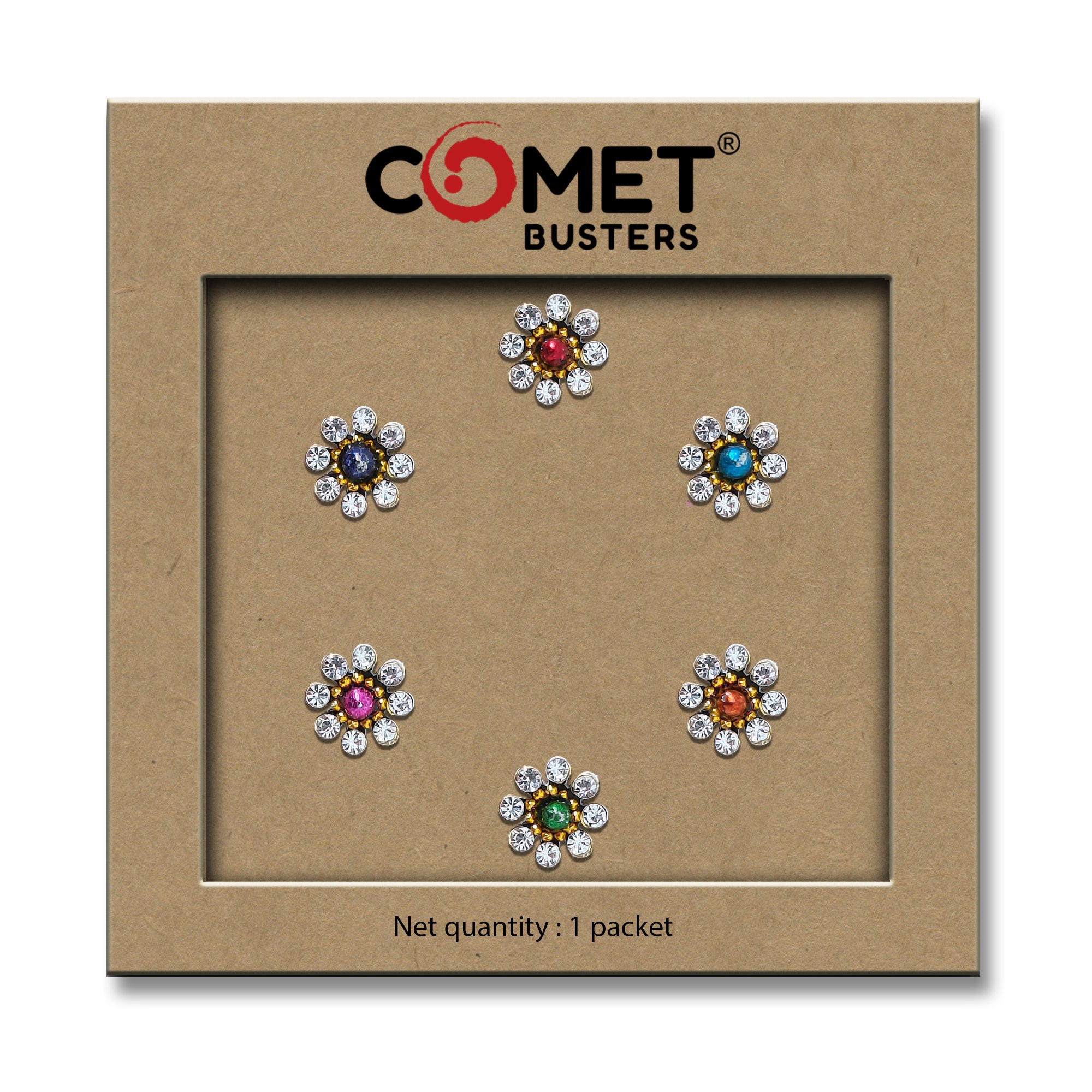 Comet Busters® Multicolor Floral – Diamond, Shiny Beads – Handcrafted, Reusable & Skin-Friendly Bindis for Partywear Wear (8mm) – Forehead Bindi Stickers for Women & Girls – BIN602