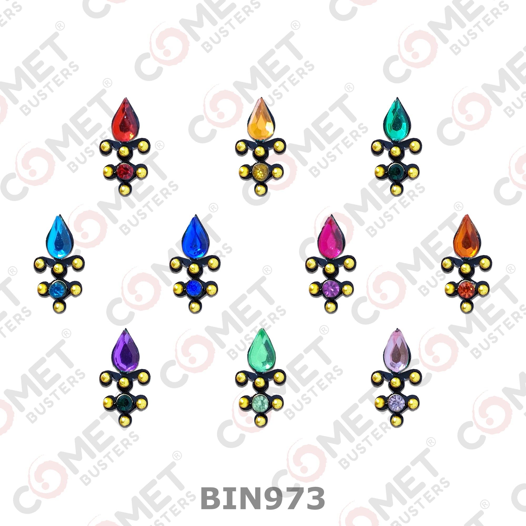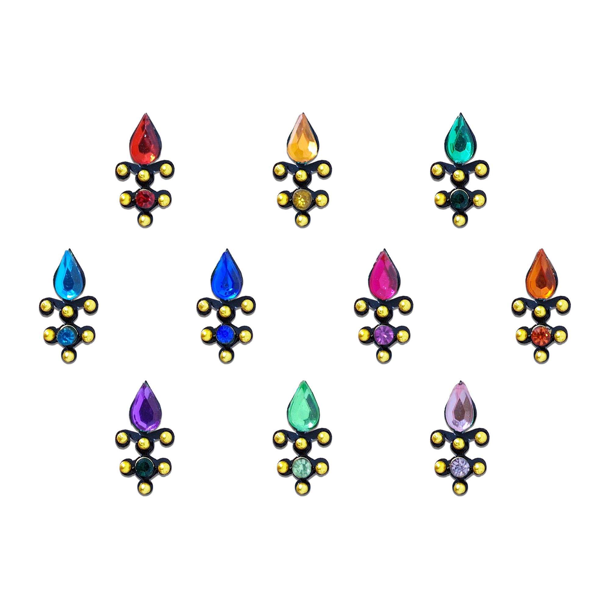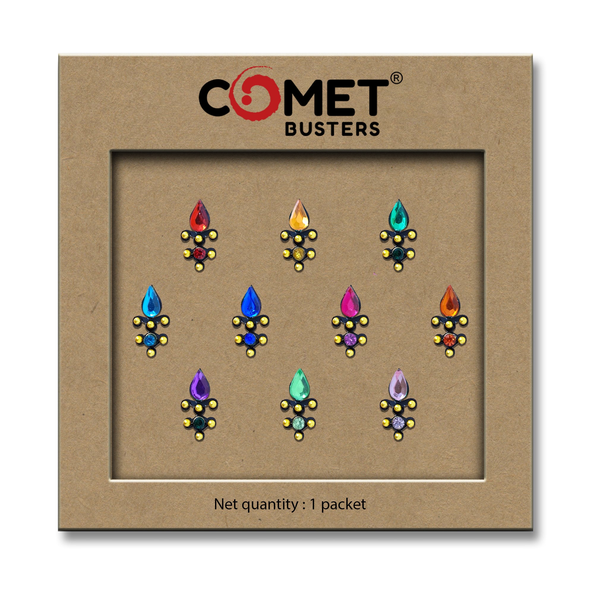Comet Busters® Multicolor Artistic Abstract Bindis – Crystal, Diamond, Shiny Beads – Handcrafted, Reusable & Skin-Friendly Bindis for Partywear Wear (10mm) – Forehead Bindi Stickers for Women & Girls – BIN973