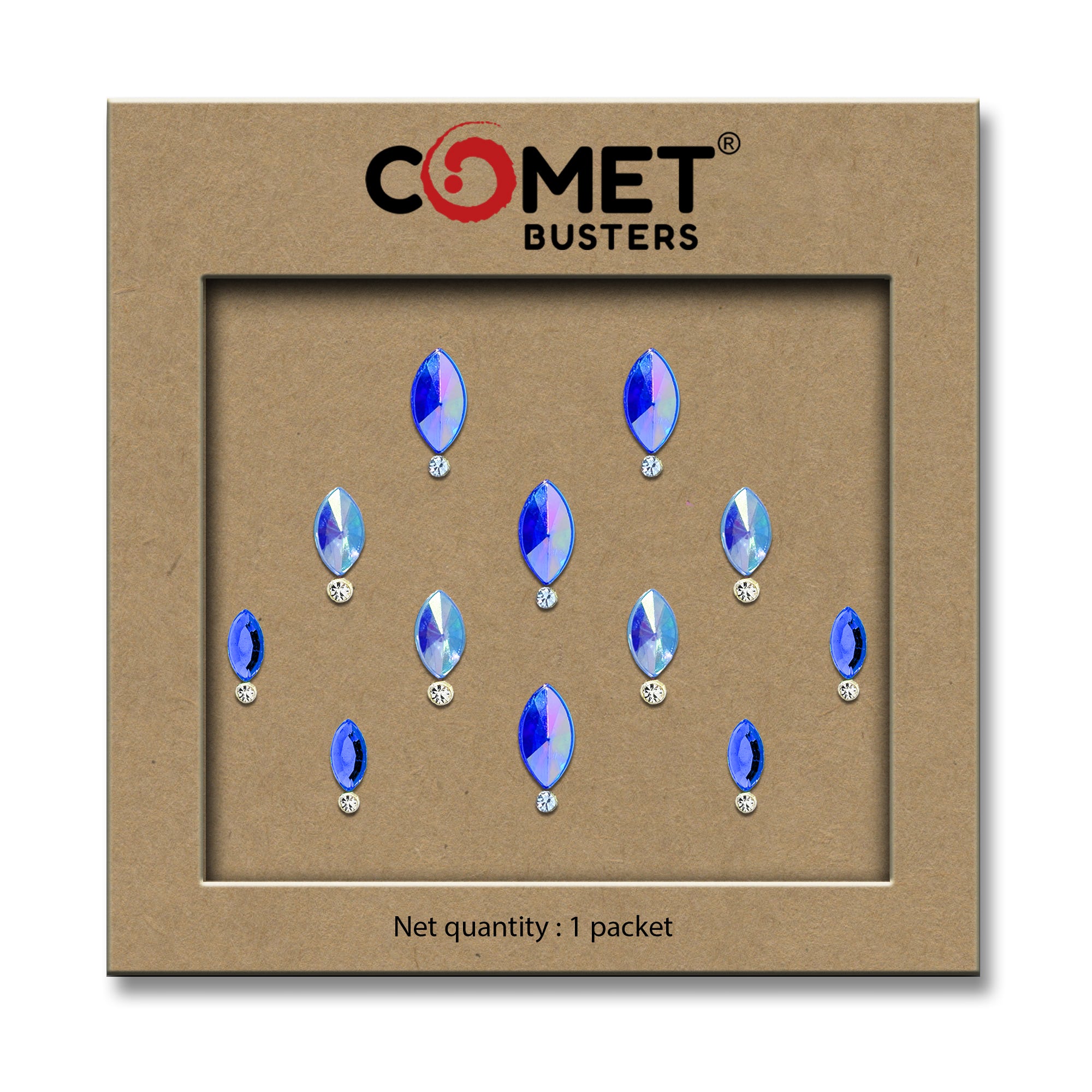 Comet Busters® Blue Crystal – Crystal, Diamond – Handcrafted, Reusable & Skin-Friendly Bindis for Partywear Wear (8, 13, 10mm) – Forehead Bindi Stickers for Women & Girls – BIN479