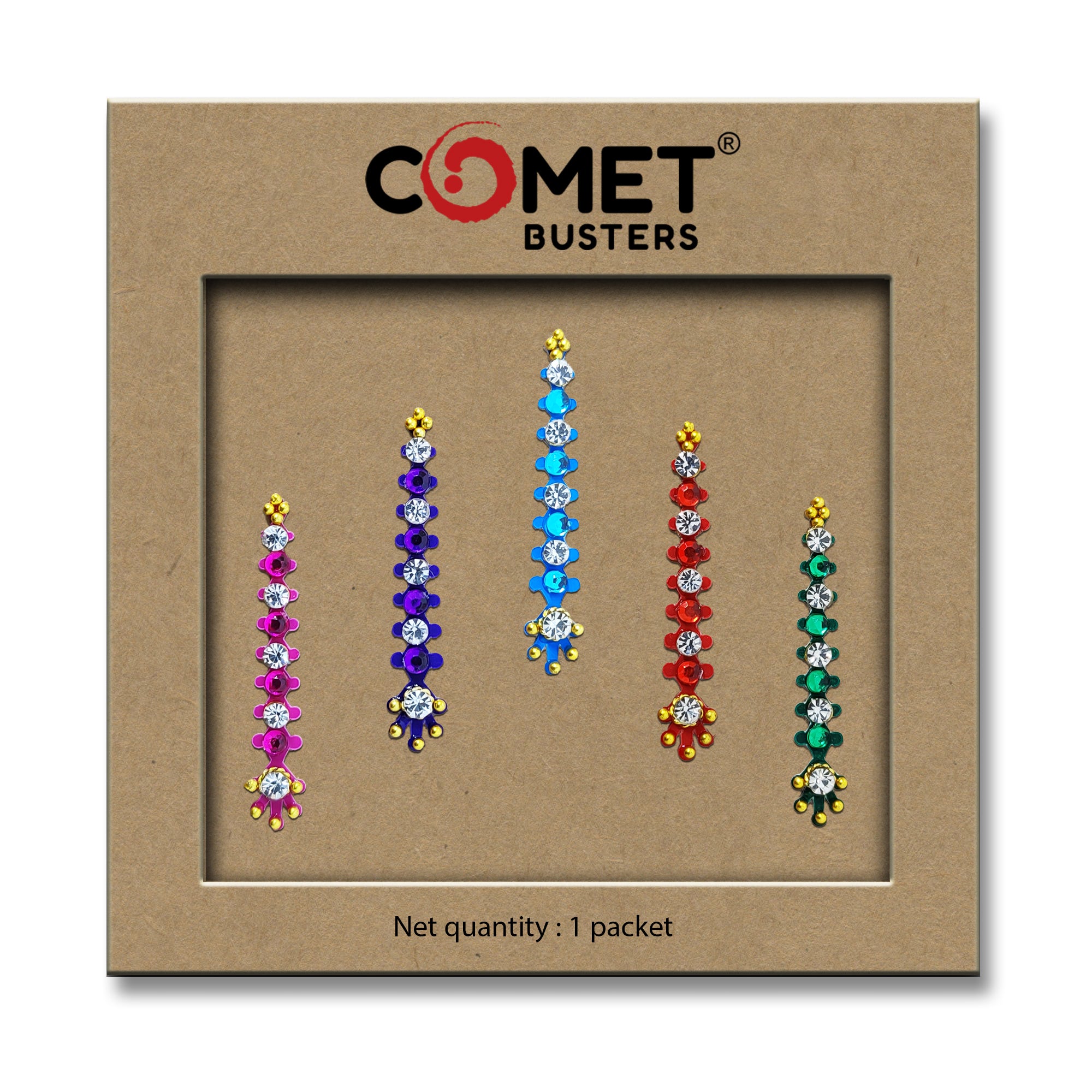 Comet Busters® Multicolor Artistic Abstract Bindis – Diamond, Shiny Beads – Handcrafted, Reusable & Skin-Friendly Bindis for Bridal Wear (30mm) – Forehead Bindi Stickers for Women & Girls – BIN027