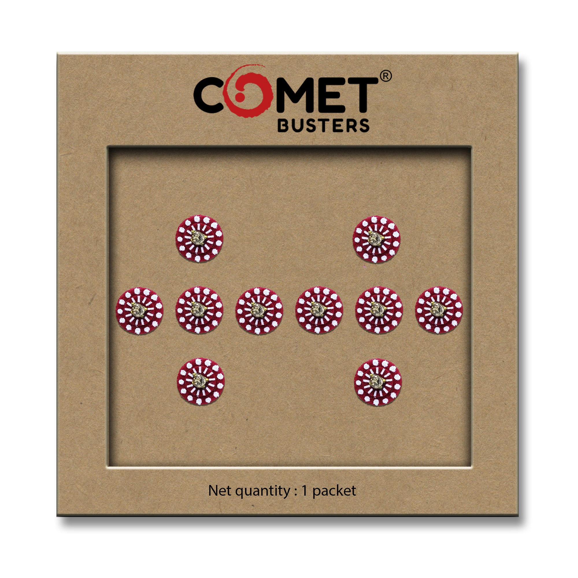 Comet Busters® Maroon Round – Diamond, Velvet – Handcrafted, Reusable & Skin-Friendly Bindis for Partywear Wear (8mm) – Forehead Bindi Stickers for Women & Girls – BIN522