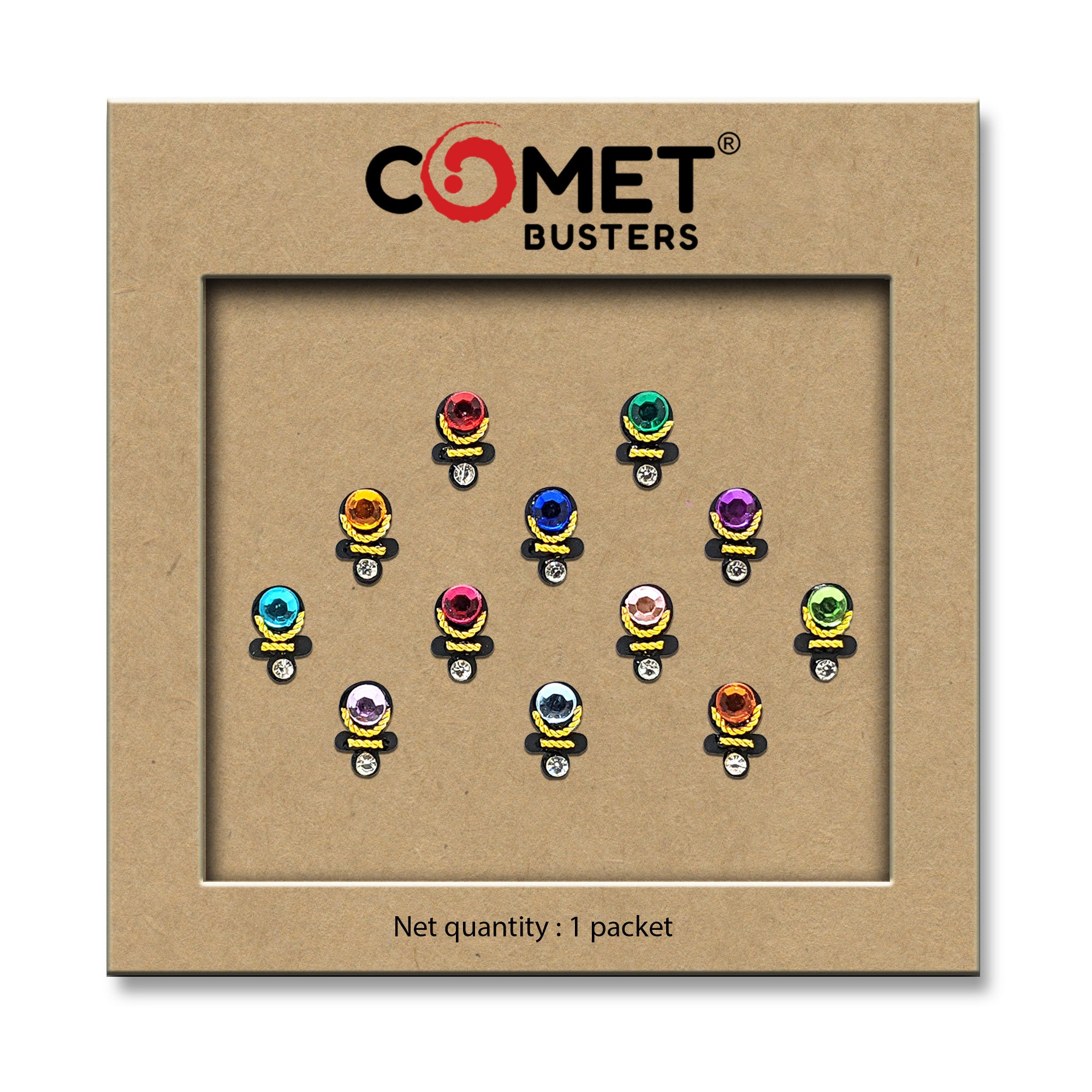 Comet Busters® Multicolor Artistic Abstract Bindis – PVC, Shiny Beads, Diamond – Handcrafted, Reusable & Skin-Friendly Bindis for Party Wear (7mm) – Forehead Bindi Stickers for Women & Girls – BIN1562