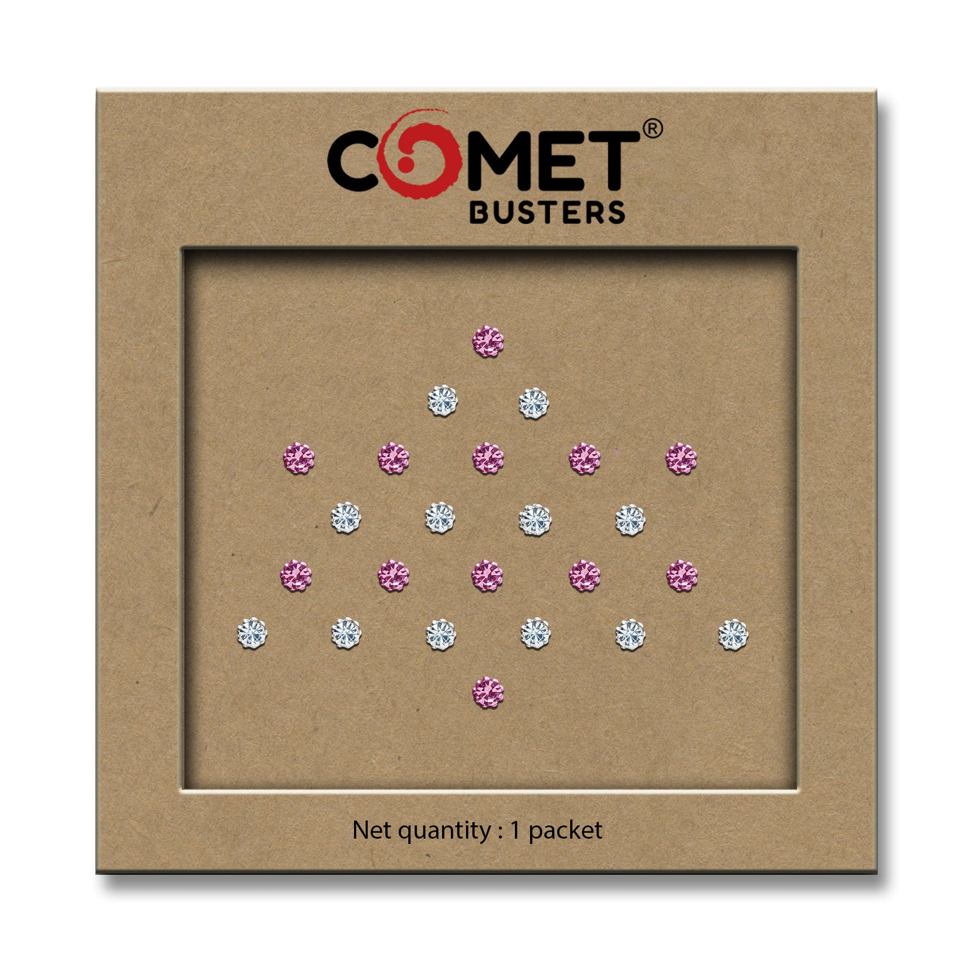 Comet Busters® Multicolor, Pink, Silver Diamond Dot – Diamond – Handcrafted, Reusable & Skin-Friendly Bindis for Casual Wear (3mm) – Forehead Bindi Stickers for Women & Girls – BIN078