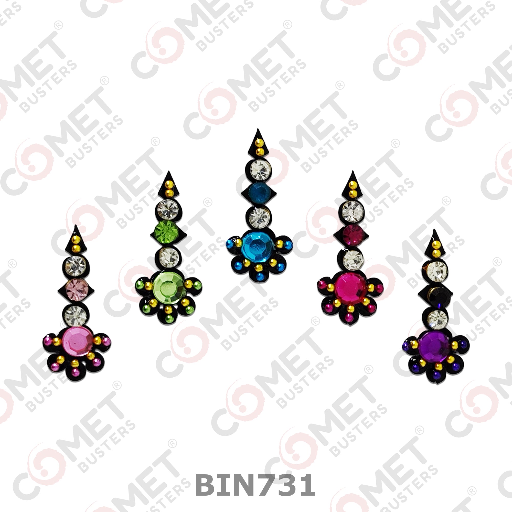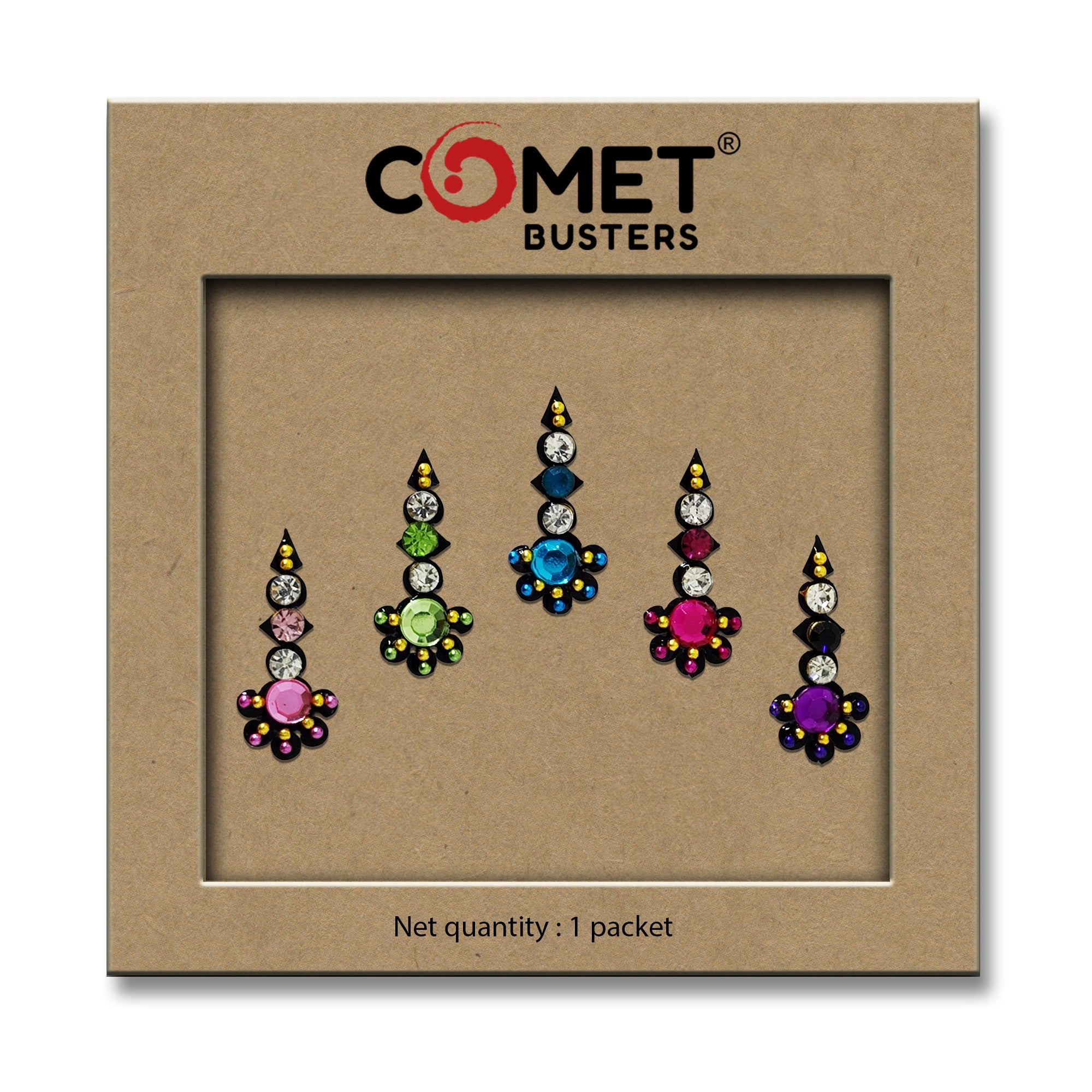 Comet Busters® Multicolor Artistic Abstract Bindis – Diamond, Shiny Beads, PVC – Handcrafted, Reusable & Skin-Friendly Bindis for Bridal Wear (15mm) – Forehead Bindi Stickers for Women & Girls – BIN731