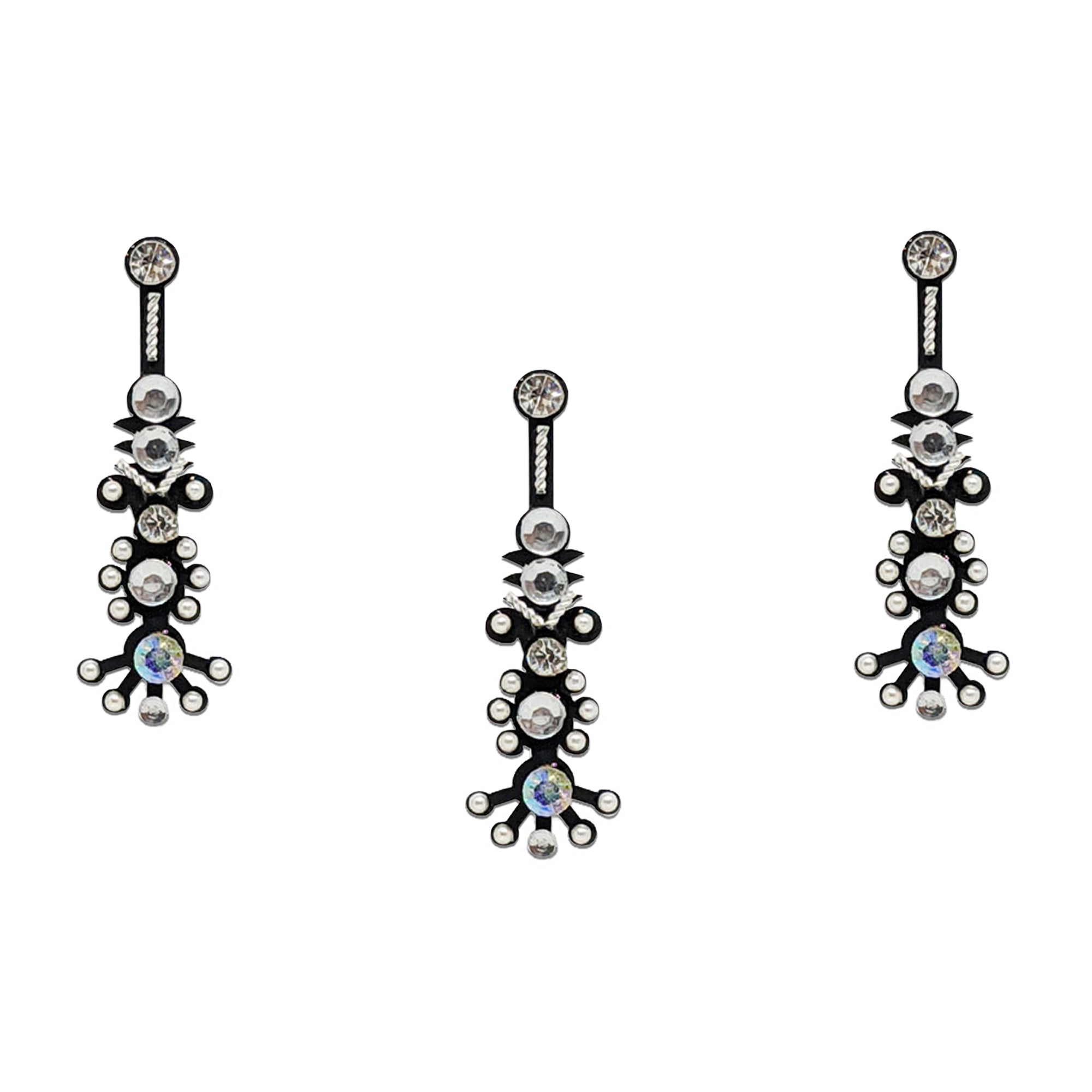 Comet Busters® Silver, Black, Multicolor Artistic Abstract Bindis – PVC, Diamond, Shiny Beads – Handcrafted, Reusable & Skin-Friendly Bindis for Party Wear (25mm) – Forehead Bindi Stickers for Women & Girls – BIN1713