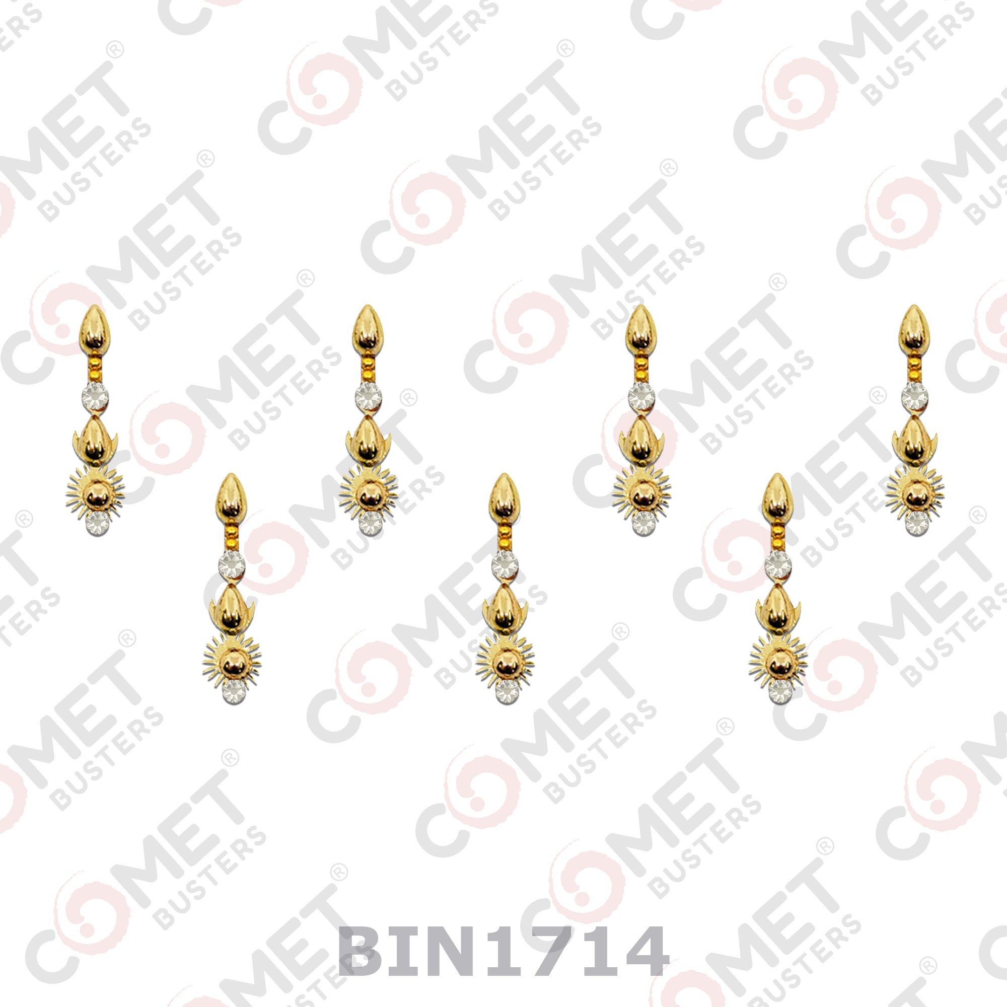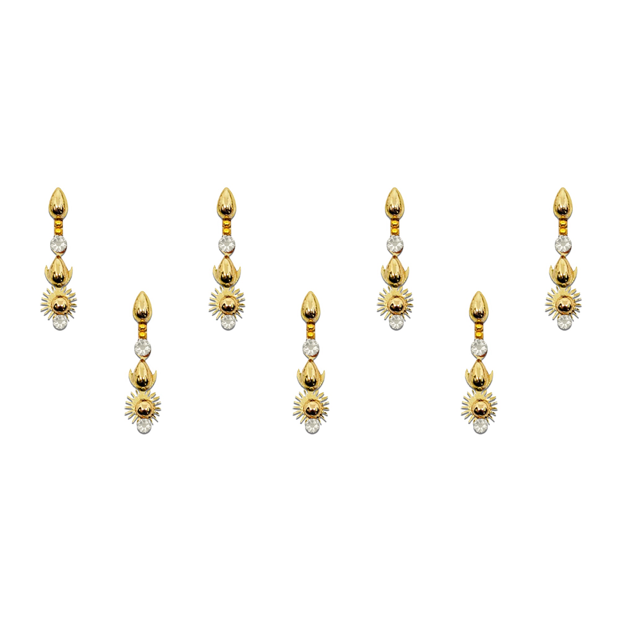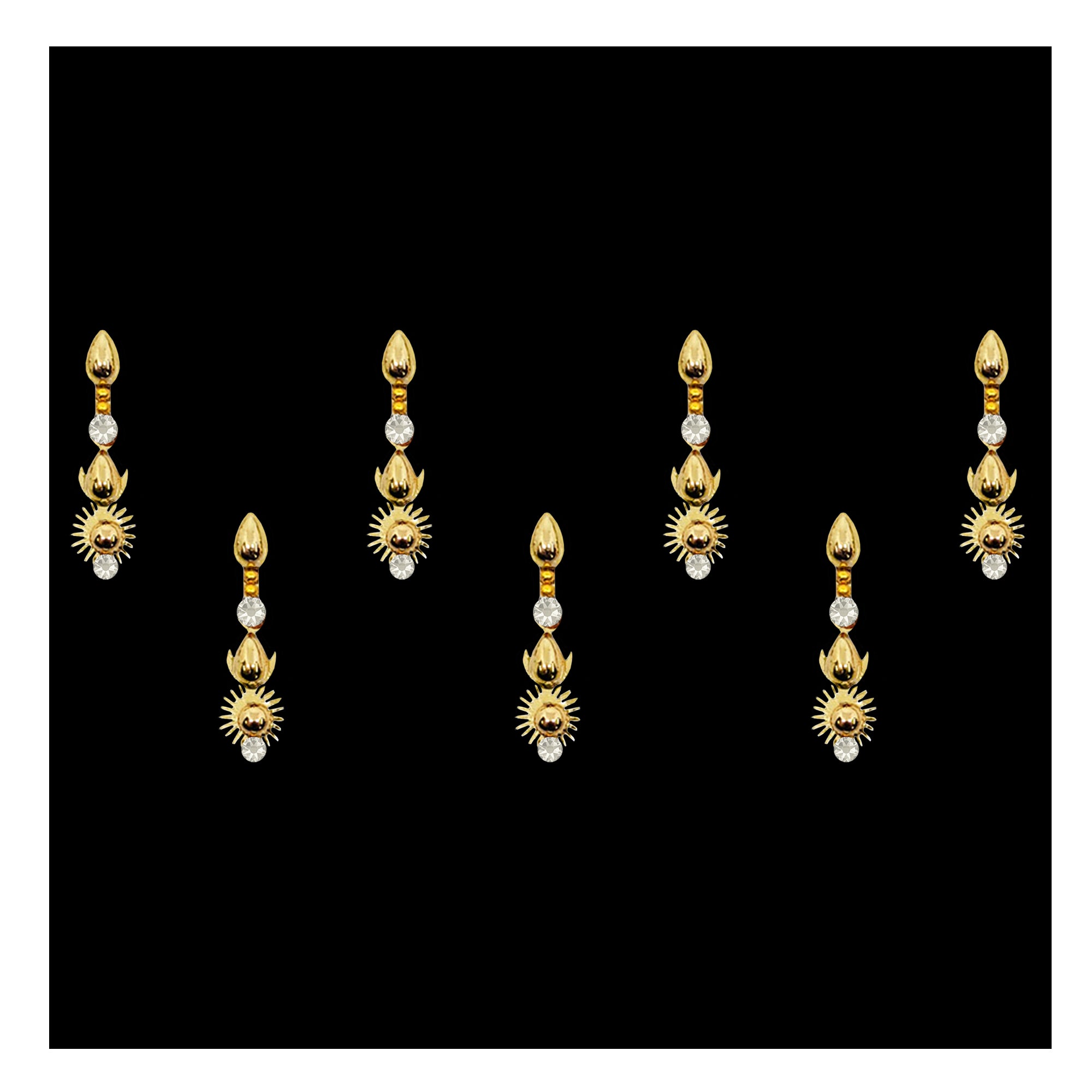 Comet Busters® Gold Artistic Abstract Bindis – Diamond, Shiny Beads – Handcrafted, Reusable & Skin-Friendly Bindis for Party Wear (18mm) – Forehead Bindi Stickers for Women & Girls – BIN1714