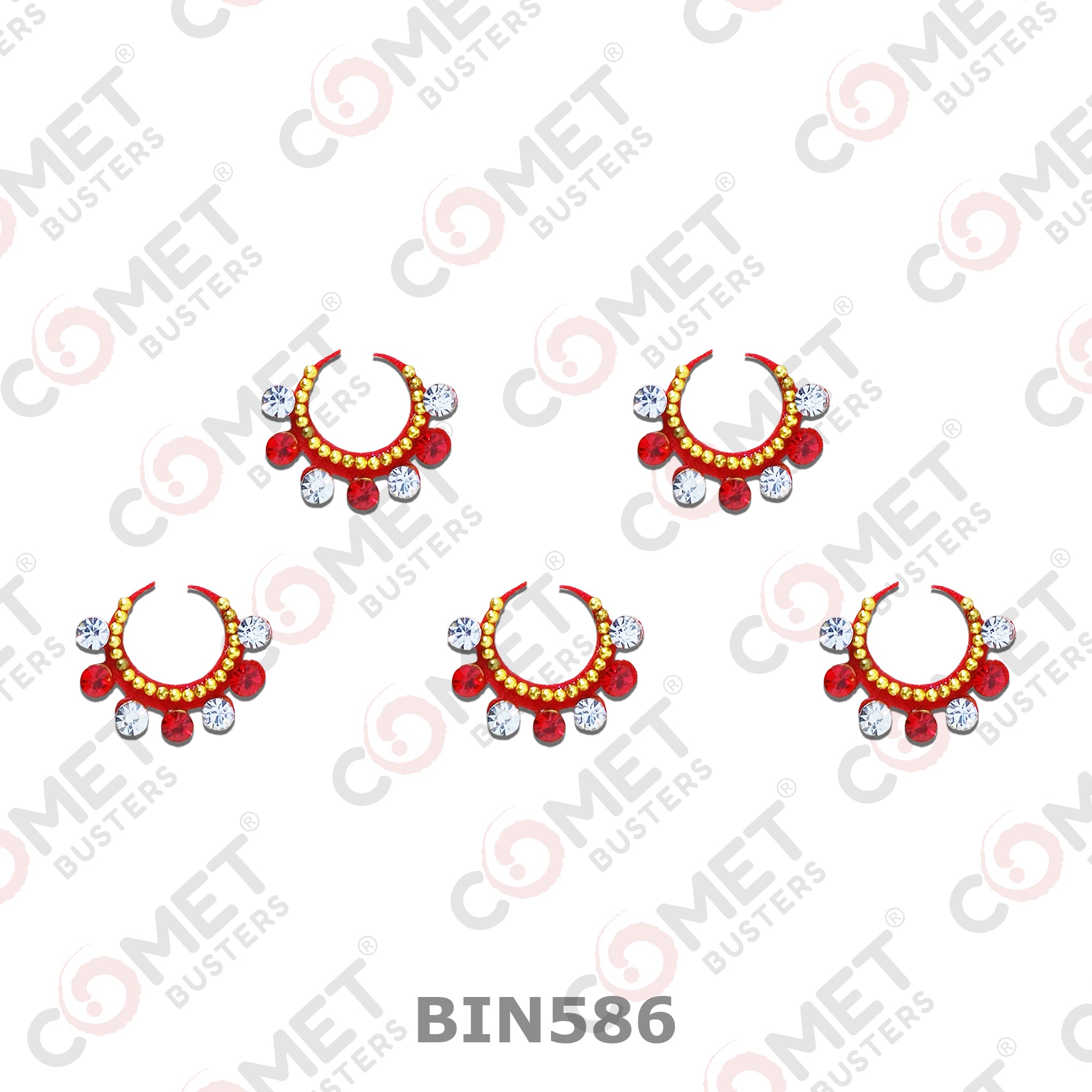 Comet Busters® Red Moon – Diamond, Shiny Beads – Handcrafted, Reusable & Skin-Friendly Bindis for Bridal Wear (10mm) – Forehead Bindi Stickers for Women & Girls – BIN586