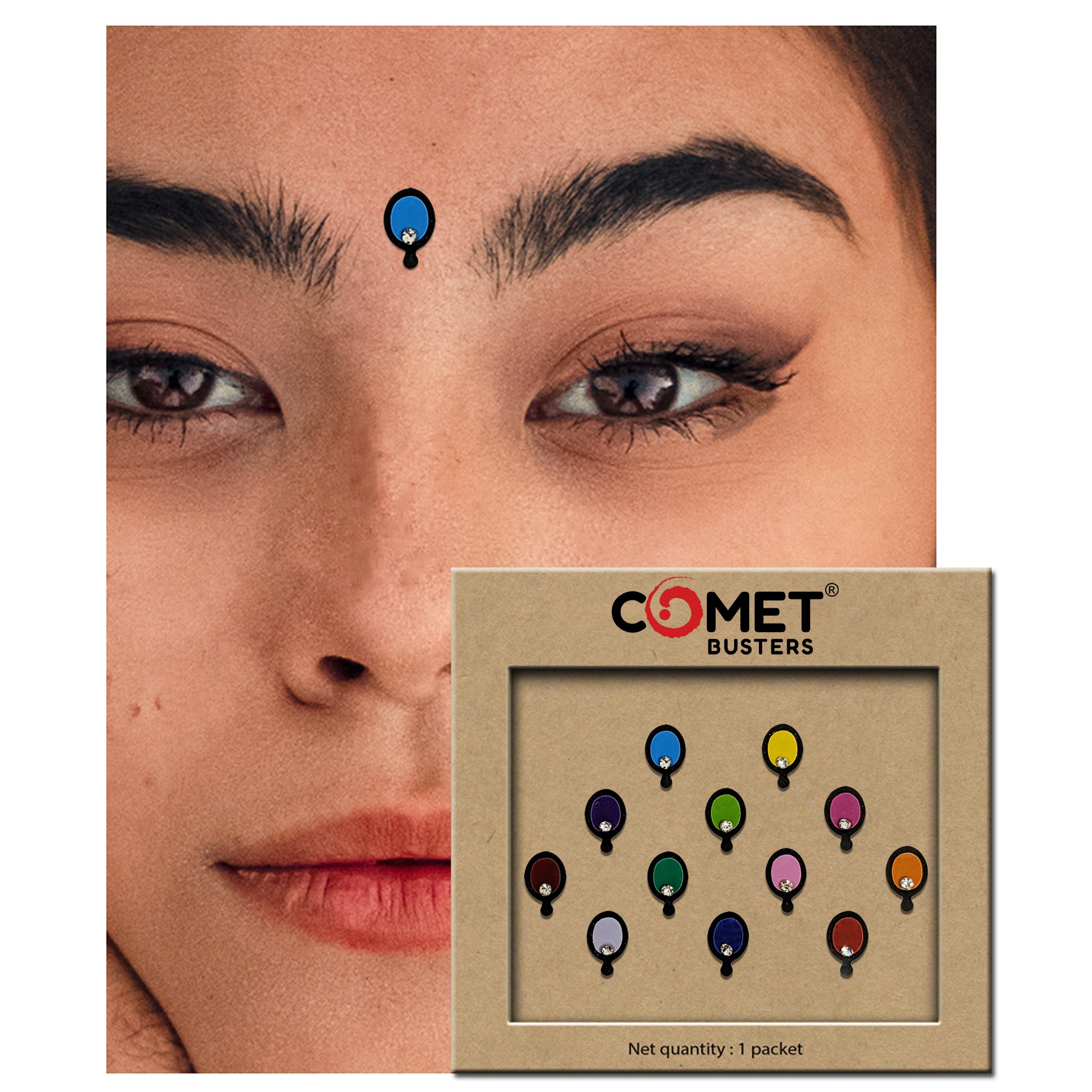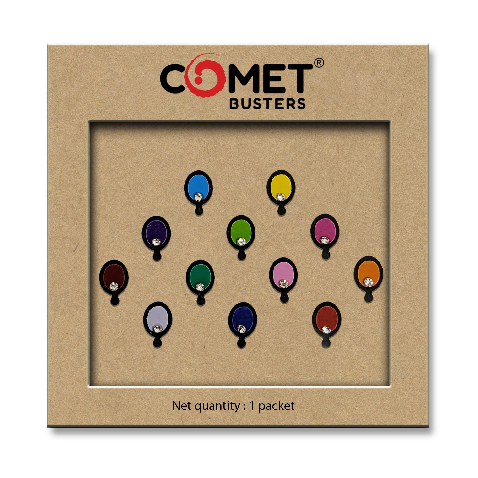 Comet Busters® Multicolor, Black Oval – Diamond, PVC – Handcrafted, Reusable & Skin-Friendly Bindis for Casual Wear (8mm) – Forehead Bindi Stickers for Women & Girls – BIN1435