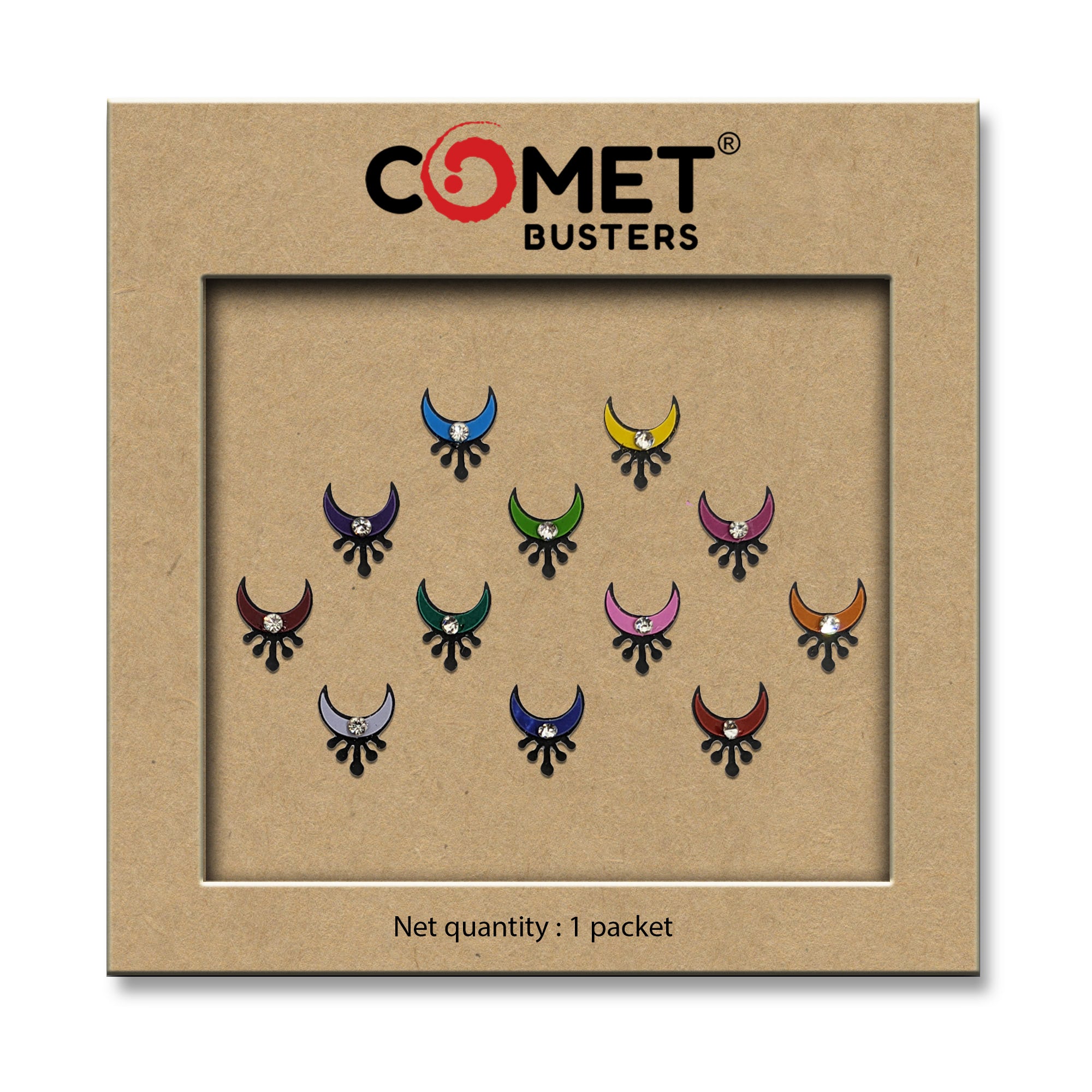 Comet Busters® Multicolor Artistic Abstract Bindis – PVC, Velvet, Diamond, Shiny Beads – Handcrafted, Reusable & Skin-Friendly Bindis for Casual Wear (8mm) – Forehead Bindi Stickers for Women & Girls – BIN1528