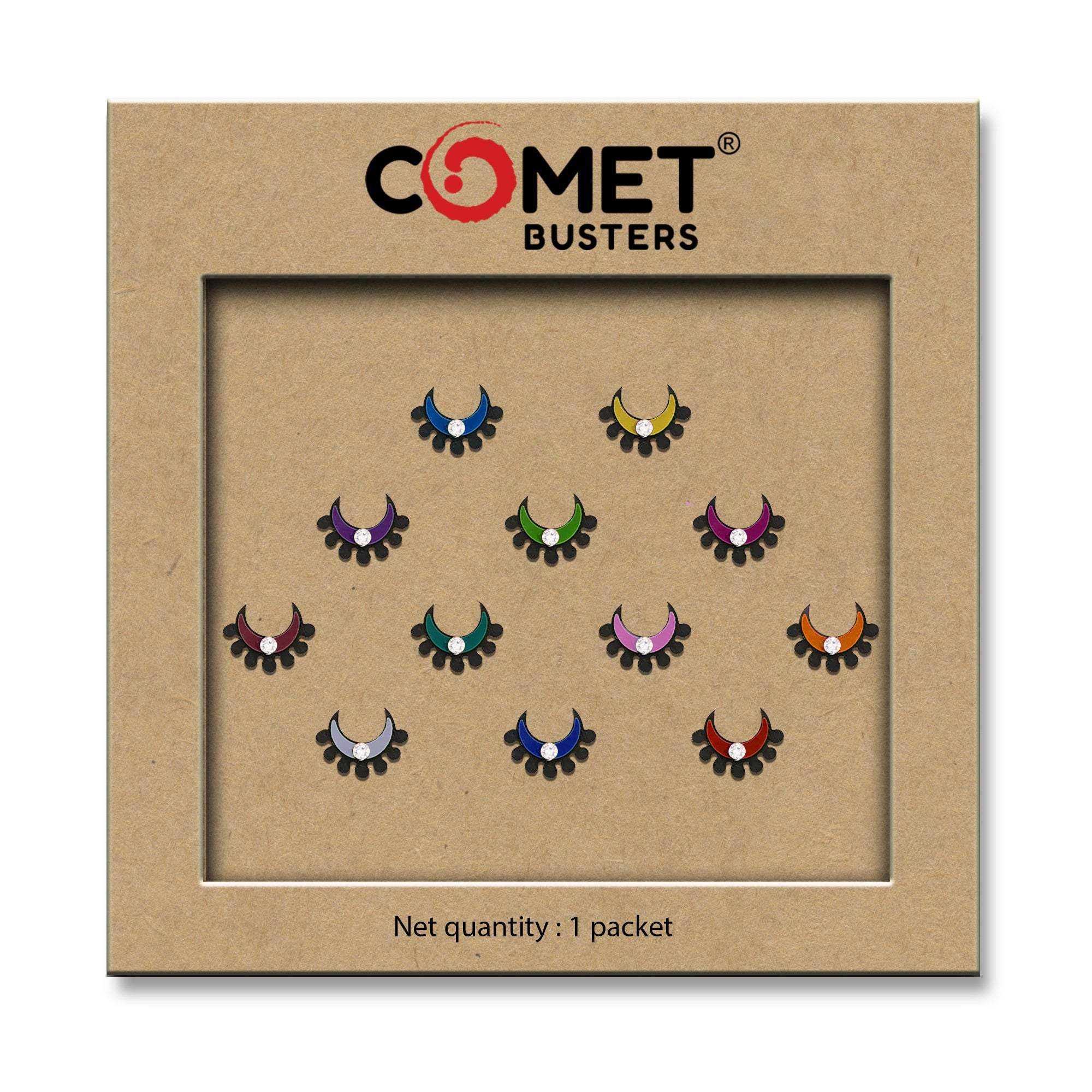 Comet Busters® Multicolor, Black Moon – Diamond, PVC – Handcrafted, Reusable & Skin-Friendly Bindis for Casual Wear (10mm) – Forehead Bindi Stickers for Women & Girls – BIN1433