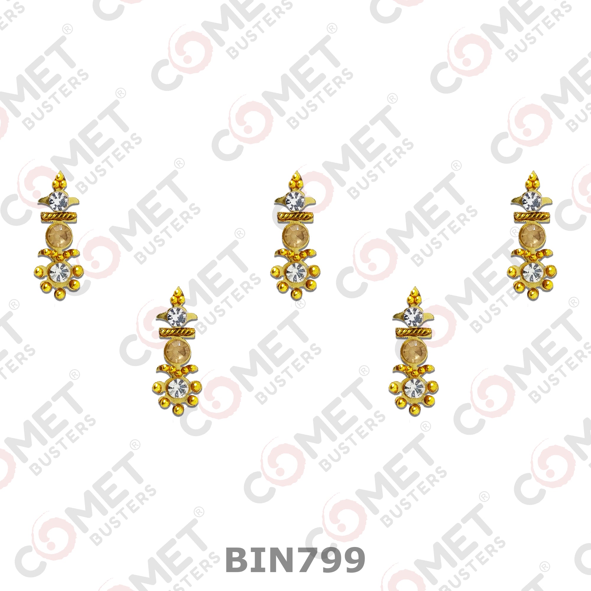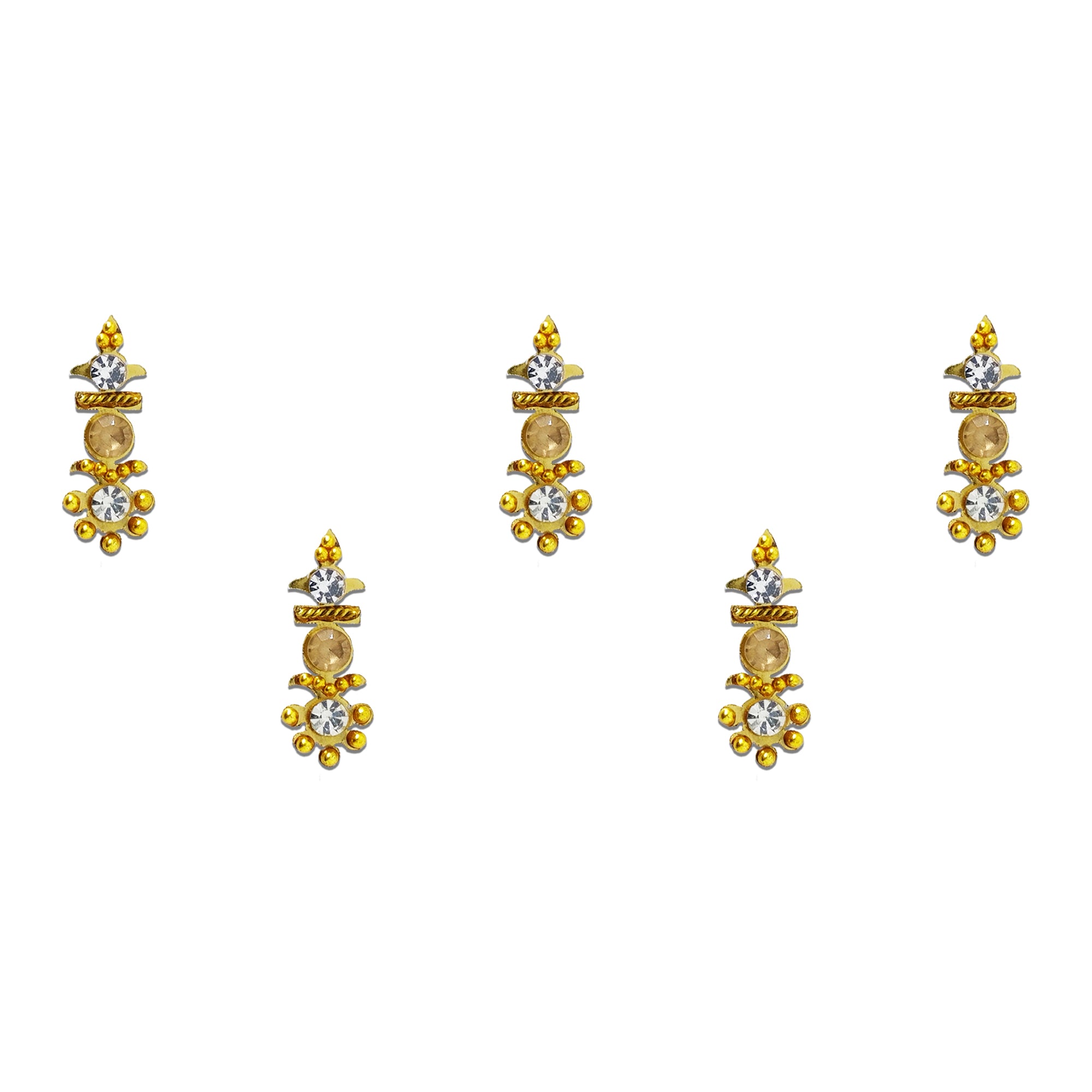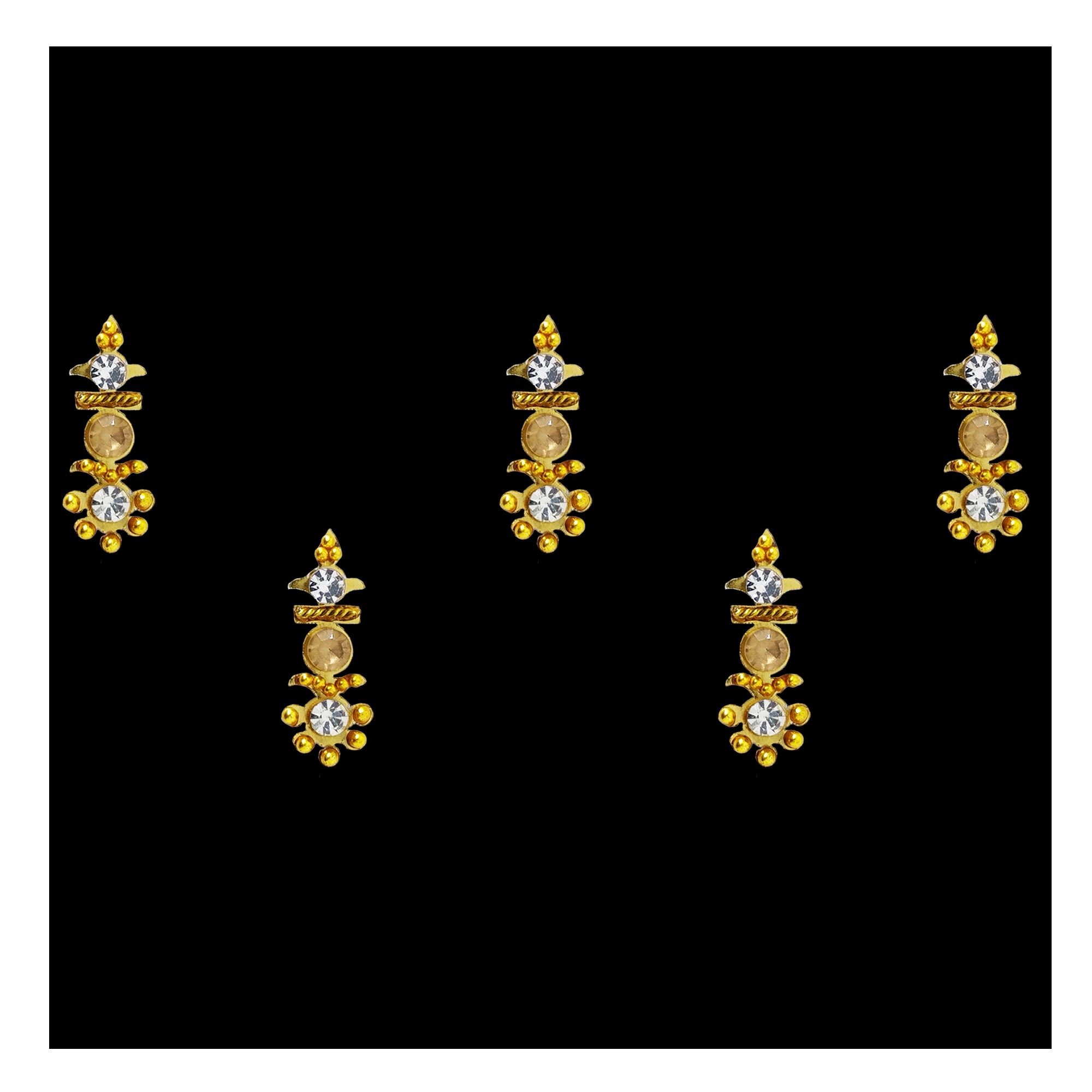 Comet Busters® Gold Artistic Abstract Bindis – Diamond, Shiny Beads – Handcrafted, Reusable & Skin-Friendly Bindis for Bridal Wear (15mm) – Forehead Bindi Stickers for Women & Girls – BIN799