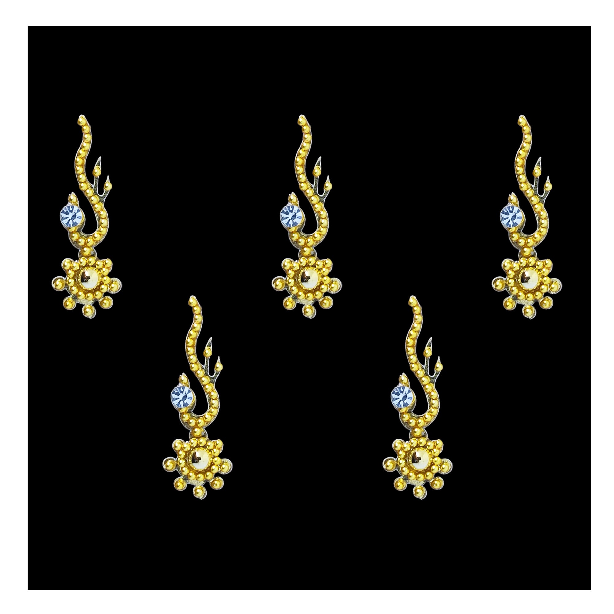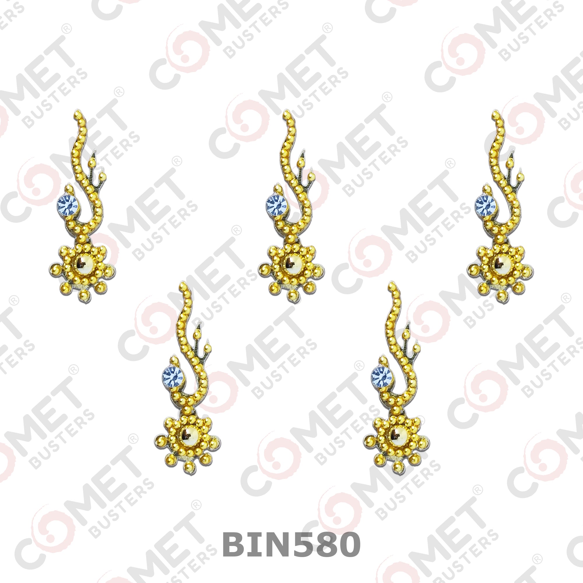 Comet Busters® Gold Artistic Abstract Bindis – Diamond, Shiny Beads – Handcrafted, Reusable & Skin-Friendly Bindis for Bridal Wear (20mm) – Forehead Bindi Stickers for Women & Girls – BIN580