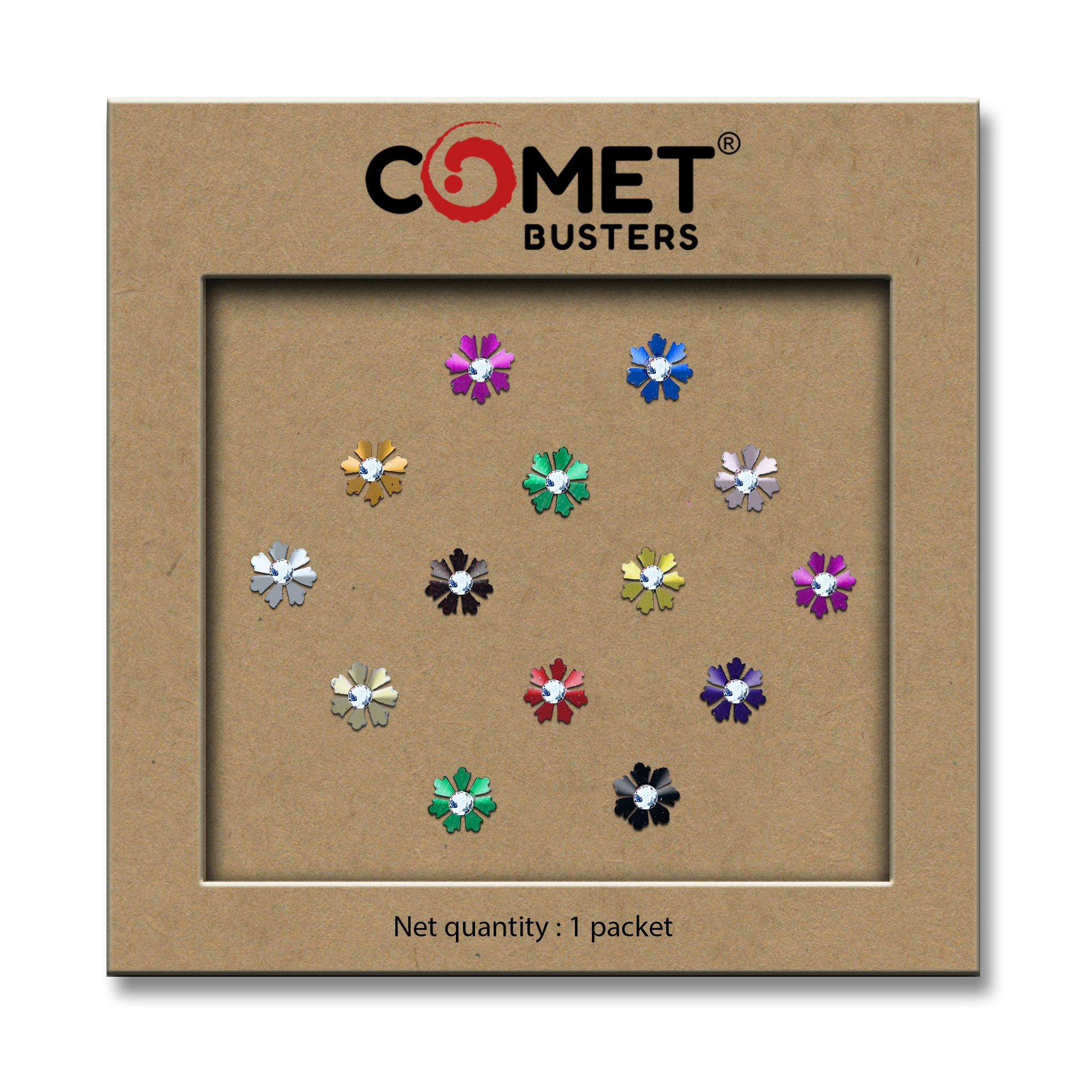 Comet Busters® Multicolor Floral – PVC, Diamond – Handcrafted, Reusable & Skin-Friendly Bindis for Casual Wear (7mm) – Forehead Bindi Stickers for Women & Girls – BIN2388