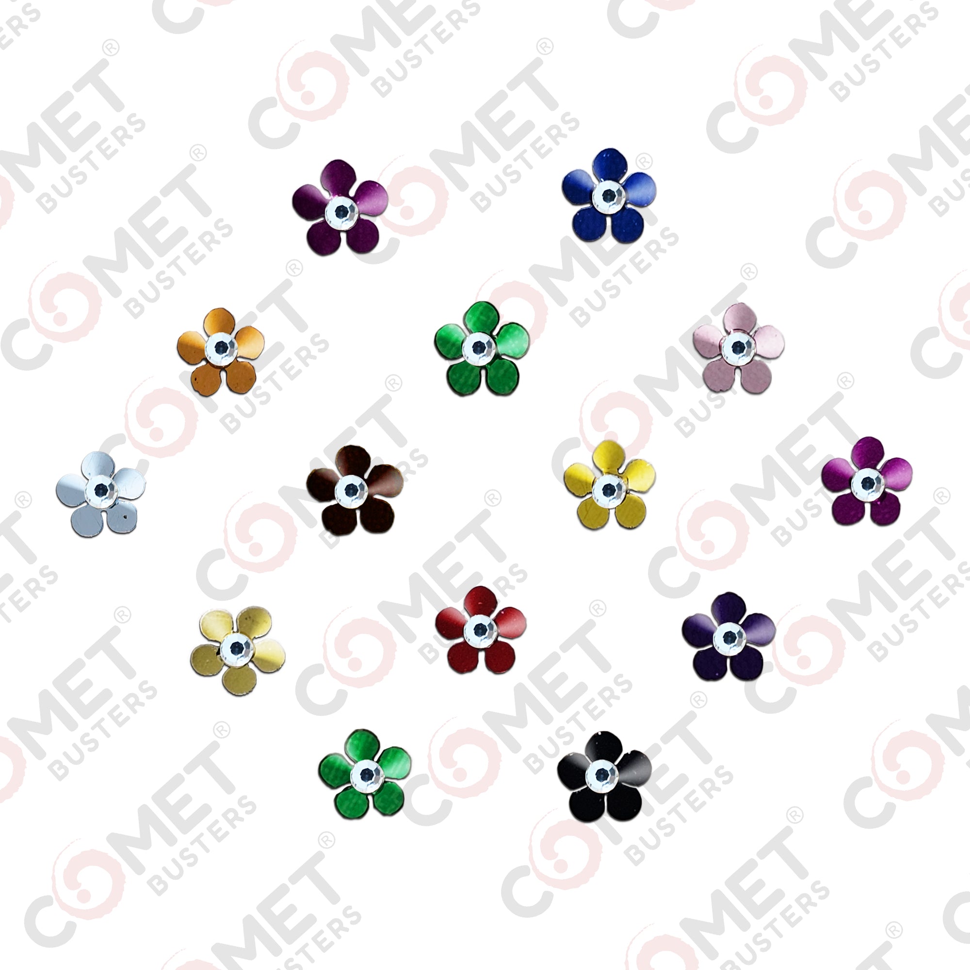 Comet Busters® Multicolor Floral – PVC, Diamond – Handcrafted, Reusable & Skin-Friendly Bindis for Casual Wear (7mm) – Forehead Bindi Stickers for Women & Girls – BIN2389